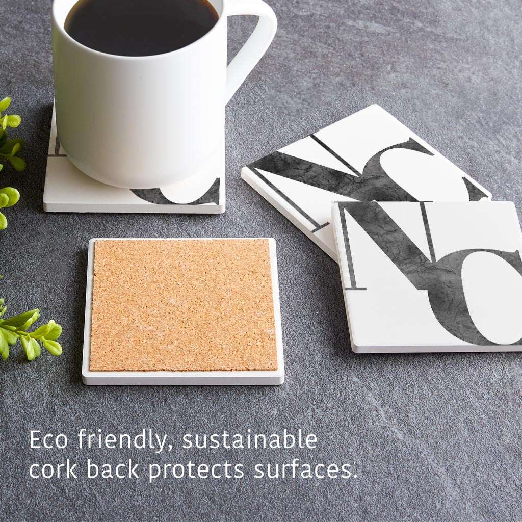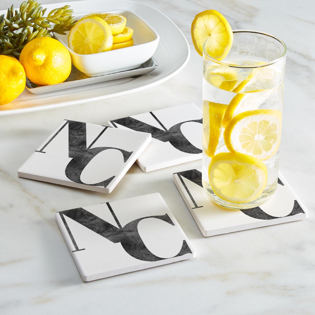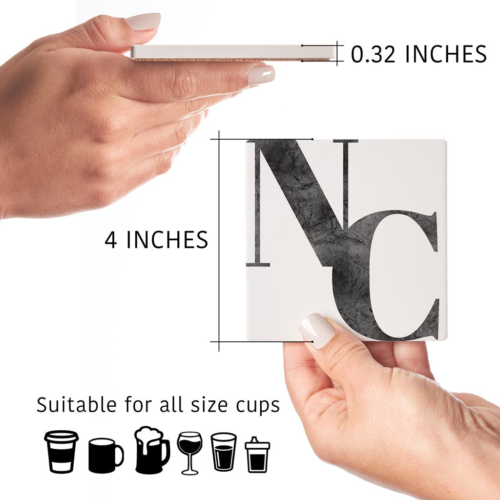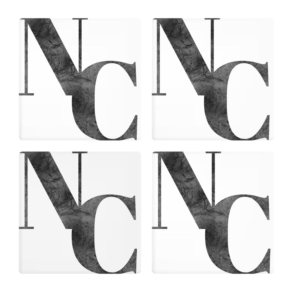 Minimalistic B&W North Carolina White Initials | Absorbent Coasters | Set of 4 | Min 2