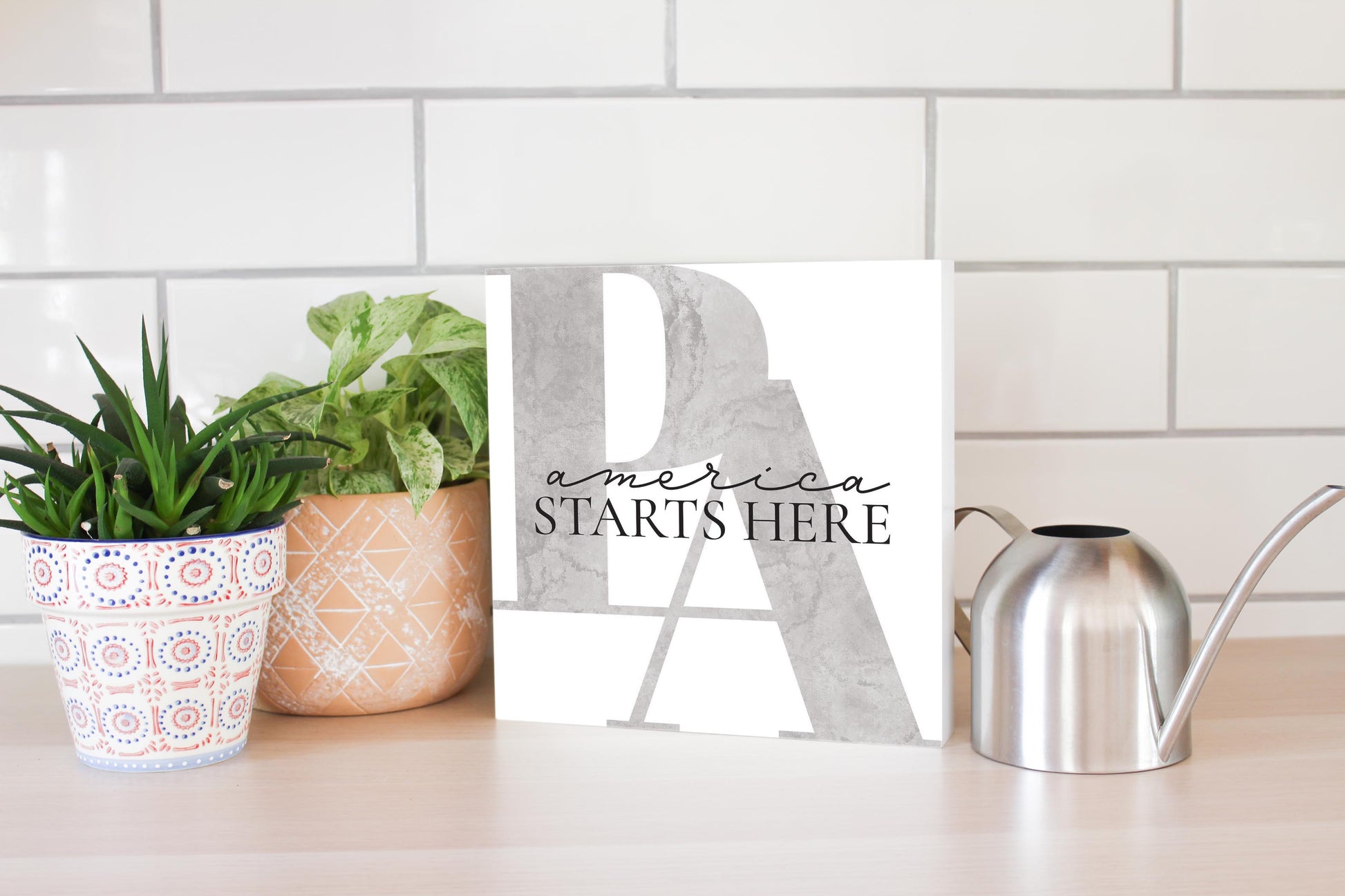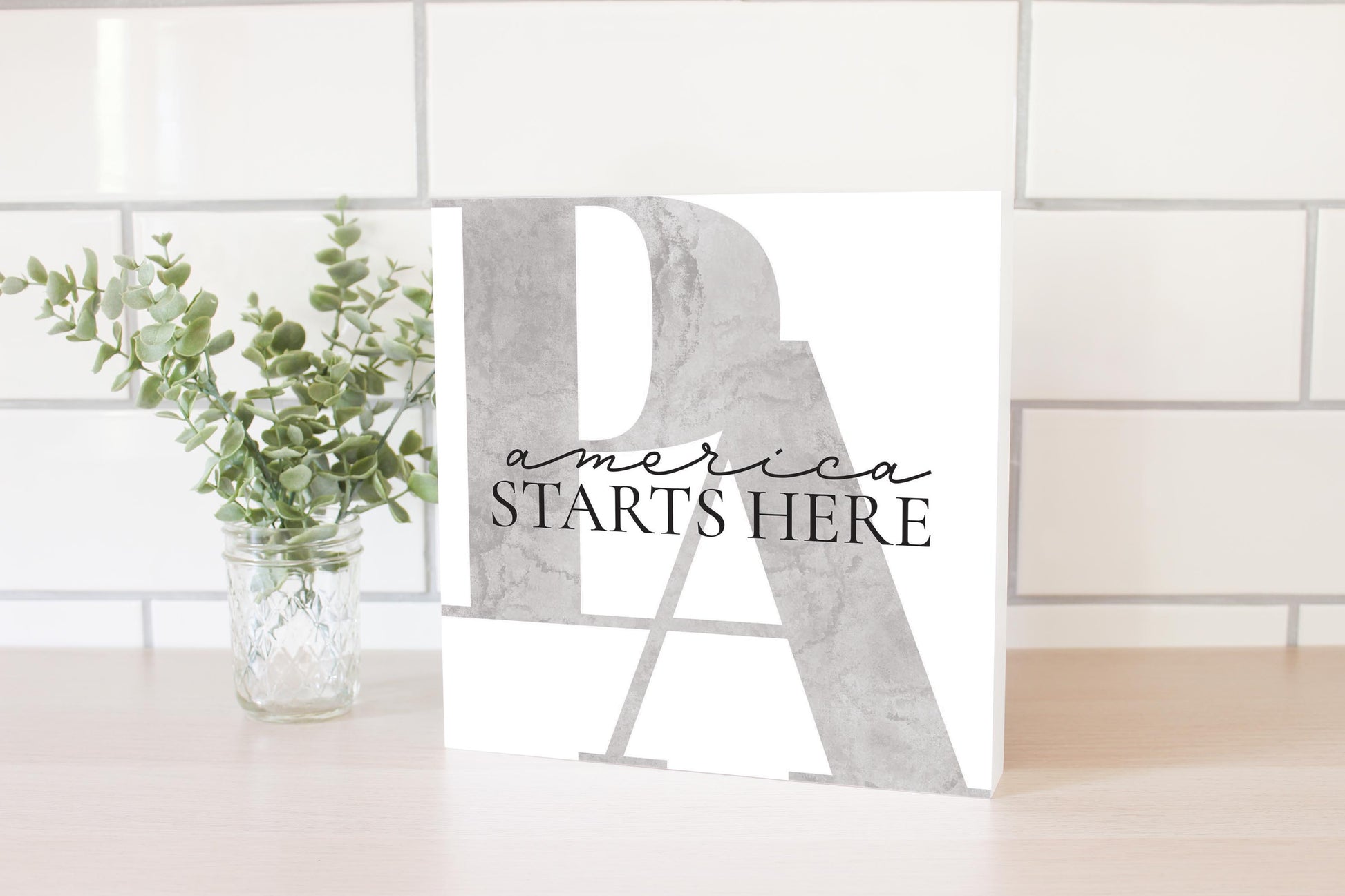 Minimalistic B&W Pennsylvania America Quip | Wood Block | Eaches | Min 2