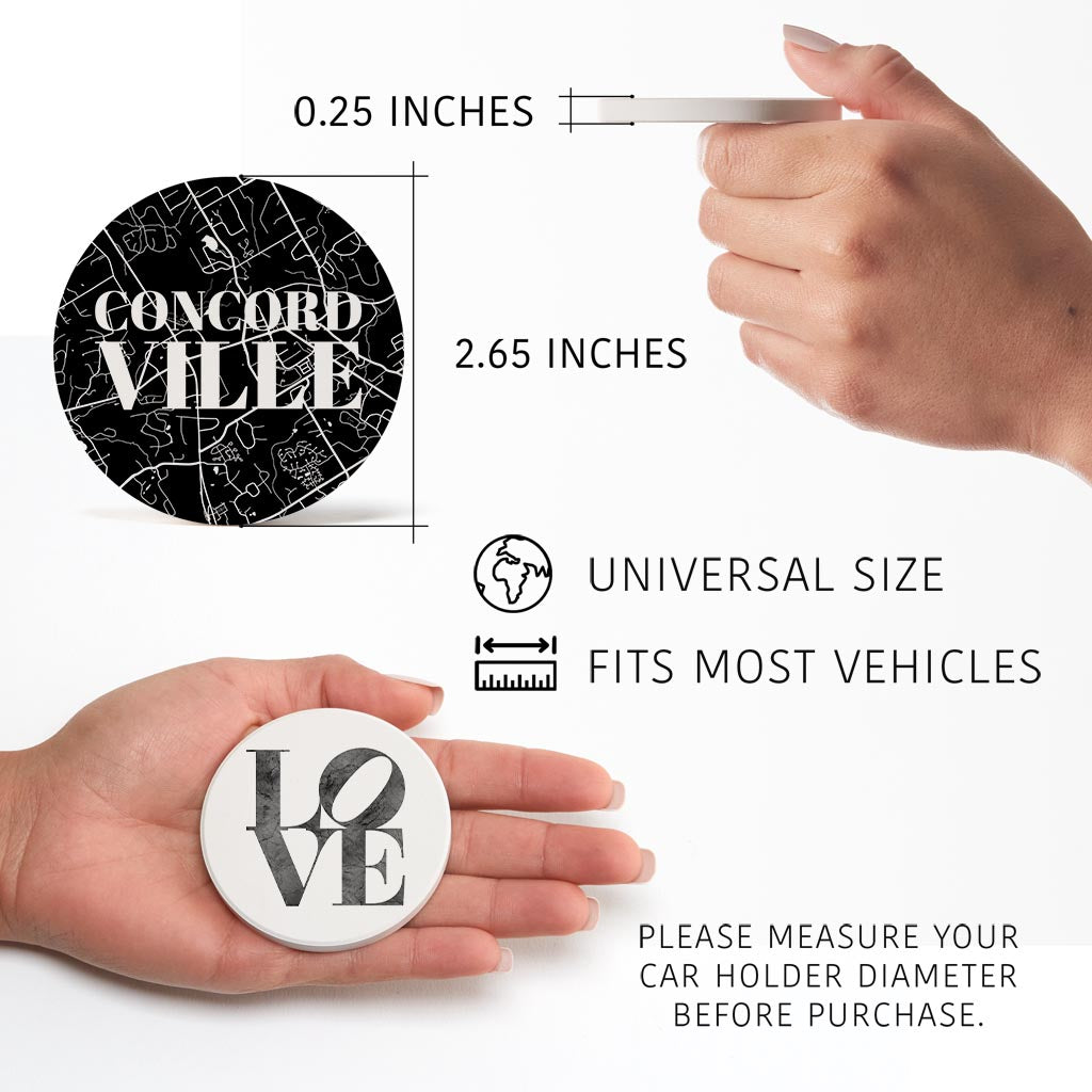Minimalistic B&W Pennsylvania Concord Map Love| Absorbent Car Coasters | Set of 2 | Min 4