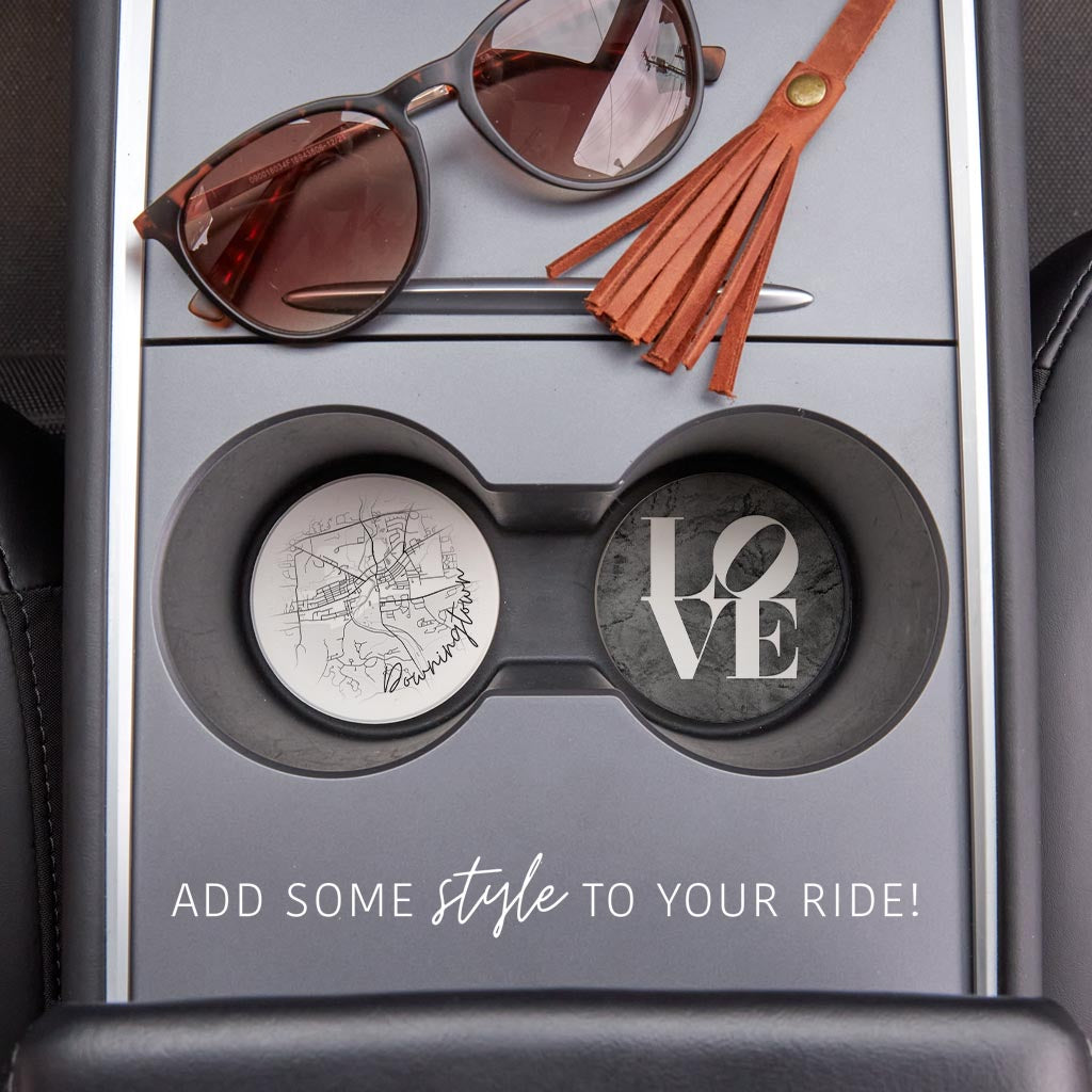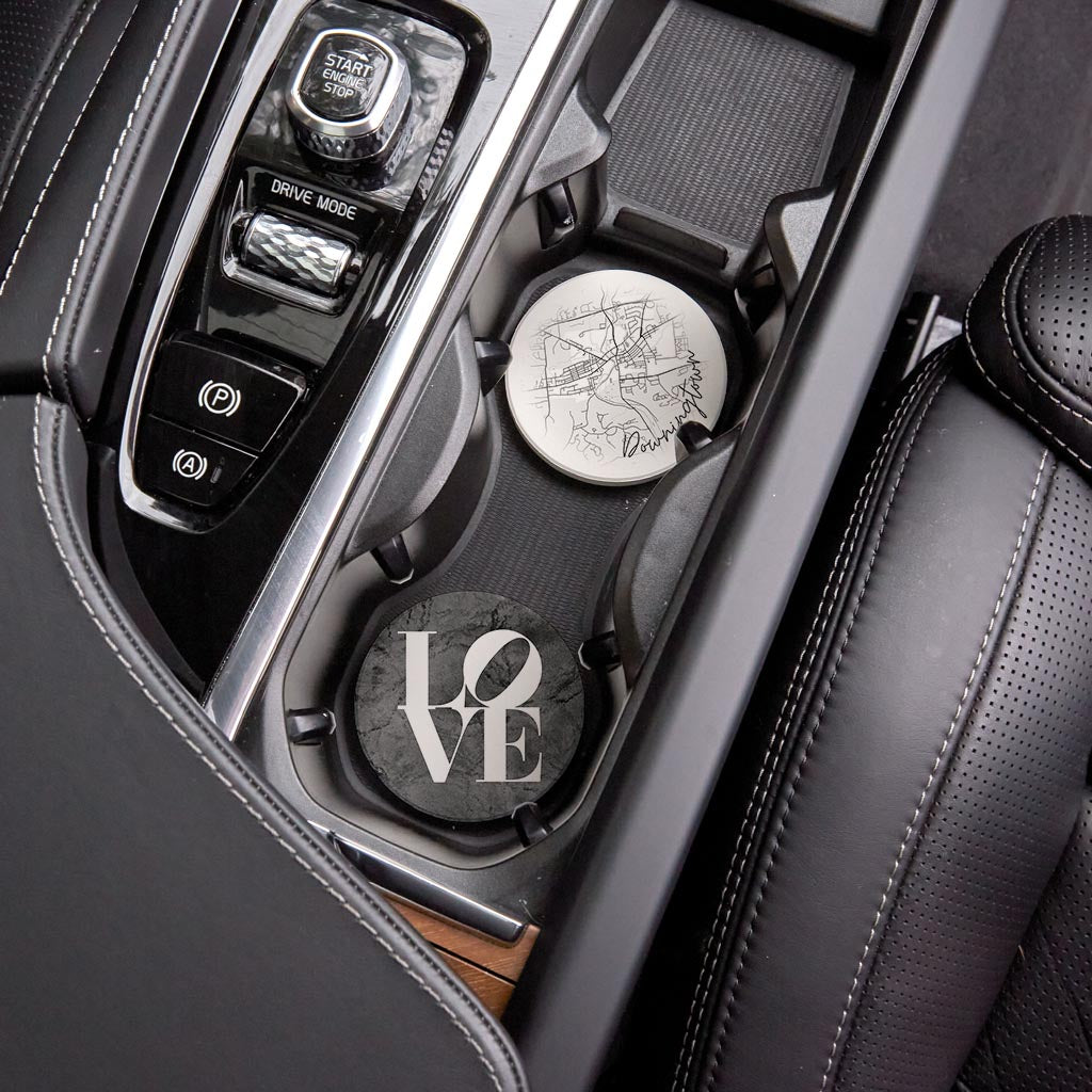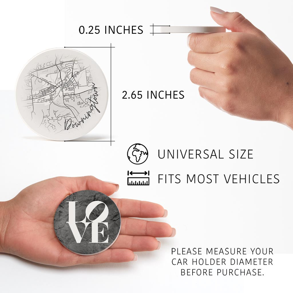 Minimalistic B&W Pennsylvania Downingtown Circle Love| Absorbent Car Coasters | Set of 2 | Min 4