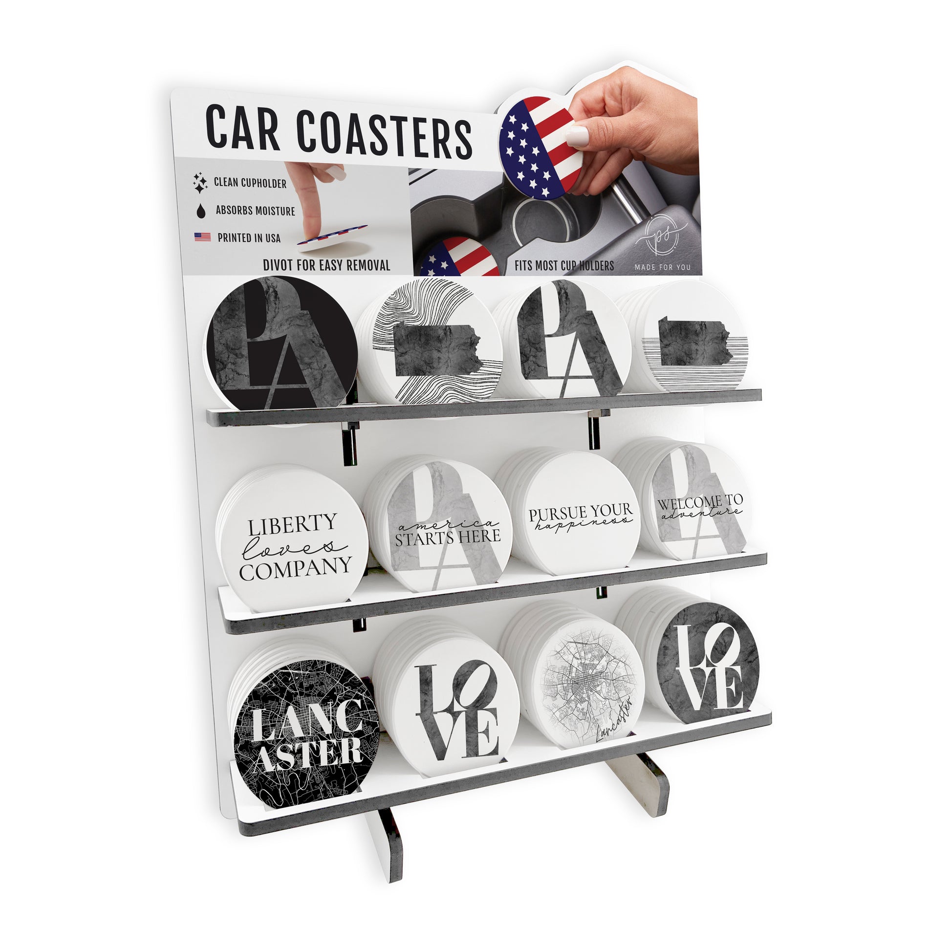 Minimalistic B&W Pennsylvania Lancaster Car Ceramic Coaster Loaded Display POP Min of 1