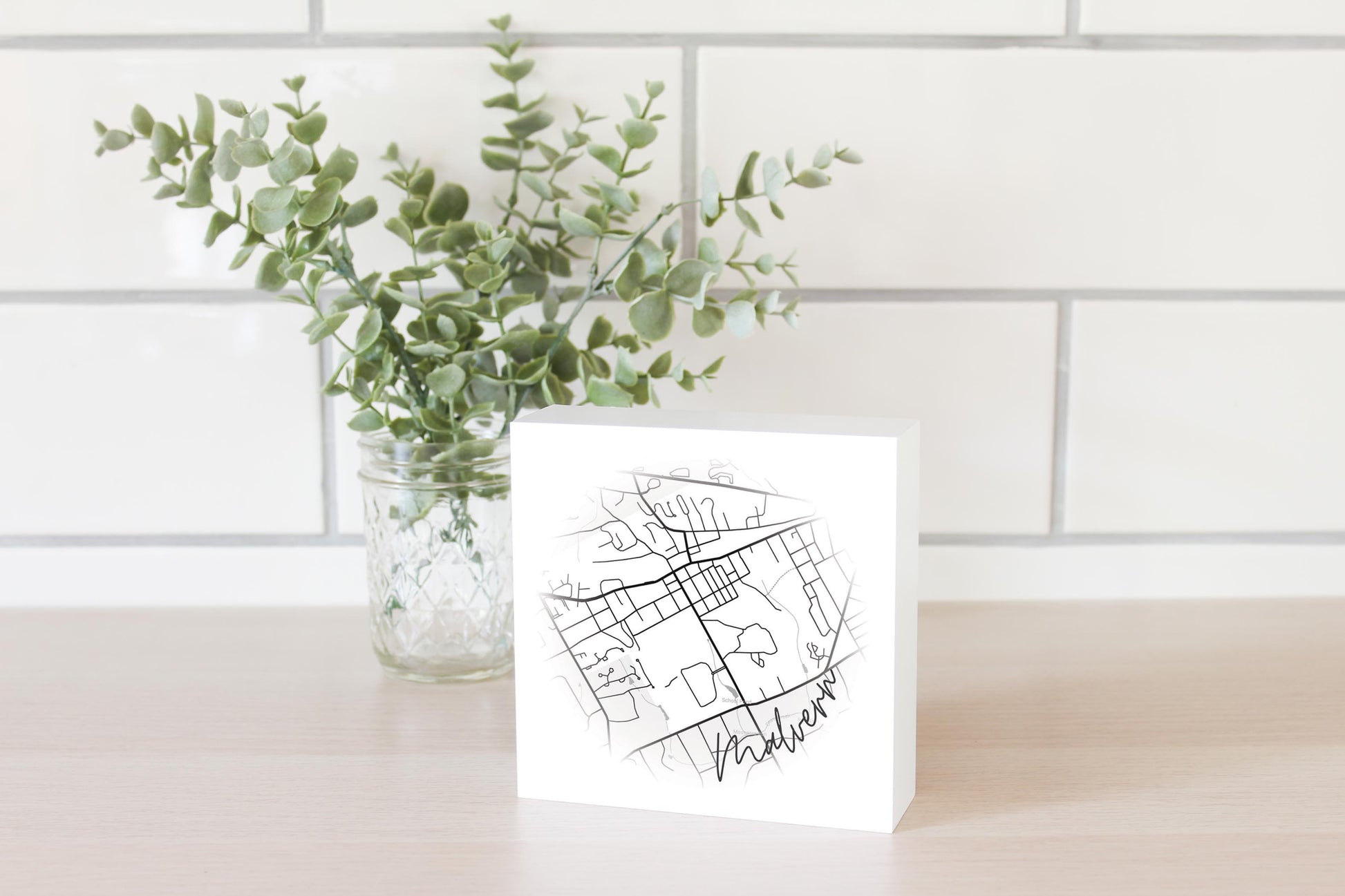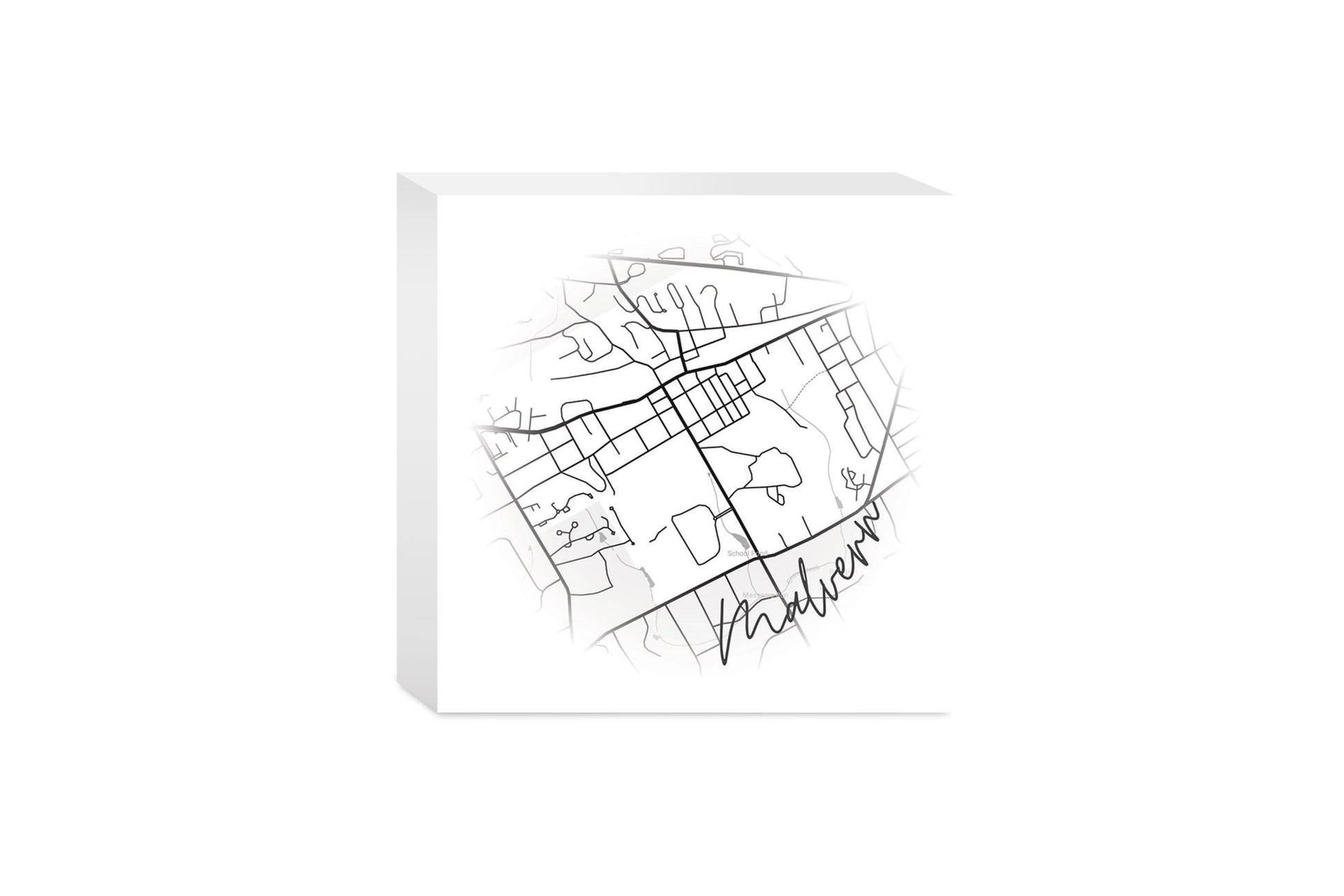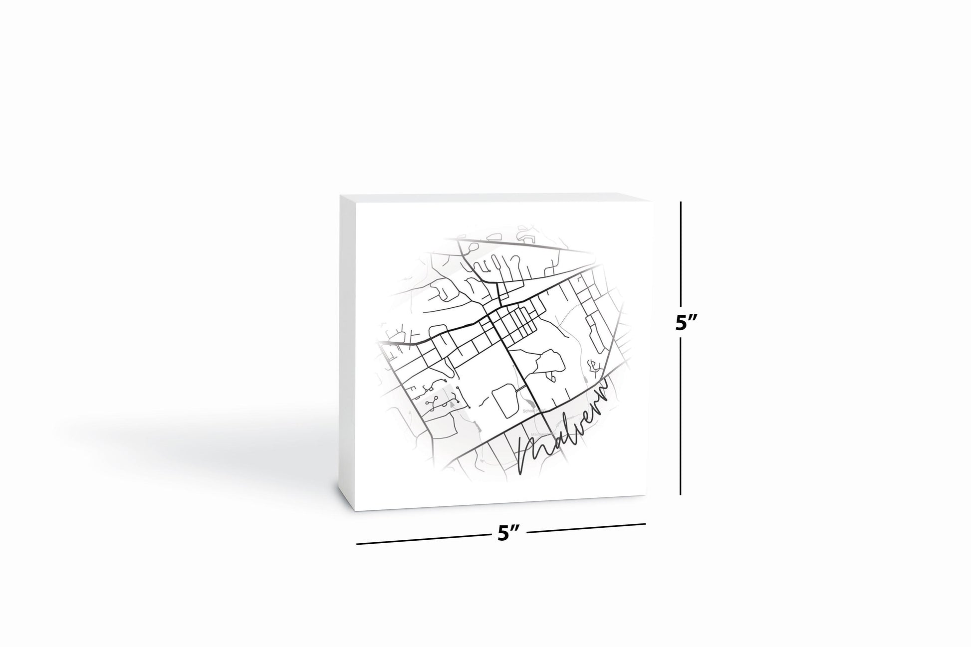 Minimalistic B&W Pennsylvania Malvern Circle Map | Wood Block | Eaches | Min 4