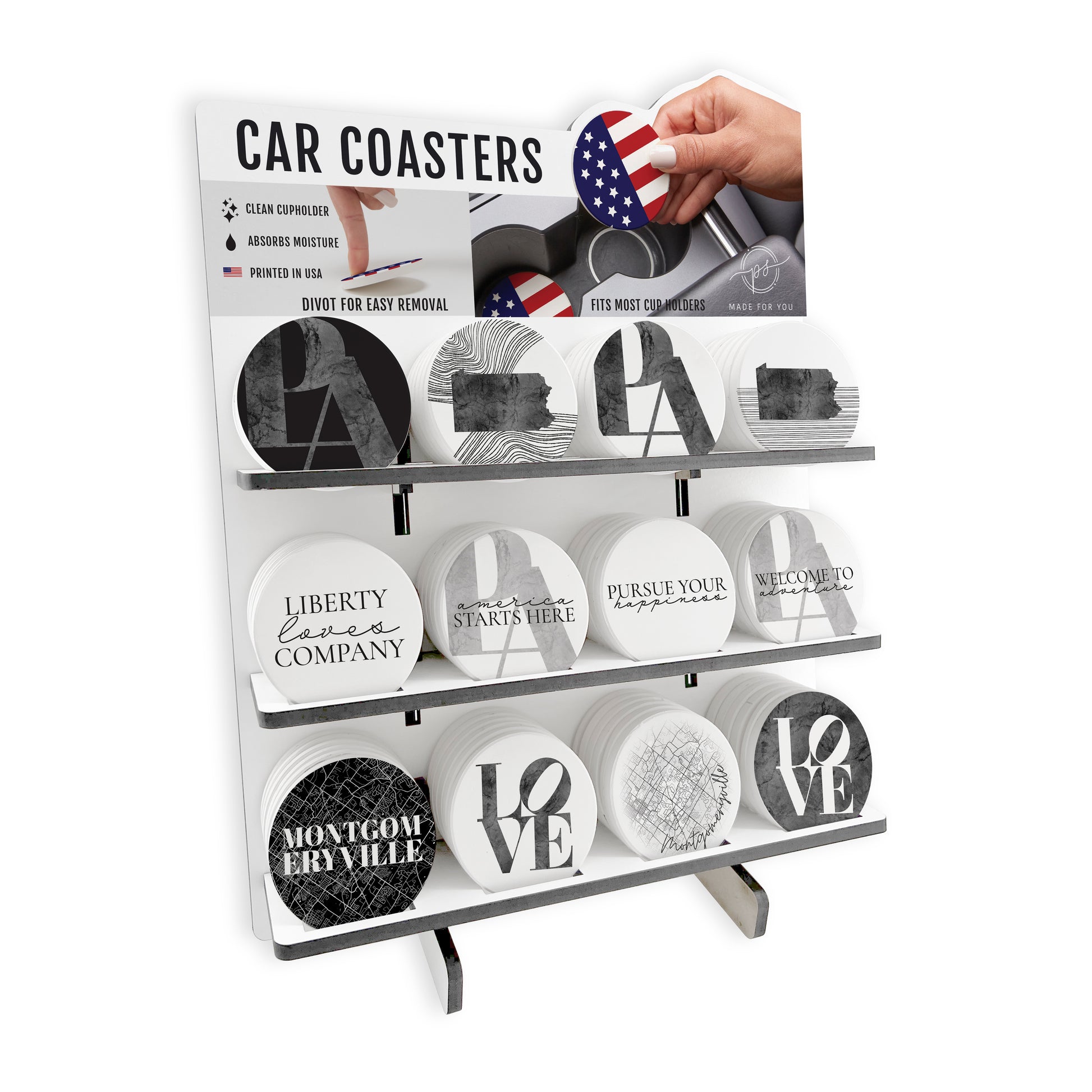Minimalistic B&W Pennsylvania Montgomeryville Car Ceramic Coaster Loaded Display POP Min of 1