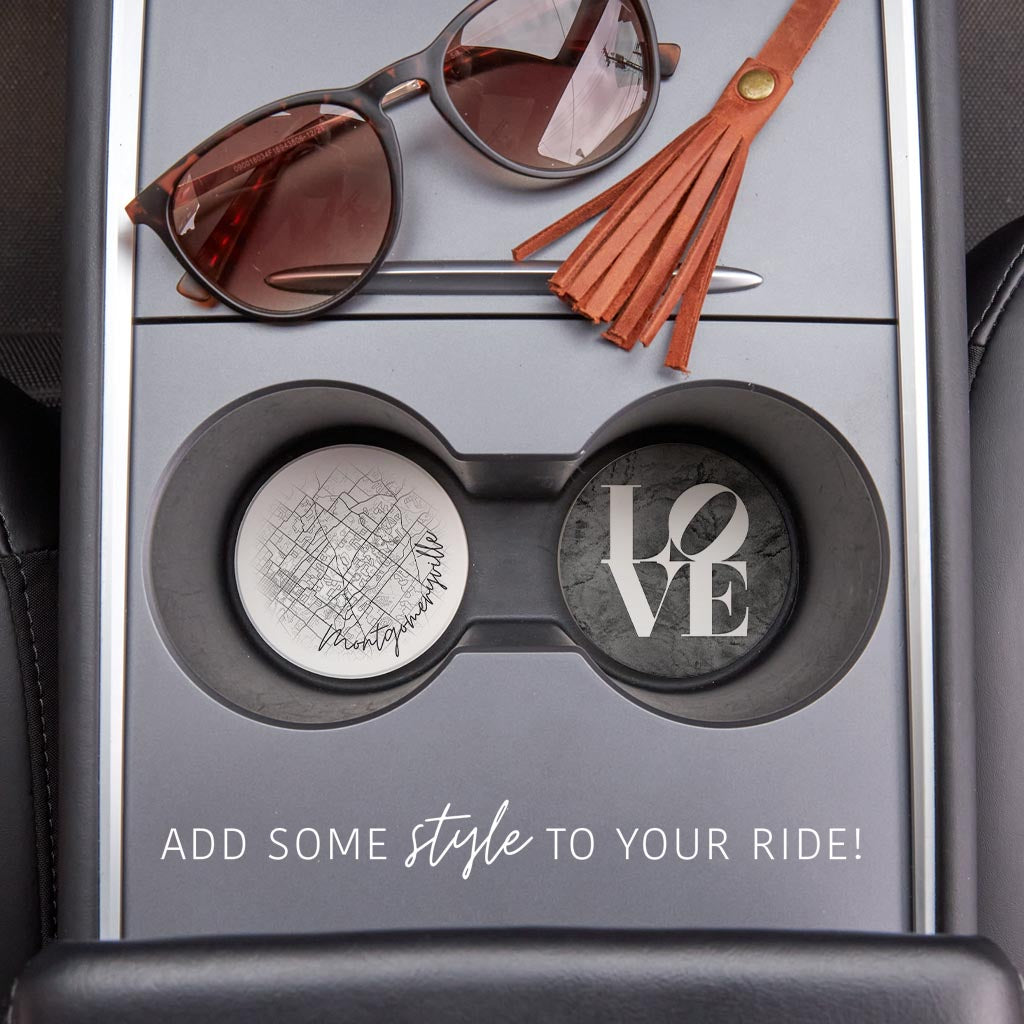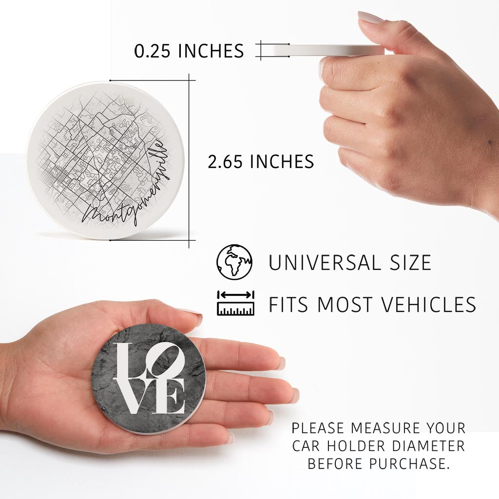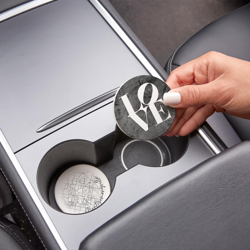 Minimalistic B&W Pennsylvania Montgomeryville Circle Love| Absorbent Car Coasters | Set of 2 | Min 4