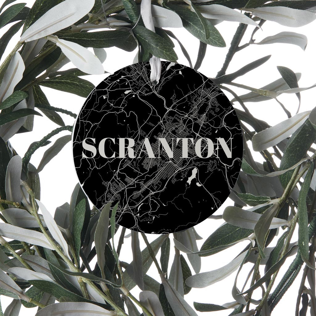 Minimalistic B&W Pennsylvania Scranton Map | Wood Ornament | Eaches | Min 6