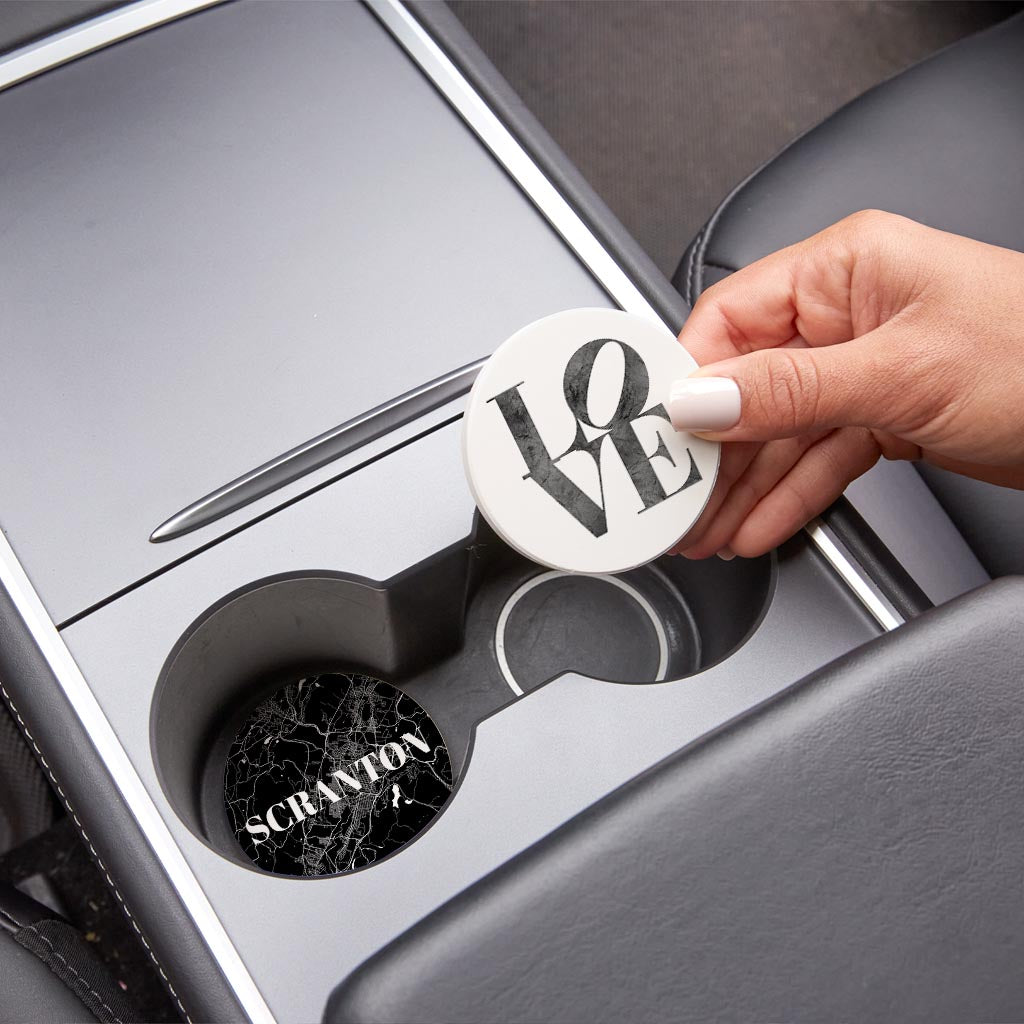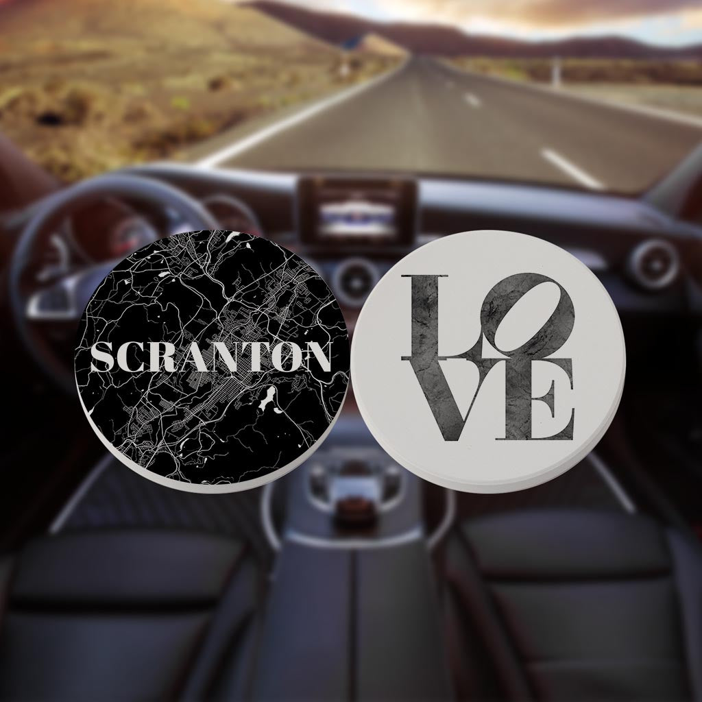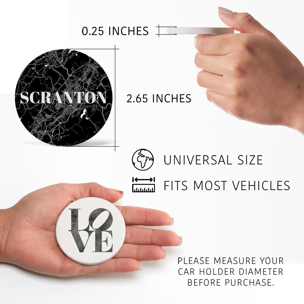 Minimalistic B&W Pennsylvania Scranton Map Love| Absorbent Car Coasters | Set of 2 | Min 4