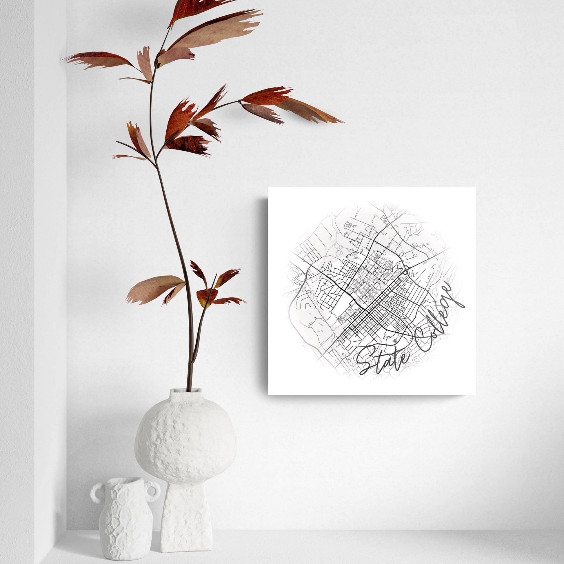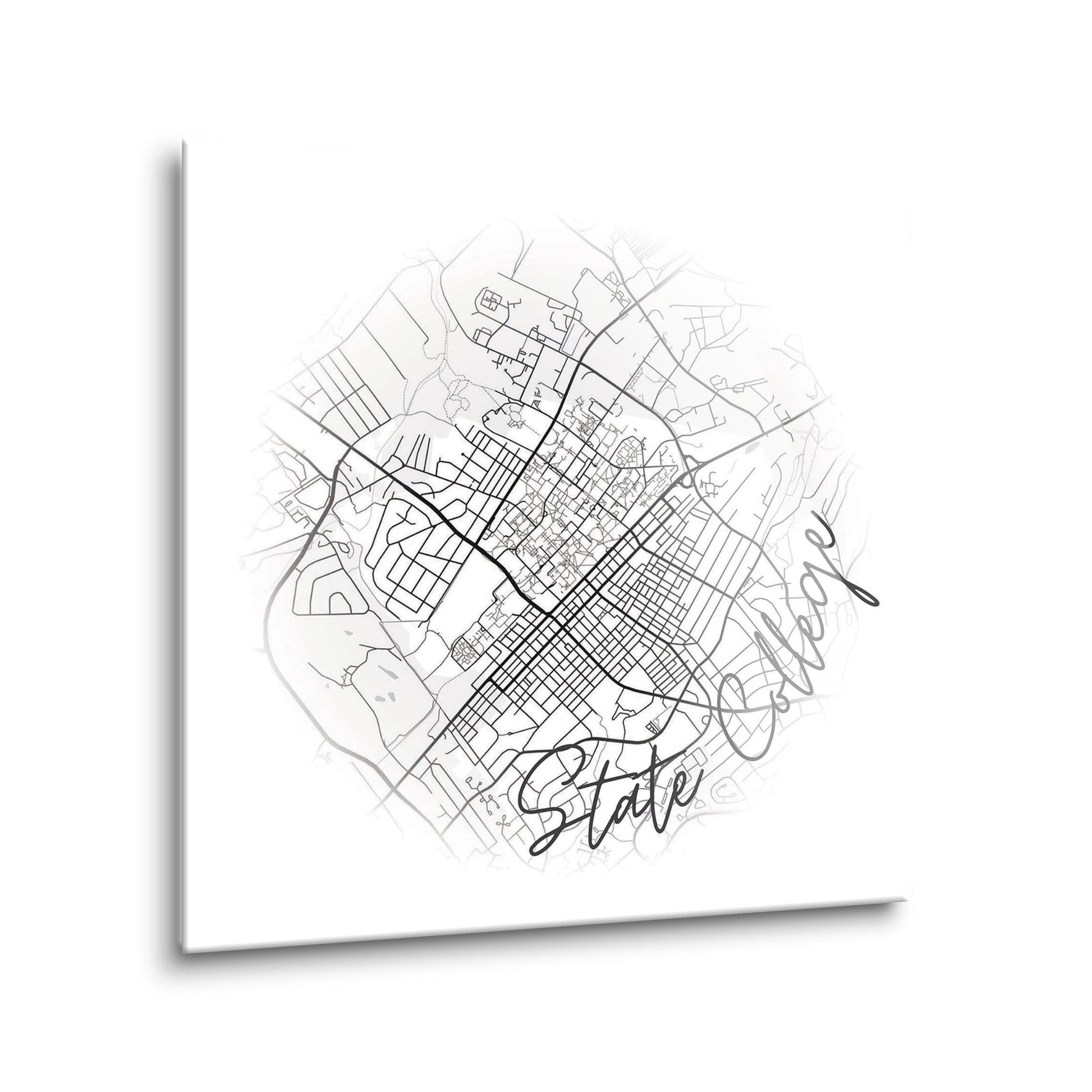 Minimalistic B&W Pennsylvania State College Circle Map | Hi-Def Glass Art | Eaches | Min 2