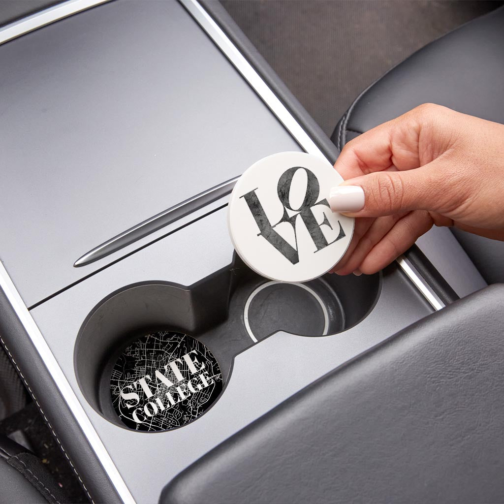 Minimalistic B&W Pennsylvania State College Map Love| Absorbent Car Coasters | Set of 2 | Min 4