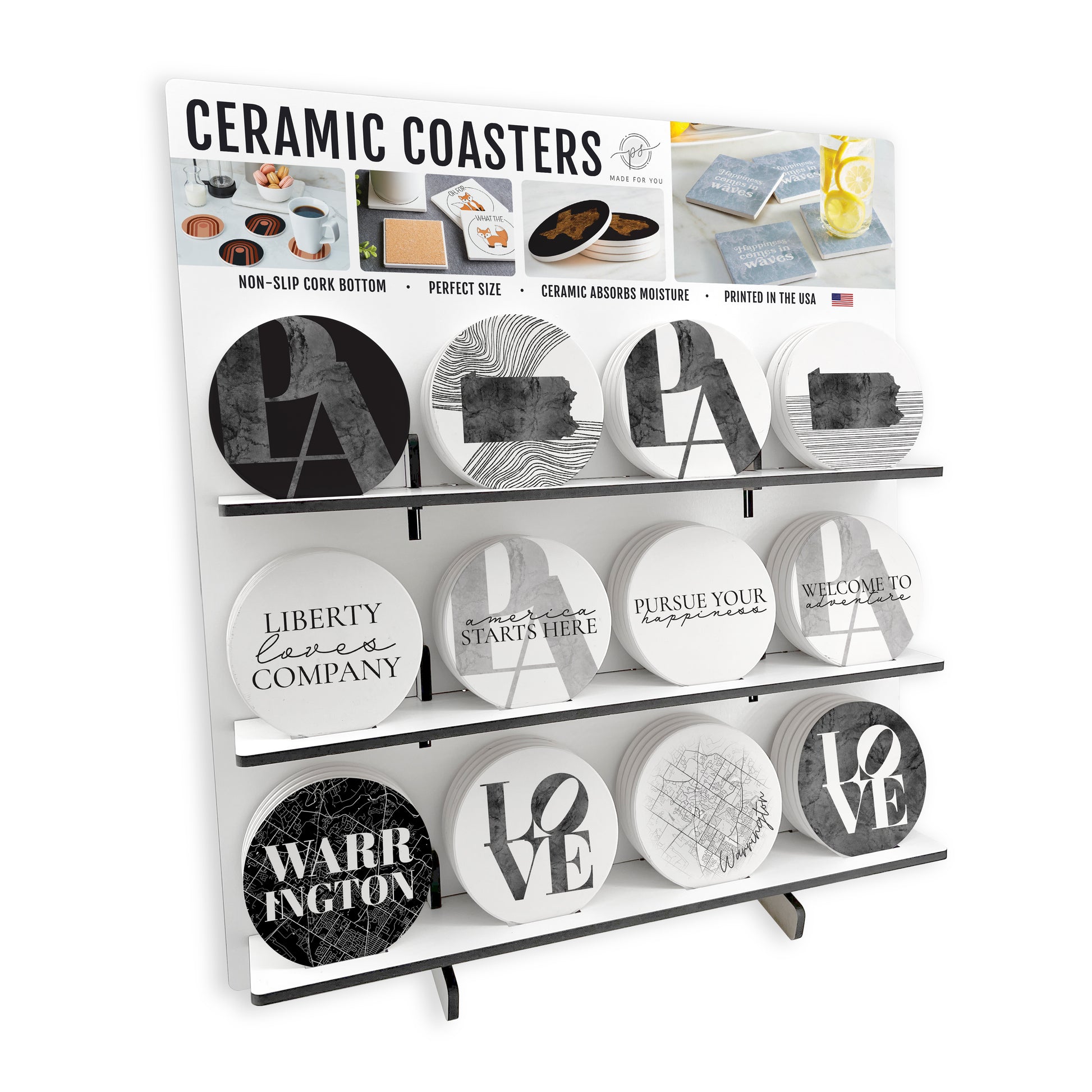 Minimalistic B&W Pennsylvania Warrington Circle Ceramic Coaster Loaded Display POP Min of 1