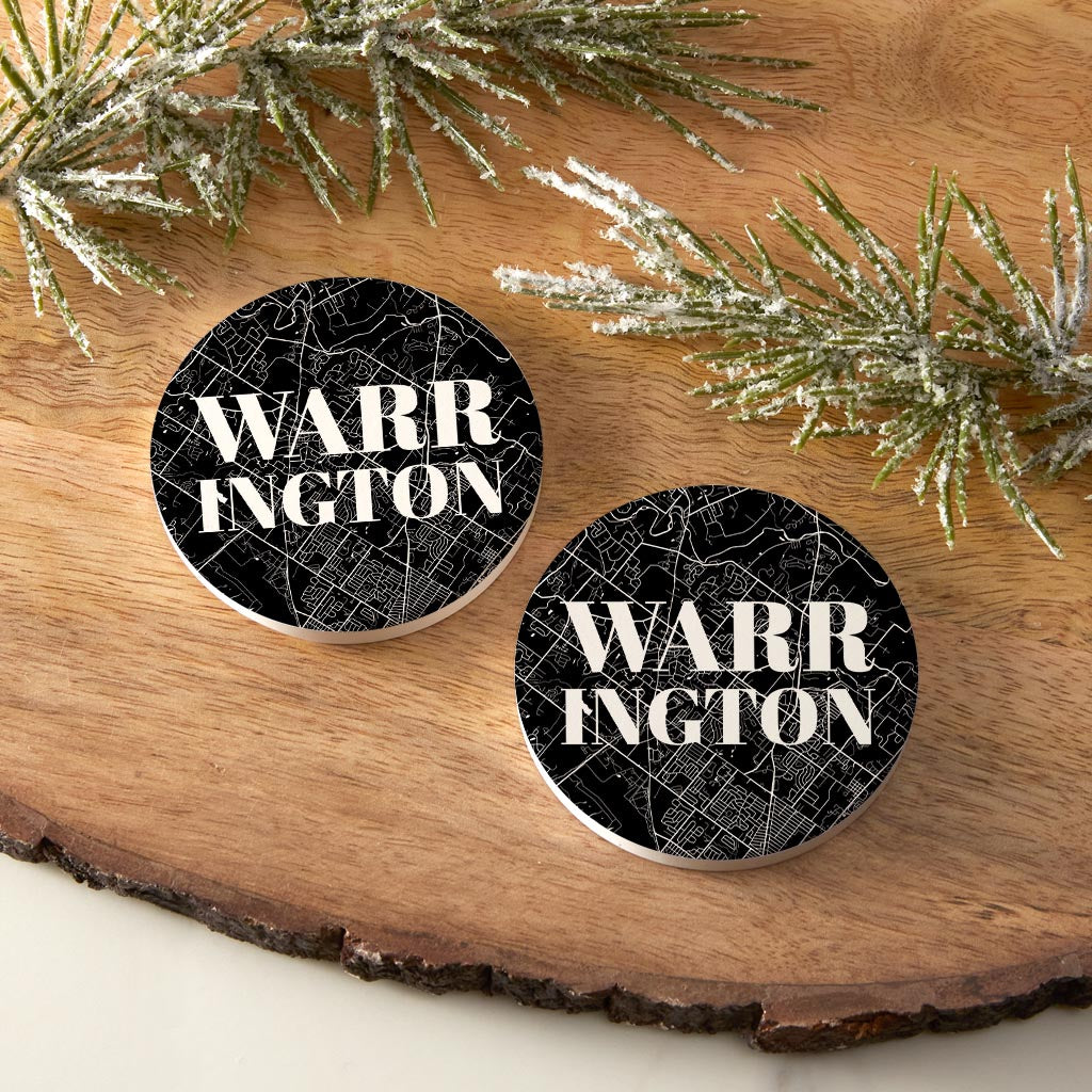 Minimalistic B&W Pennsylvania Warrington Map | Absorbent Car Coasters | Set of 2 | Min 4