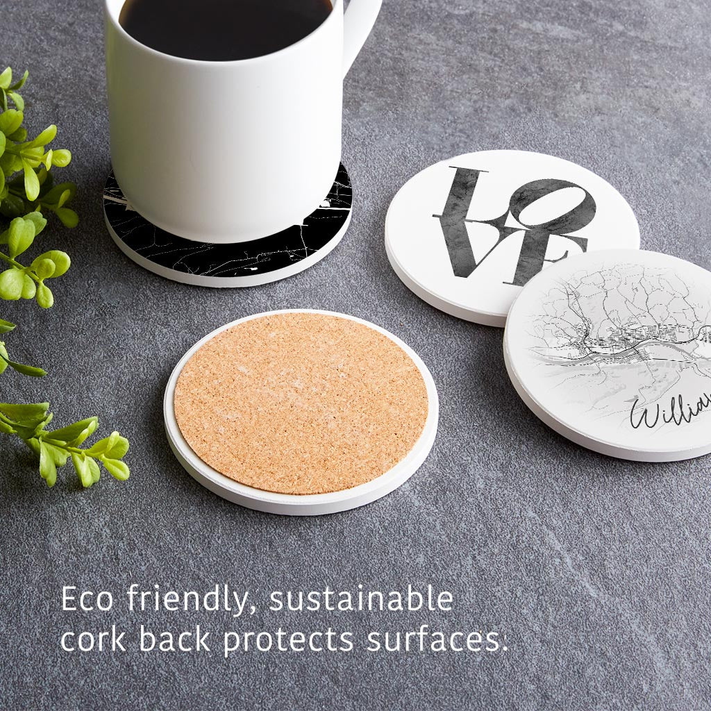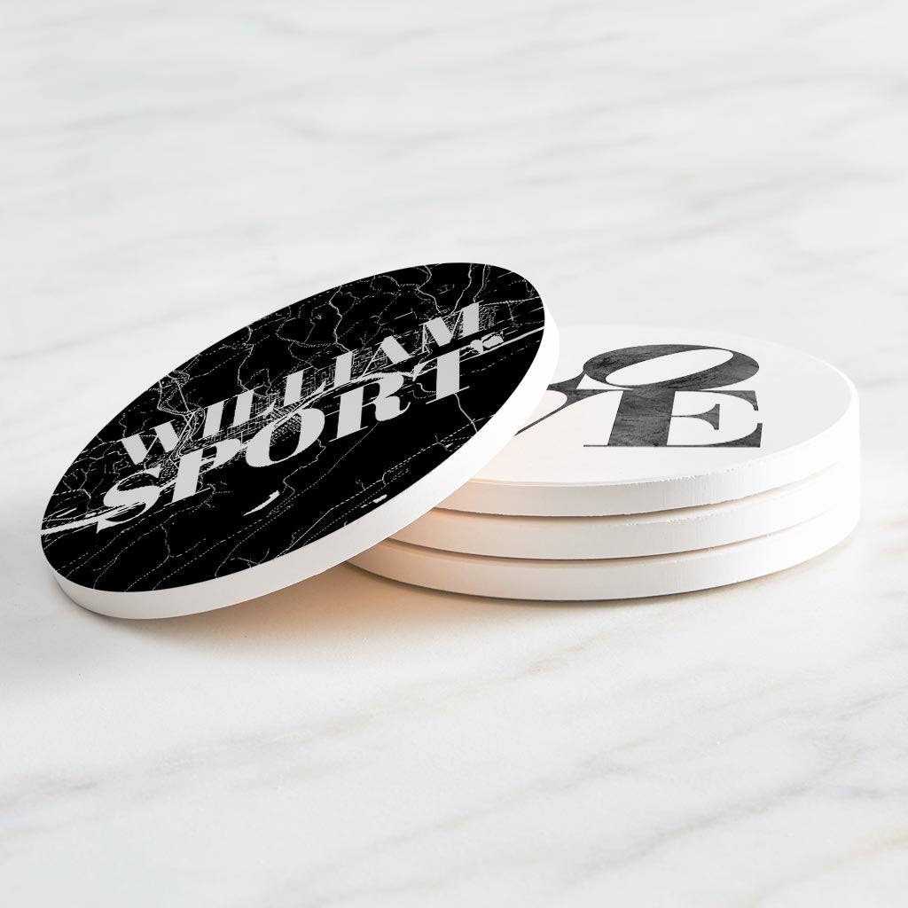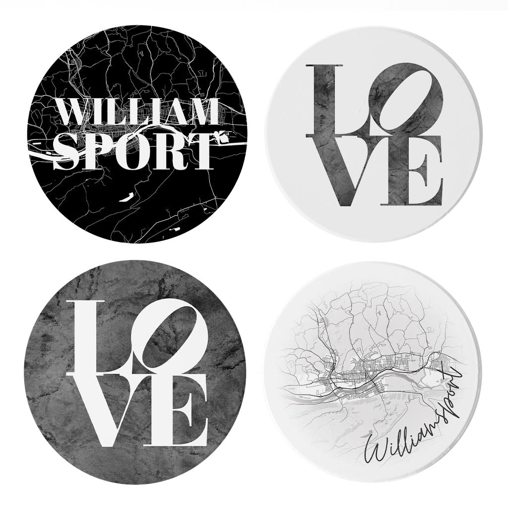 Minimalistic B&W Pennsylvania Williamsport Maps Love | Absorbent Coasters | Set of 4 | Min 2