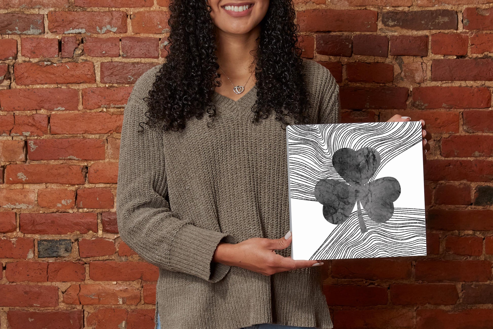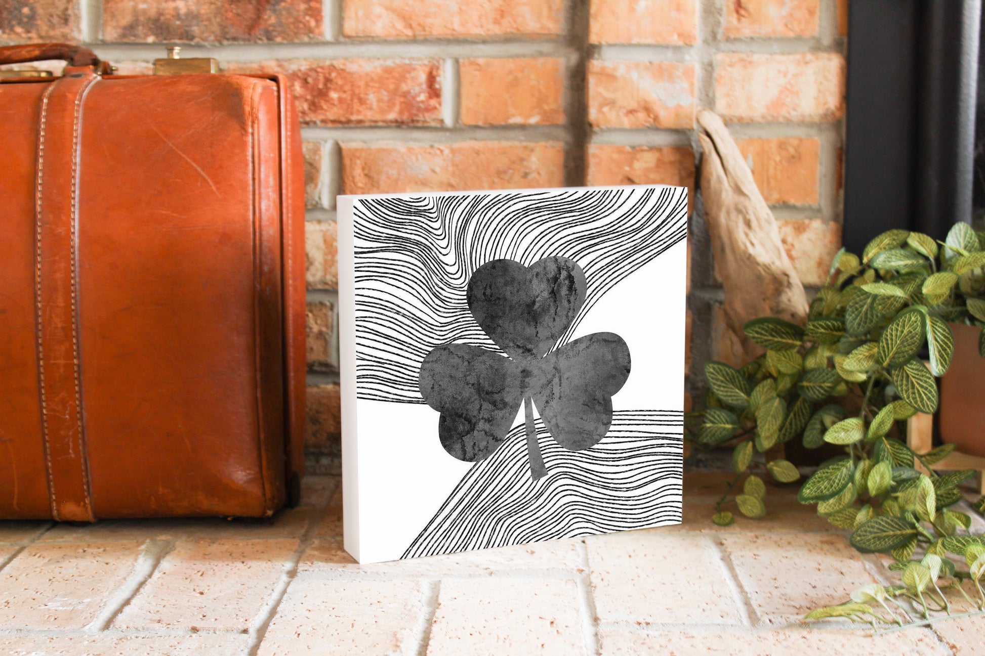 Minimalistic B&W Shamrock Fluid Lines | Wood Block | Eaches | Min 2