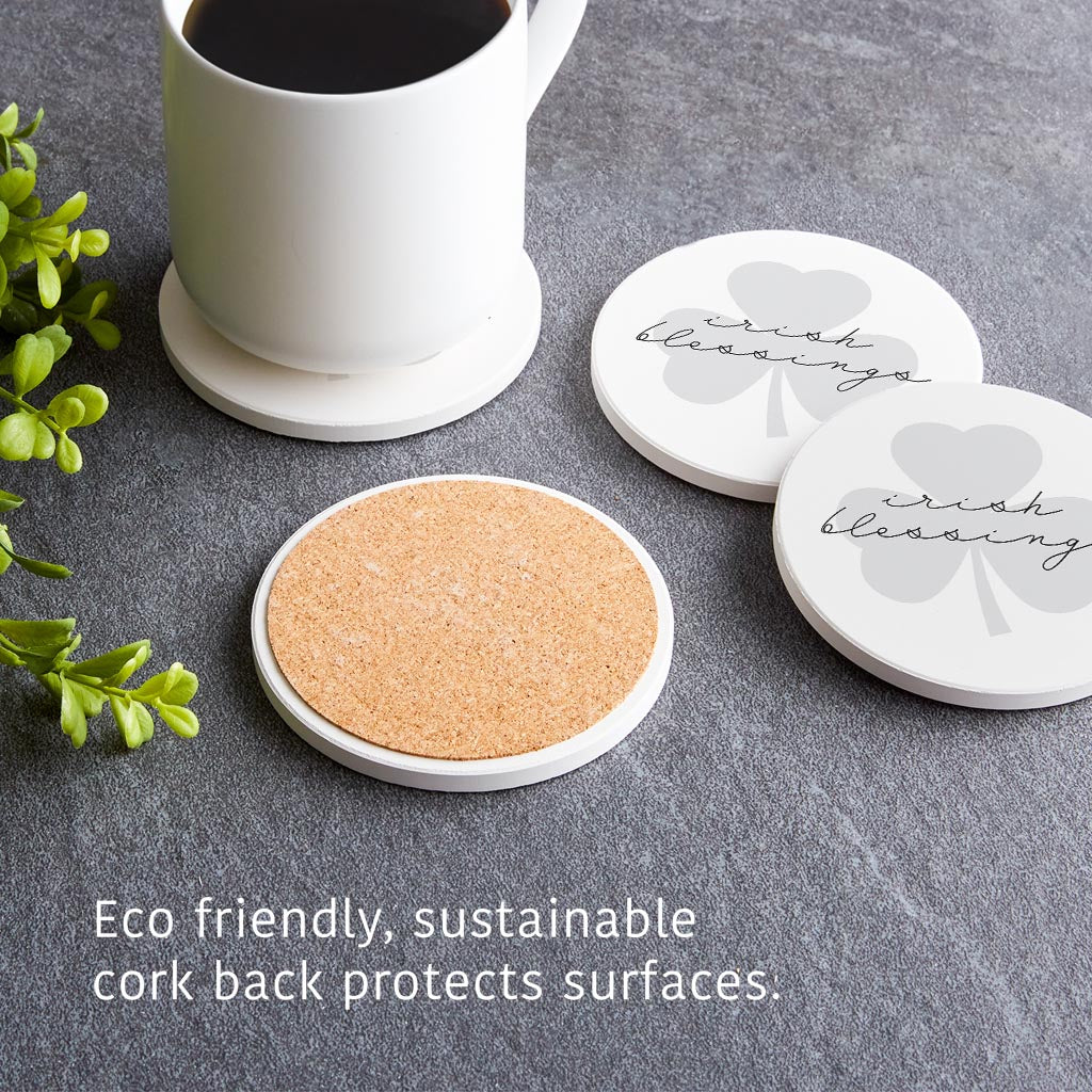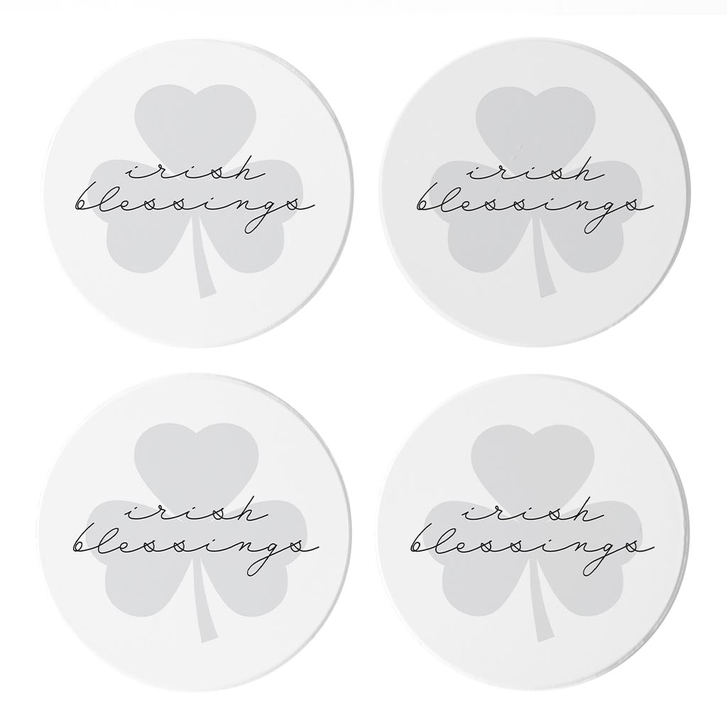 Minimalistic B&W Shamrock Irish Blessings | Absorbent Coasters | Set of 4 | Min 2