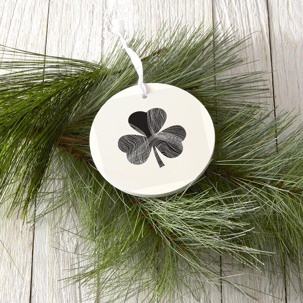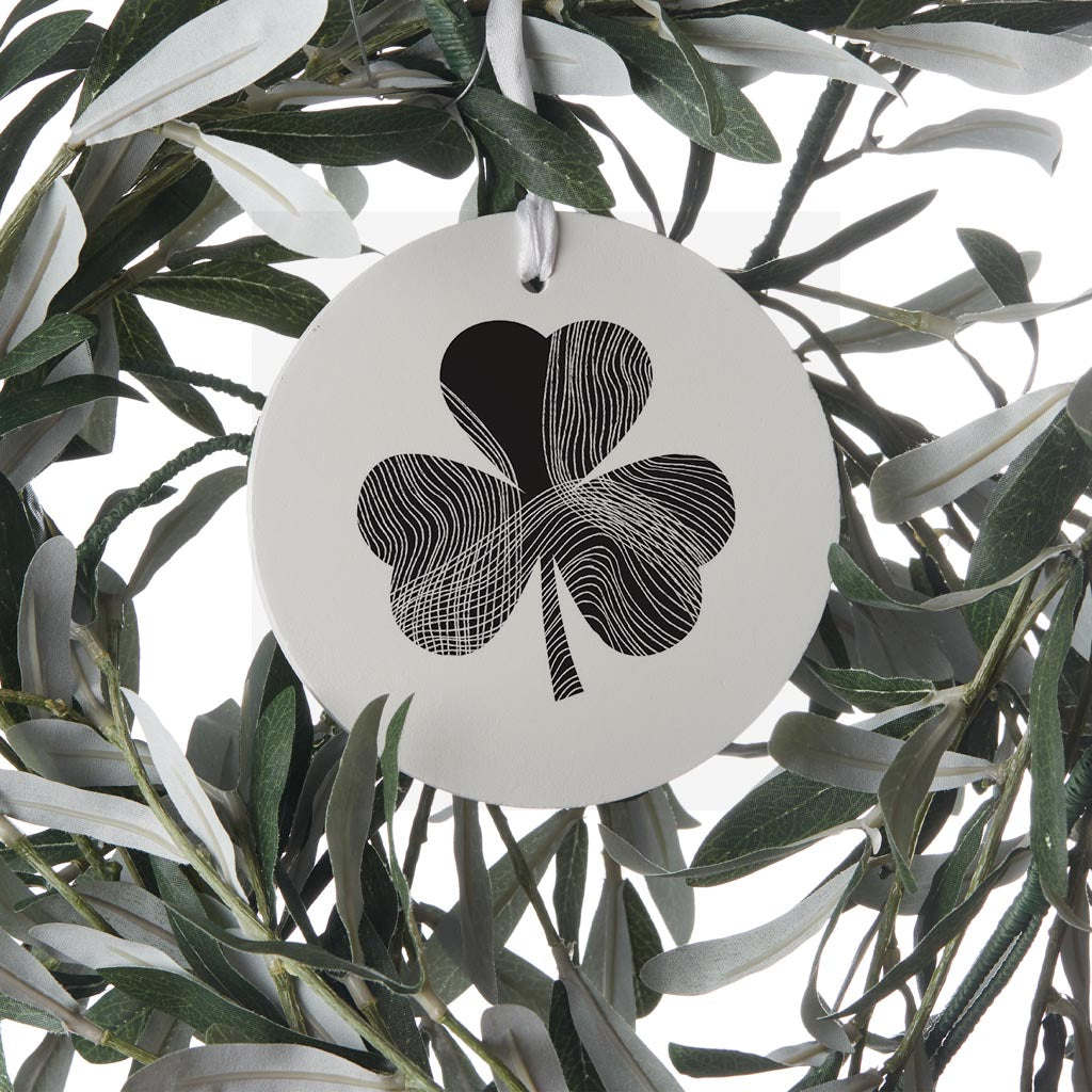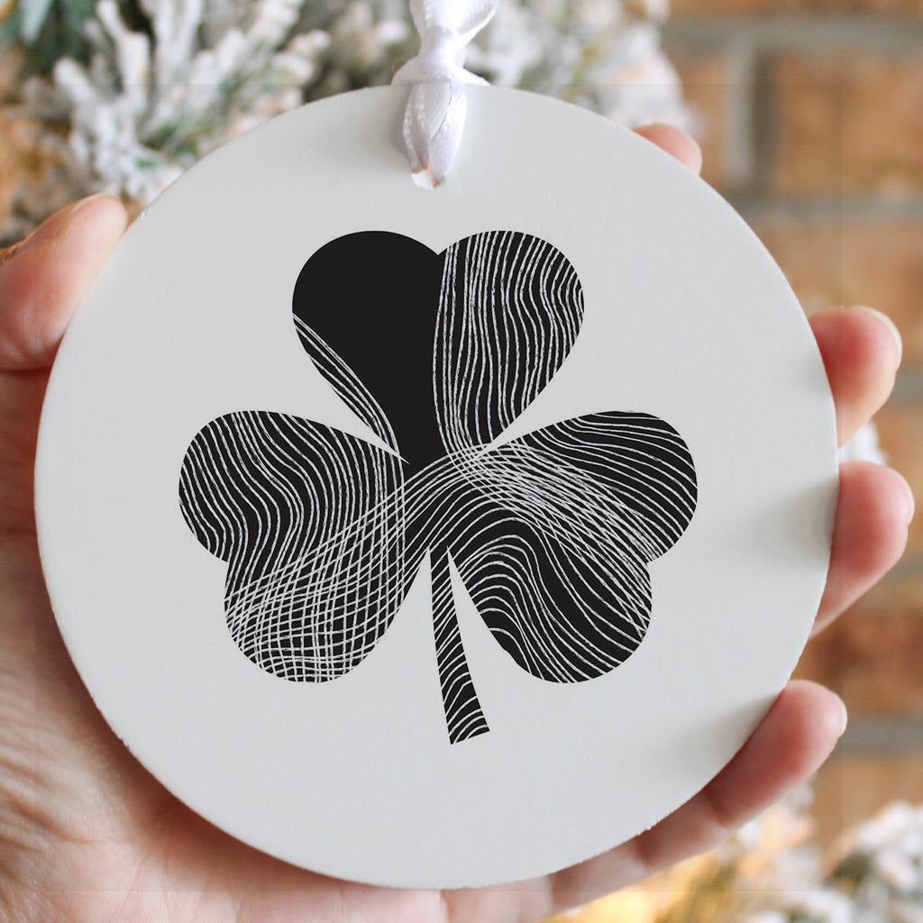 Minimalistic B&W Shamrock Shape Fluid Lines | Wood Ornament | Eaches | Min 6