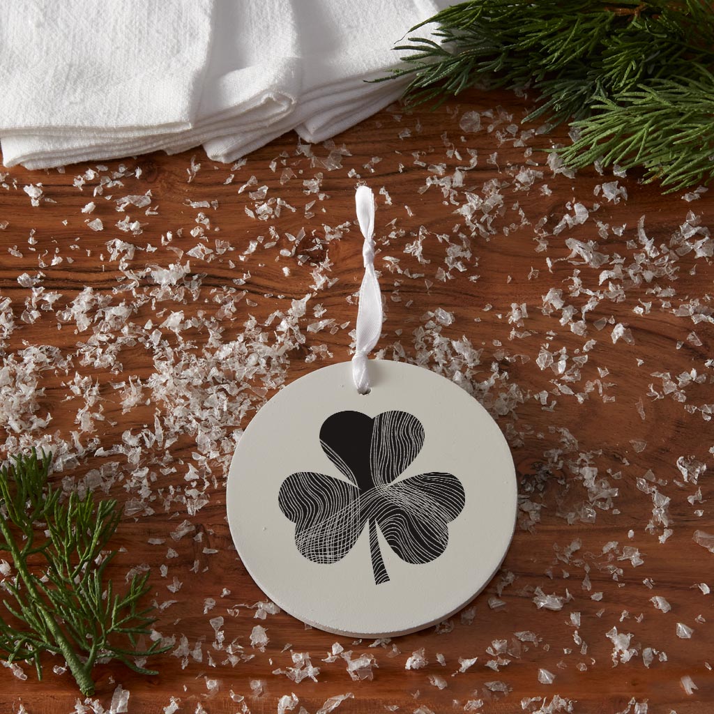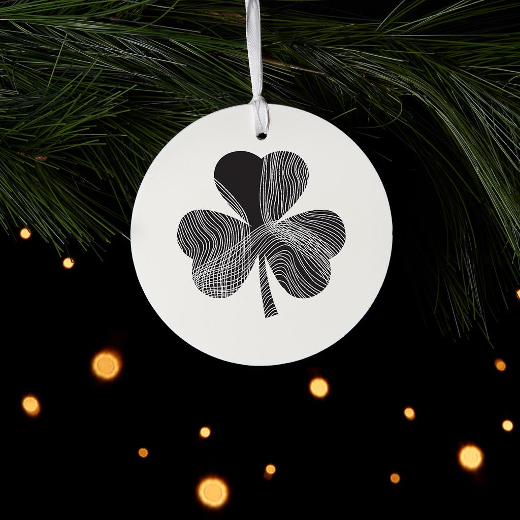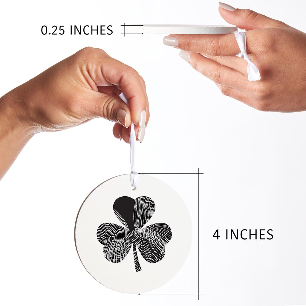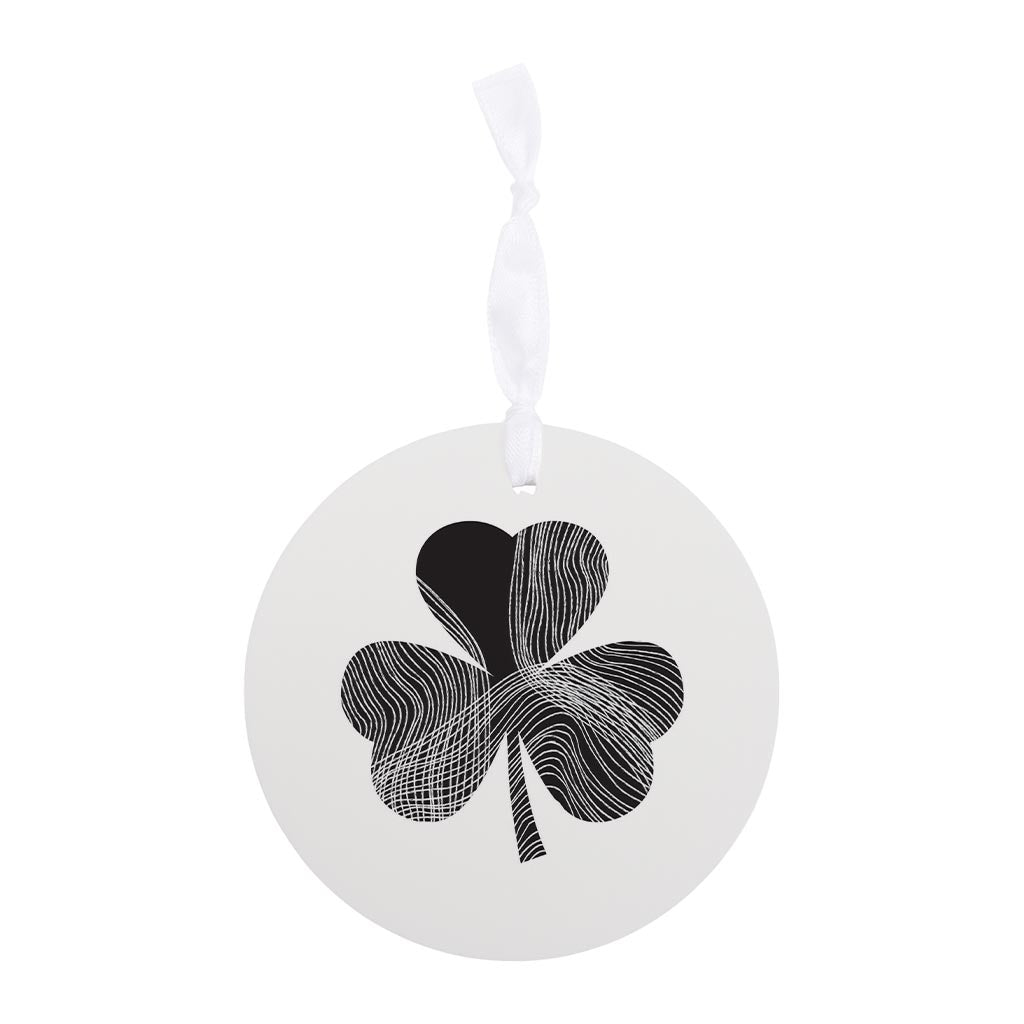 Minimalistic B&W Shamrock Shape Fluid Lines | Wood Ornament | Eaches | Min 6