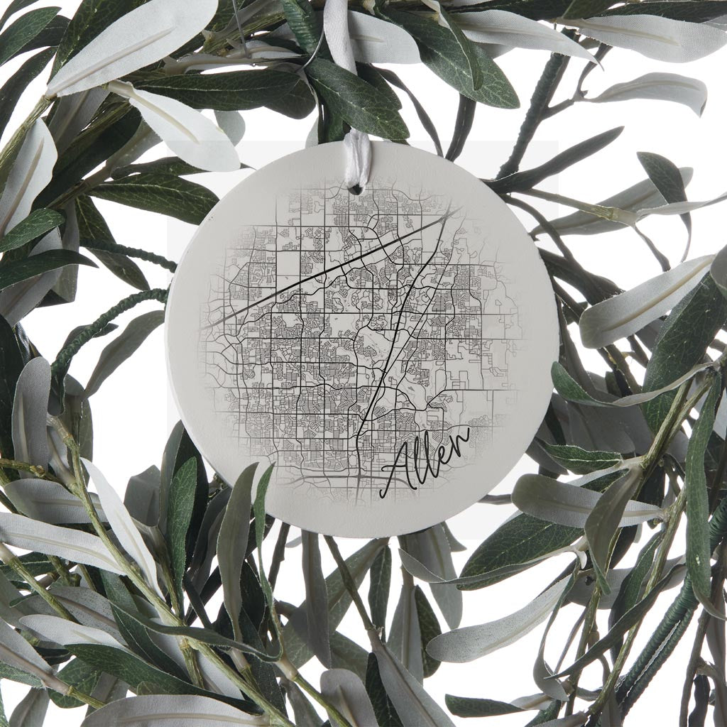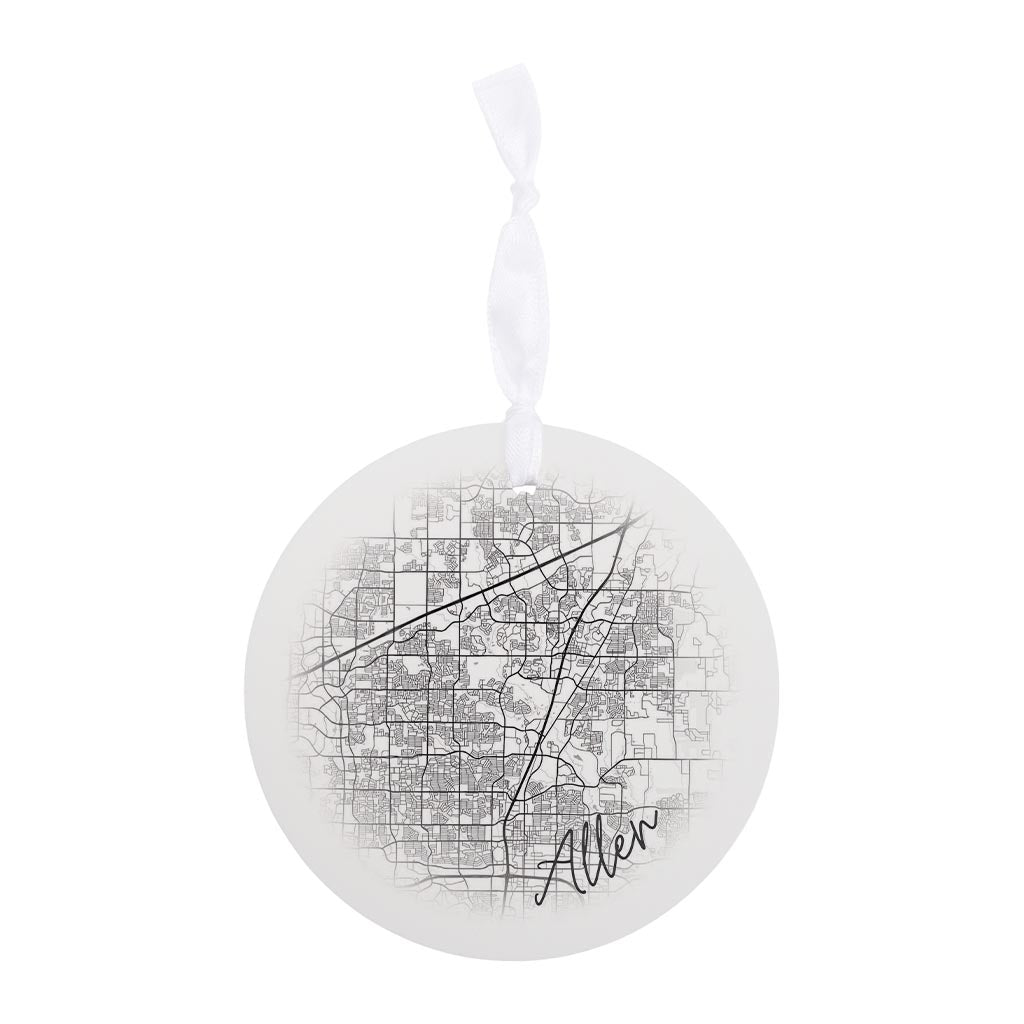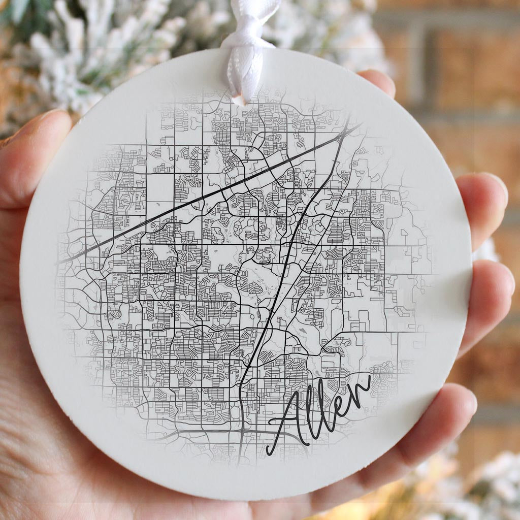 Minimalistic B&W Texas Allen Circle Map | Wood Ornament | Eaches | Min 6