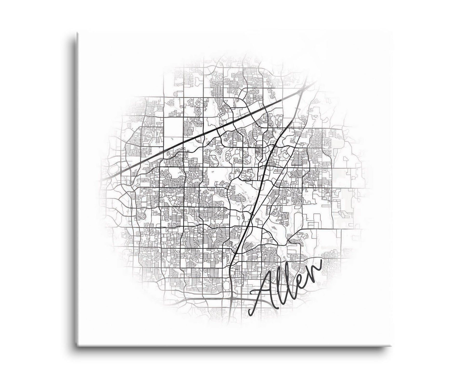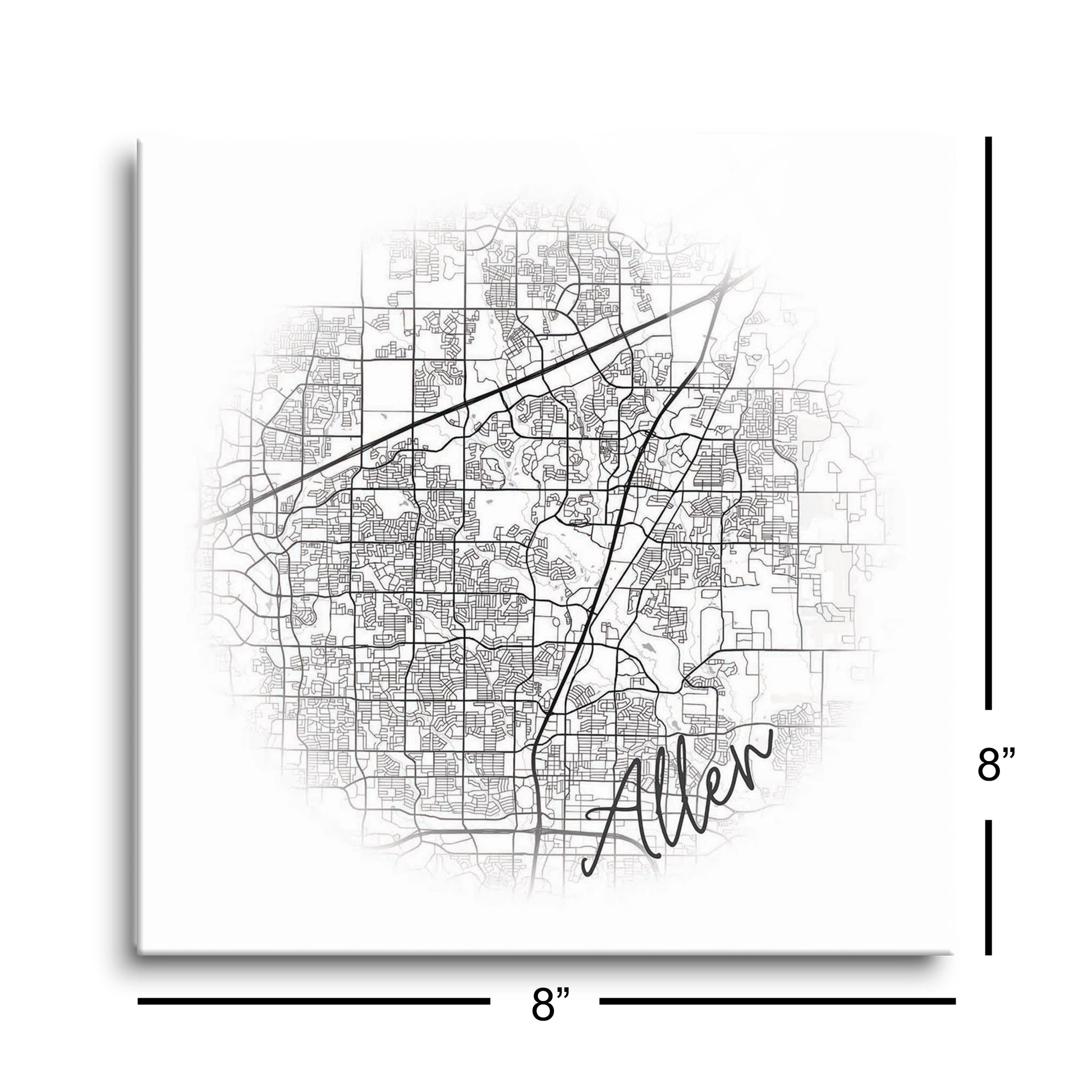 Minimalistic B&W Texas Allen Circle Map | Hi-Def Glass Art | Eaches | Min 2