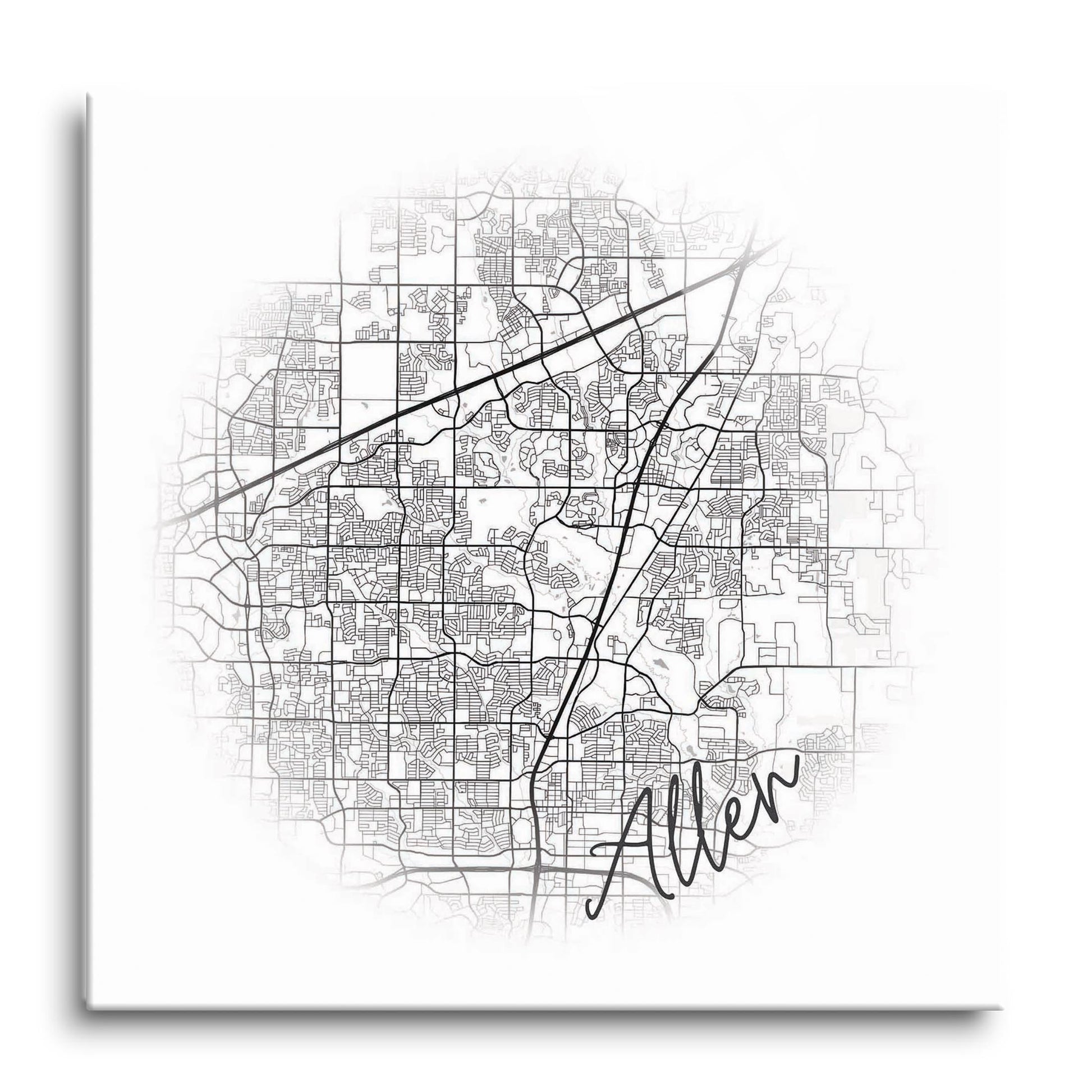 Minimalistic B&W Texas Allen Circle Map | Hi-Def Glass Art | Eaches | Min 1