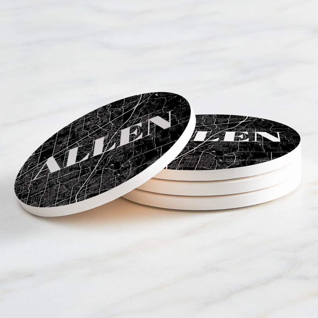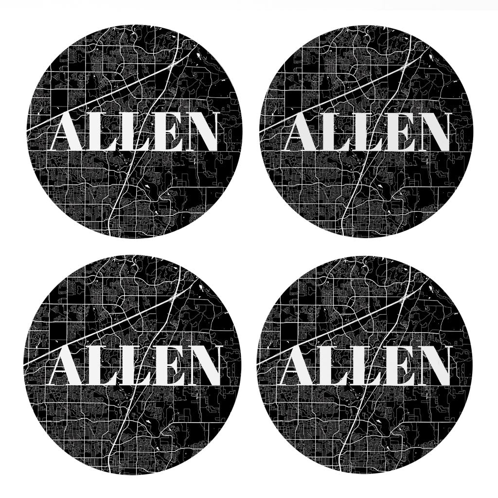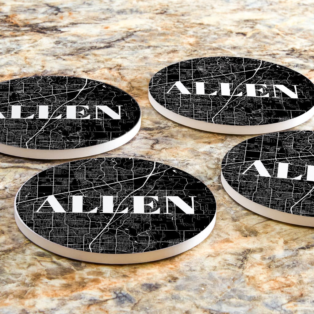 Minimalistic B&W Texas Allen Map| Absorbent Coasters | Set of 4 | Min 2