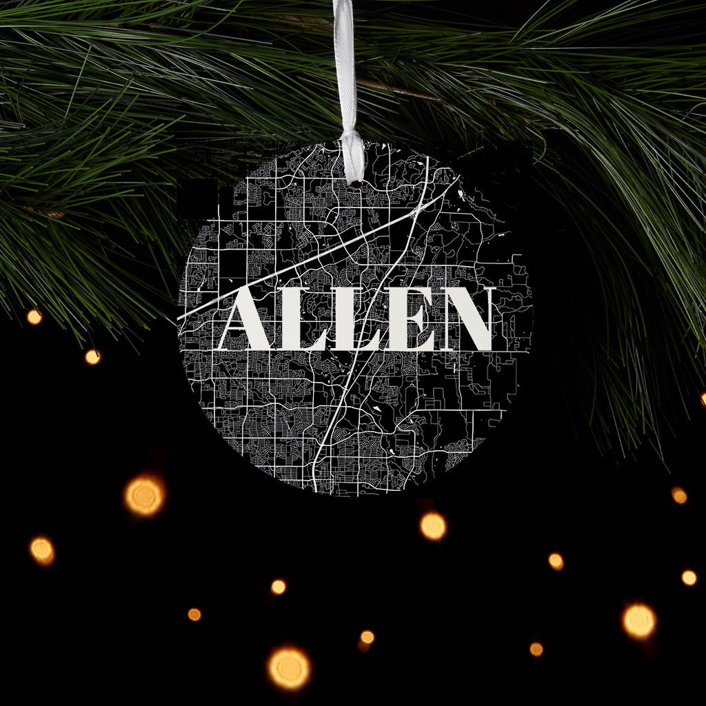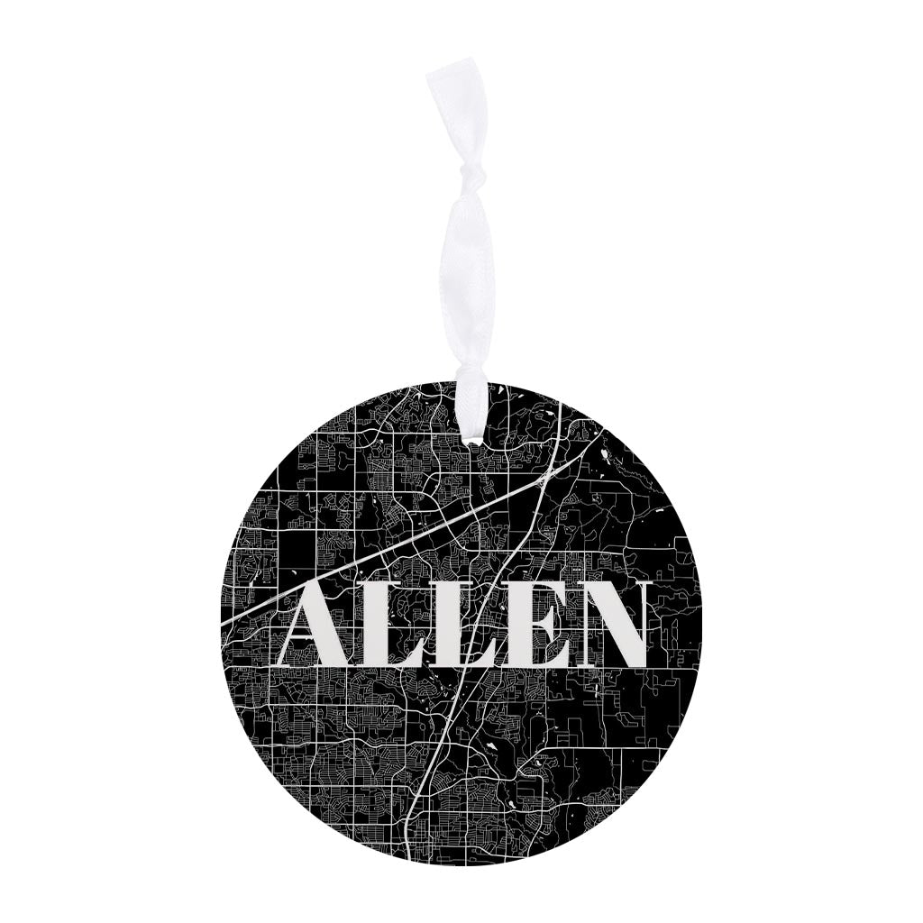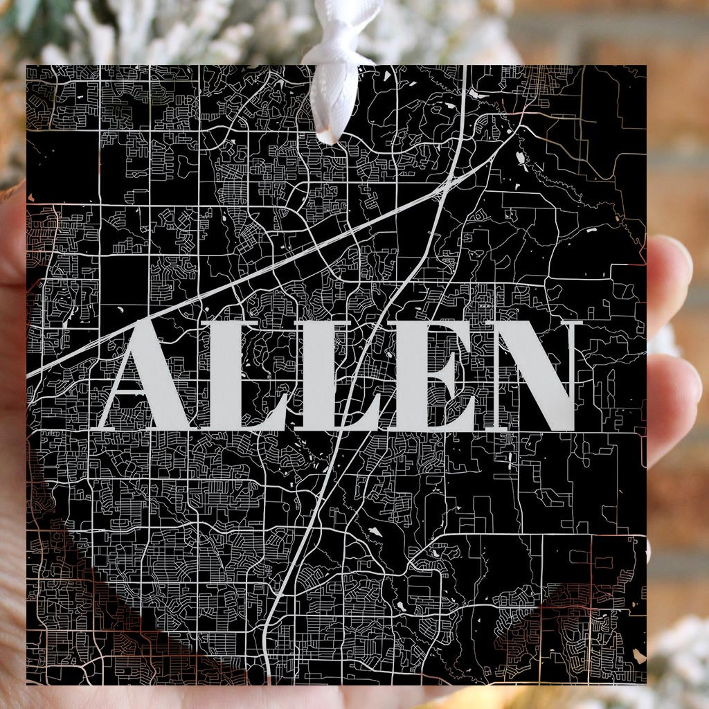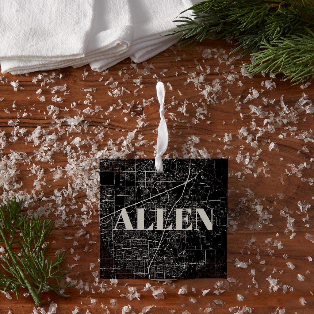 Minimalistic B&W Texas Allen Map | Wood Ornament | Eaches | Min 6