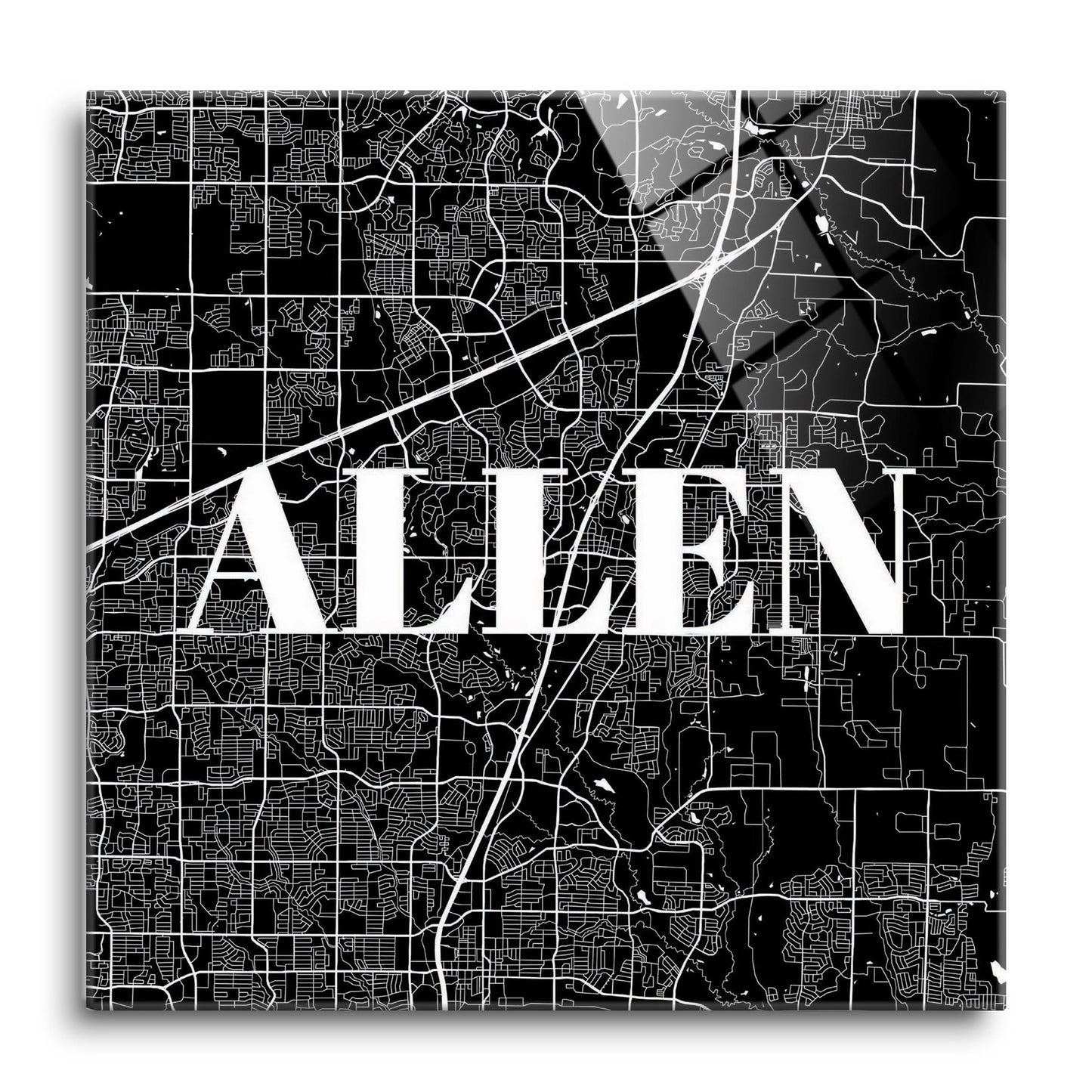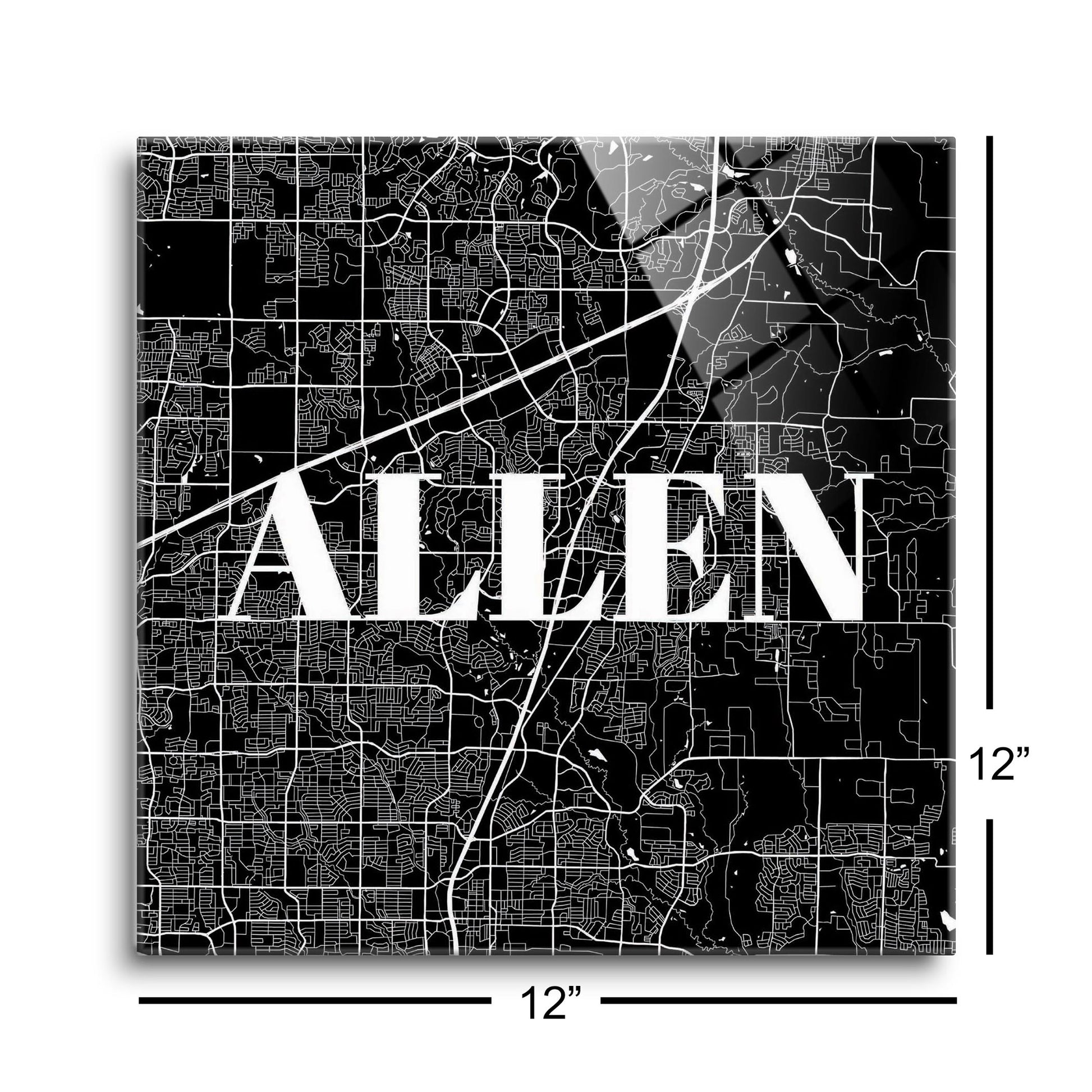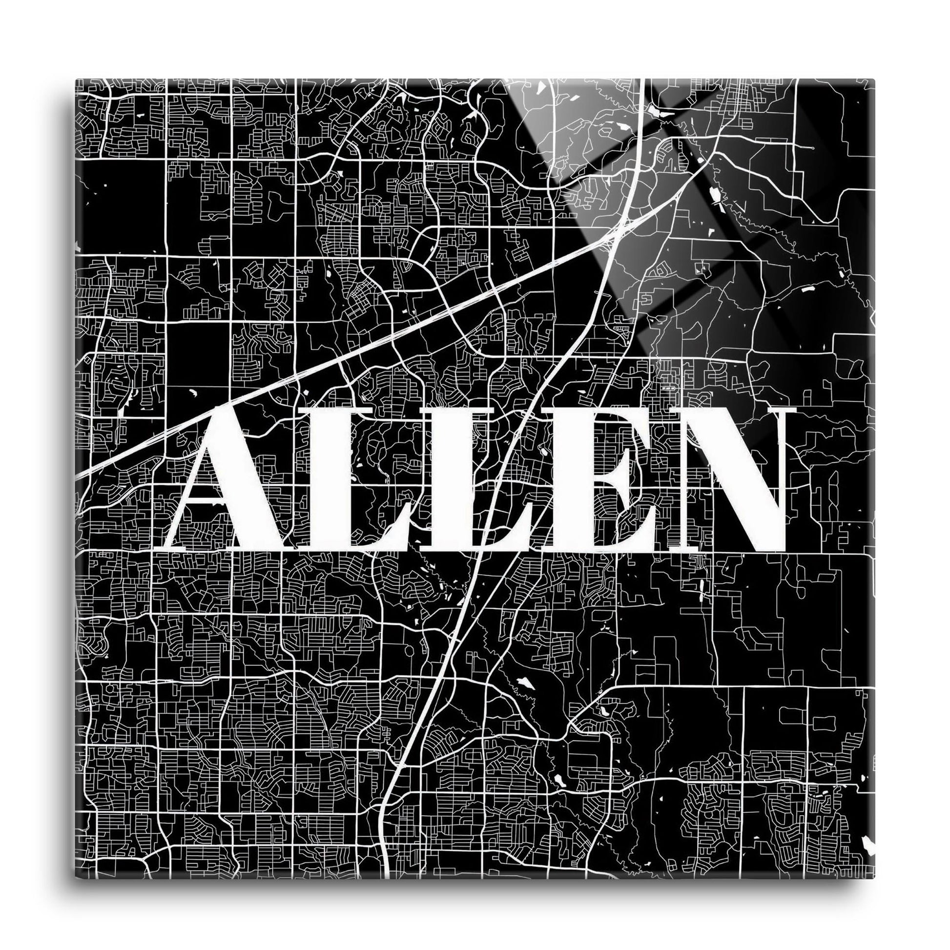 Minimalistic B&W Texas Allen Map | Hi-Def Glass Art | Eaches | Min 1