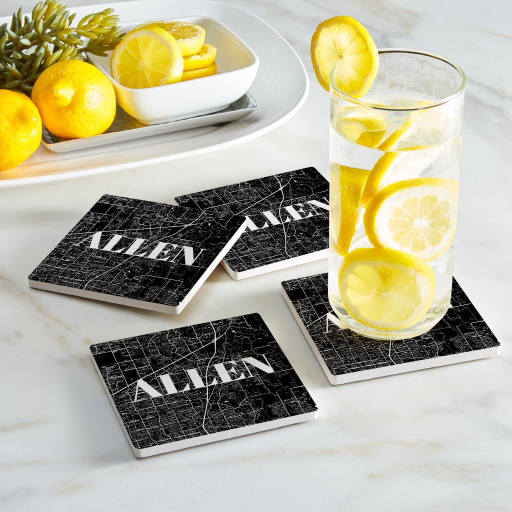 Minimalistic B&W Texas Allen Map | Absorbent Coasters | Set of 4 | Min 2
