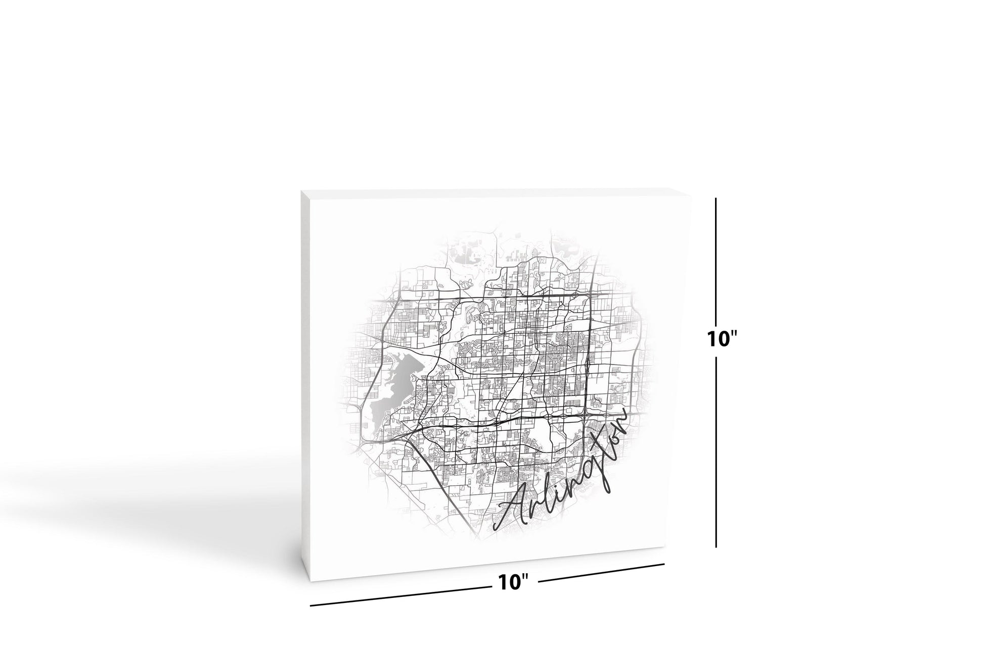 Minimalistic B&W Texas Arlington Circle Map | Wood Block | Eaches | Min 2
