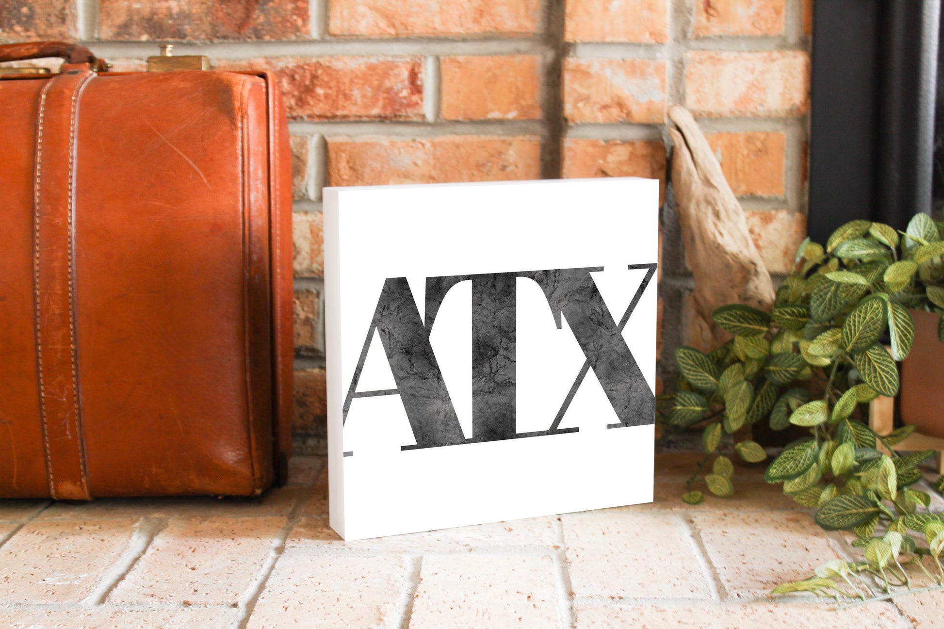 Minimalistic B&W Texas Austin White Initials | Wood Block | Eaches | Min 2