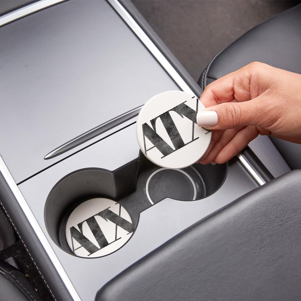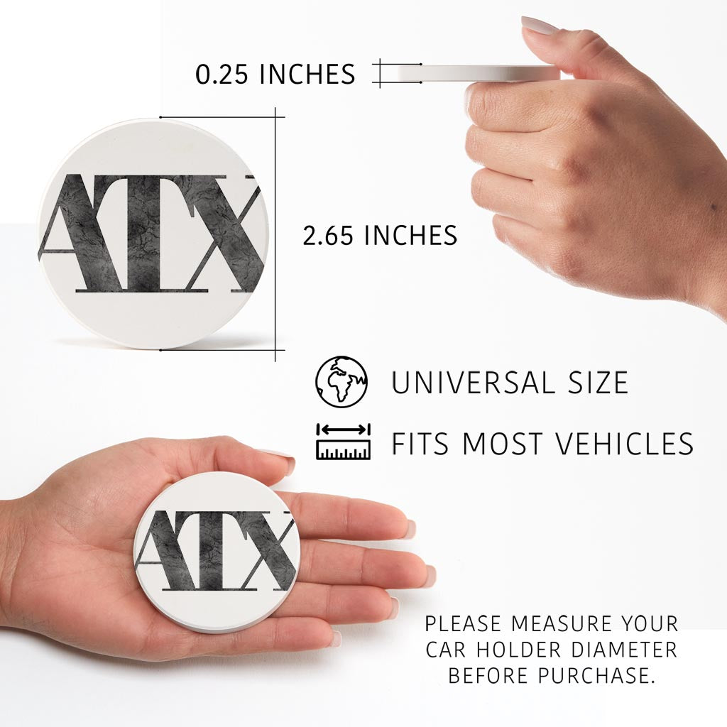 Minimalistic B&W Texas Austin White Initials | Absorbent Car Coasters | Set of 2 | Min 4