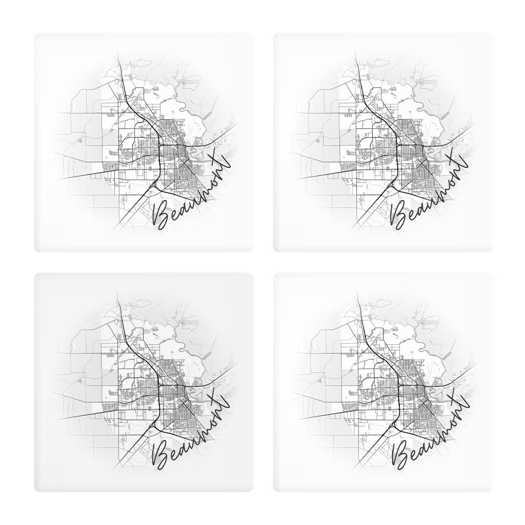 Minimalistic B&W Texas Beaumont Circle Map | Absorbent Coasters | Set of 4 | Min 2