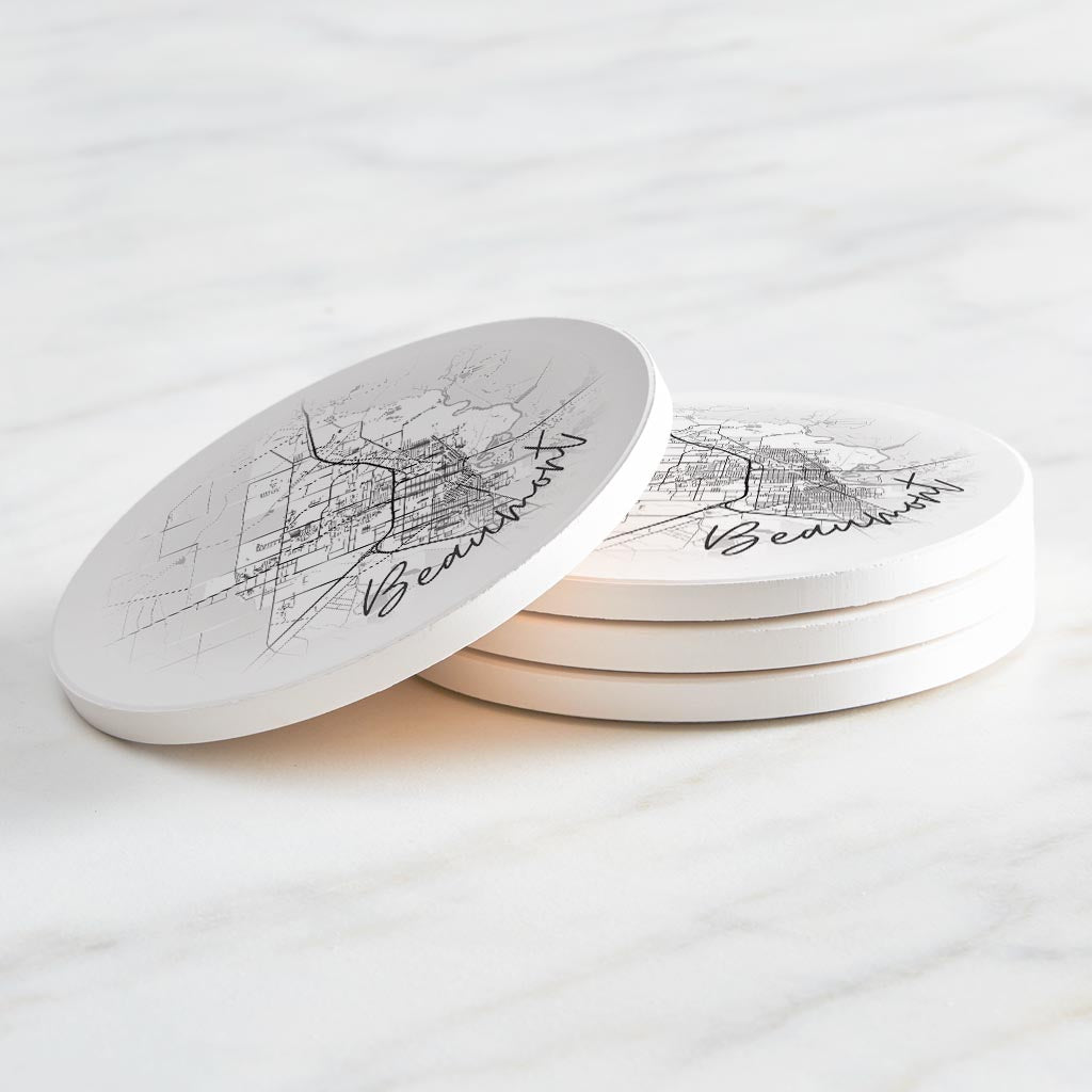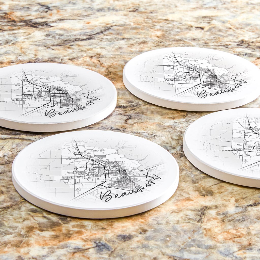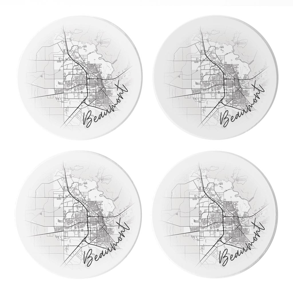 Minimalistic B&W Texas Beaumont Circle Map | Absorbent Coasters | Set of 4 | Min 2