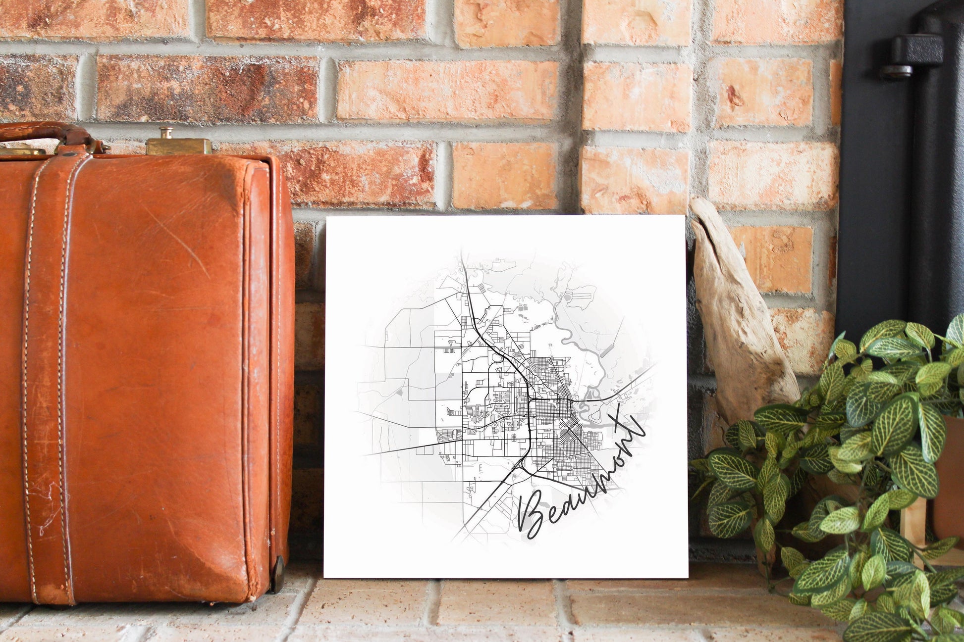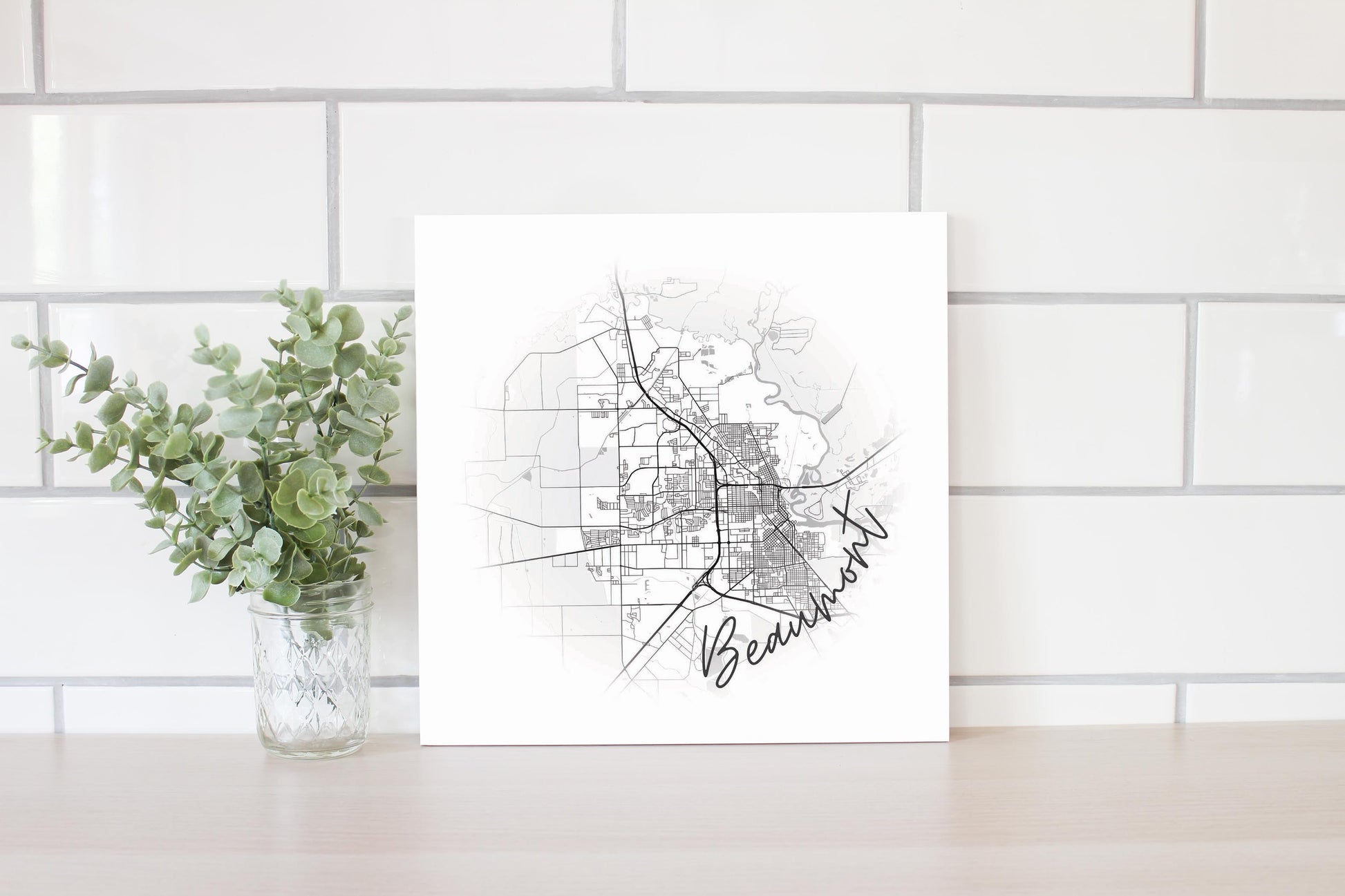 Minimalistic B&W Texas Beaumont Circle Map | Wood Sign | Eaches | Min 2
