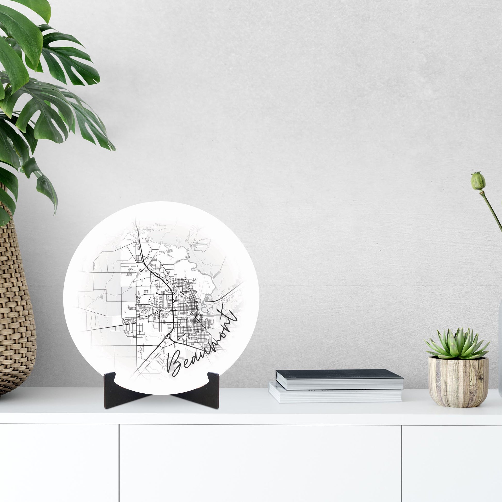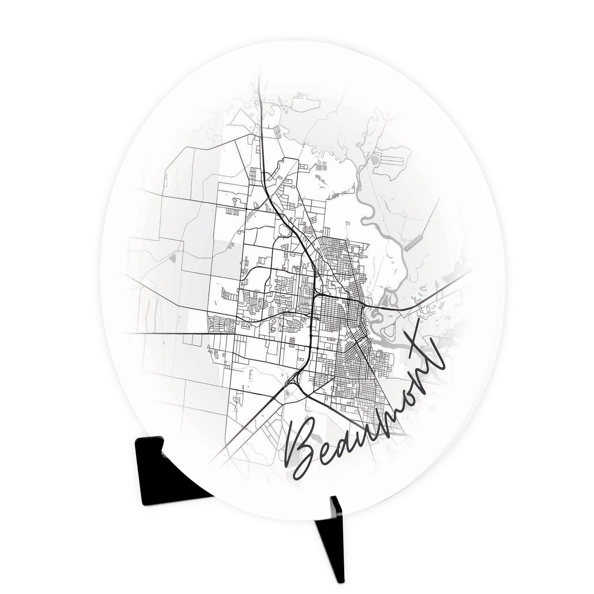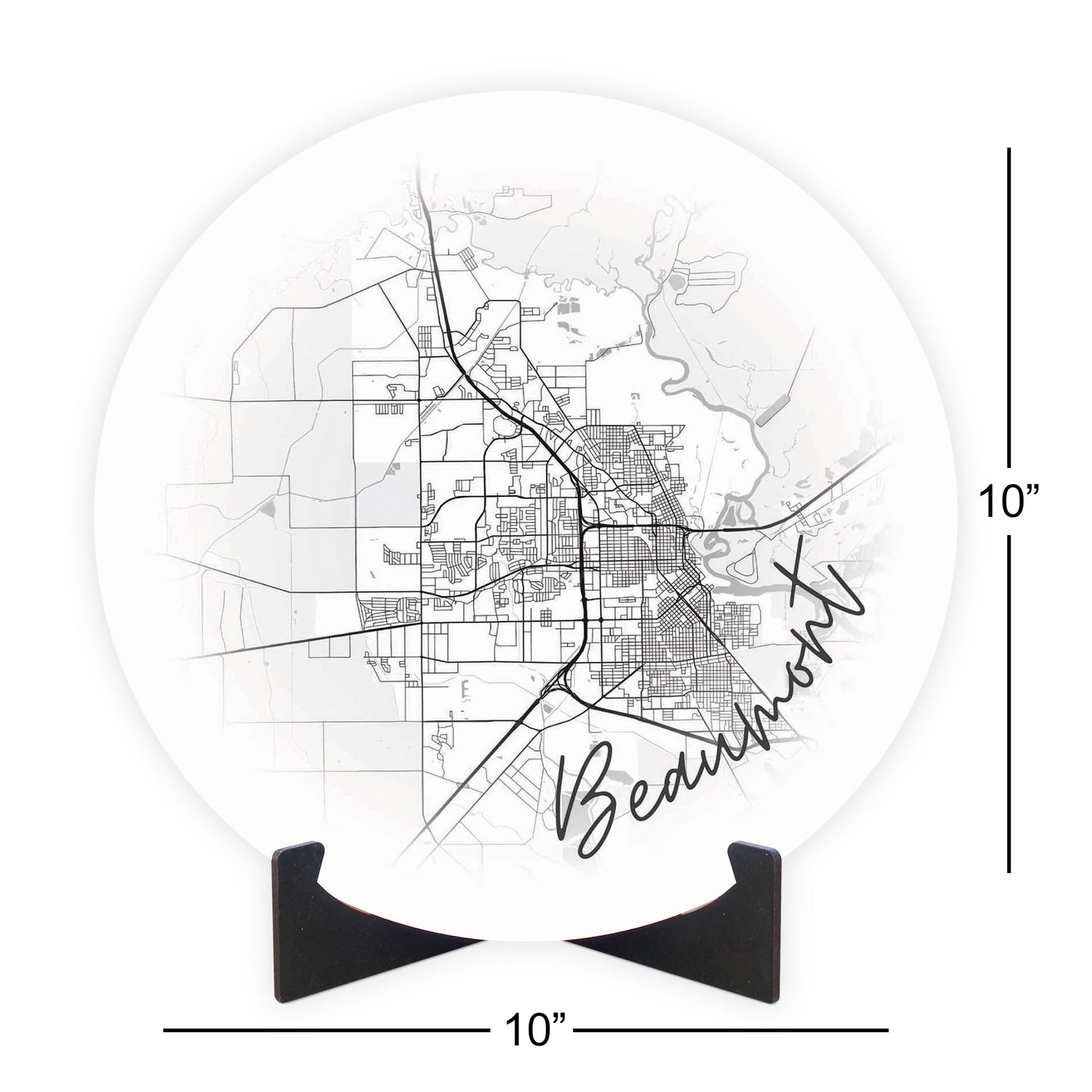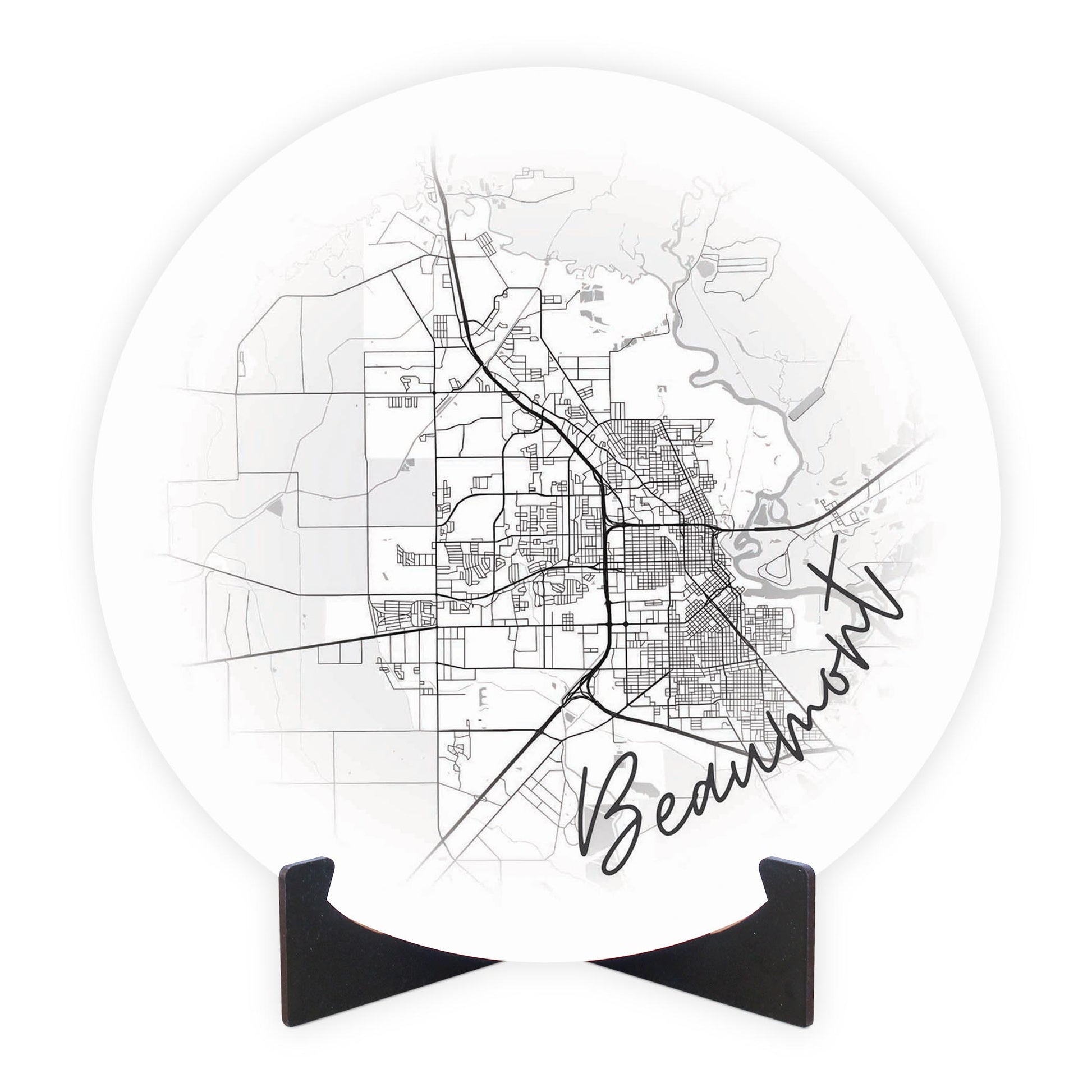 Minimalistic B&W Texas Beaumont Circle Map | Wood Sign | Eaches | Min 1