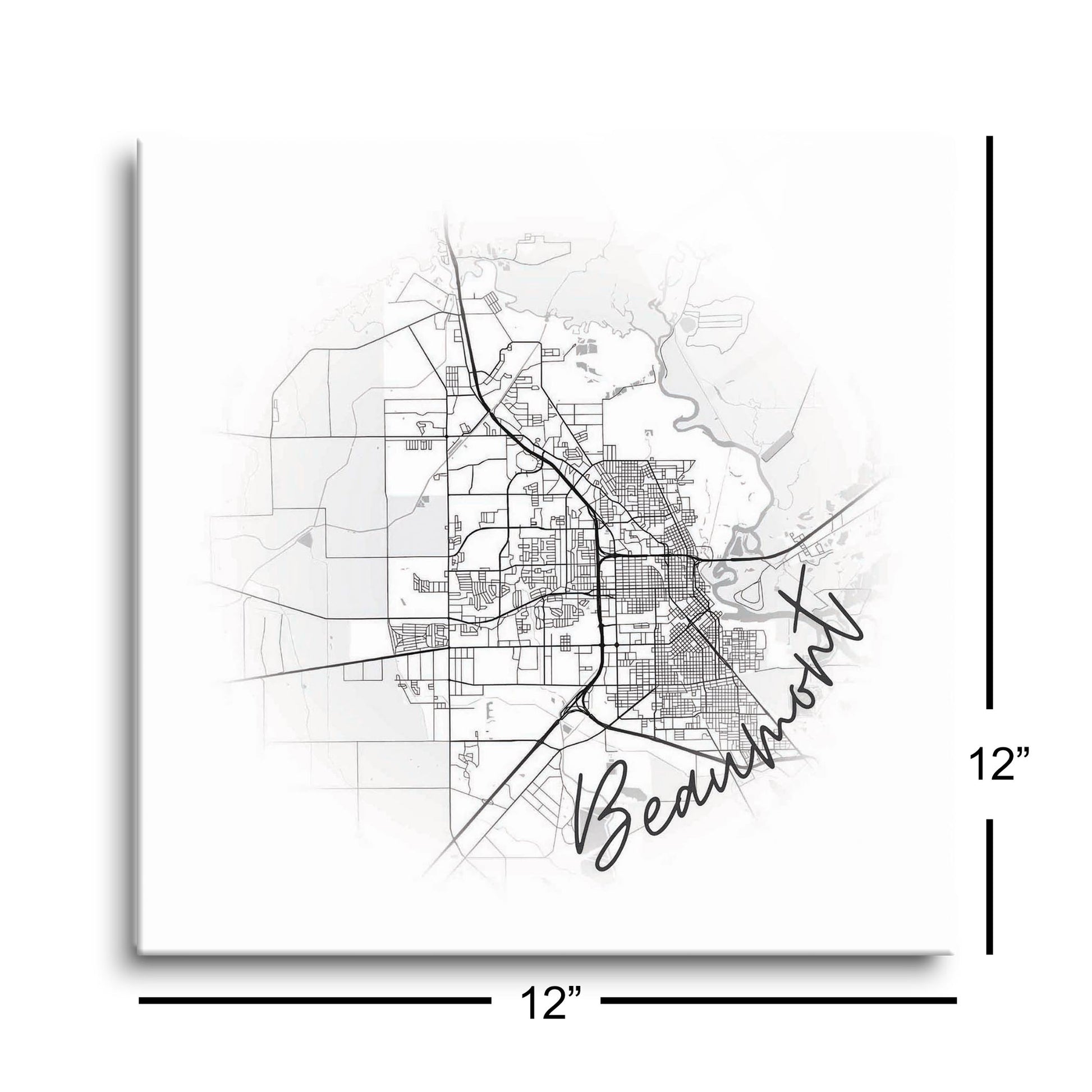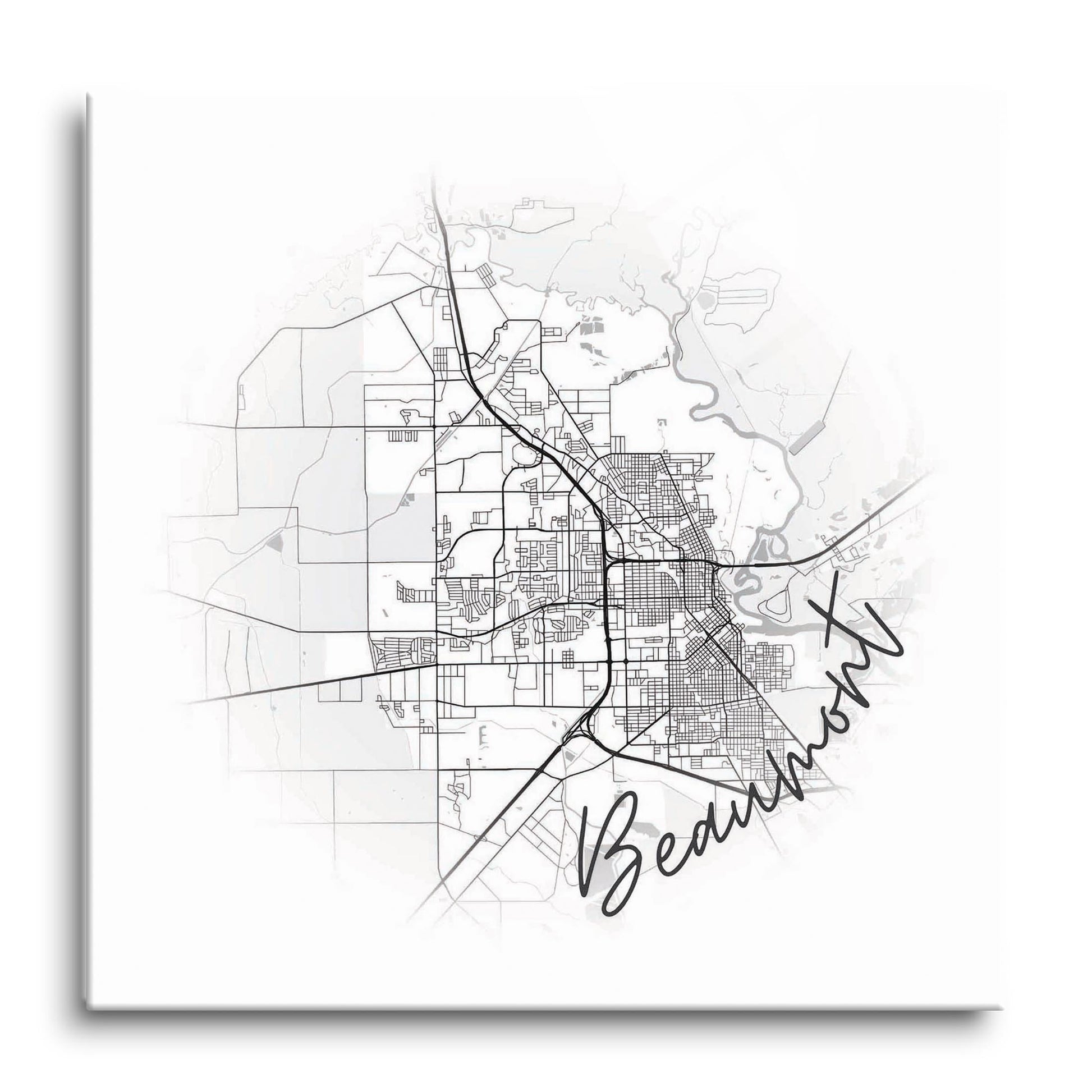 Minimalistic B&W Texas Beaumont Circle Map | Hi-Def Glass Art | Eaches | Min 1