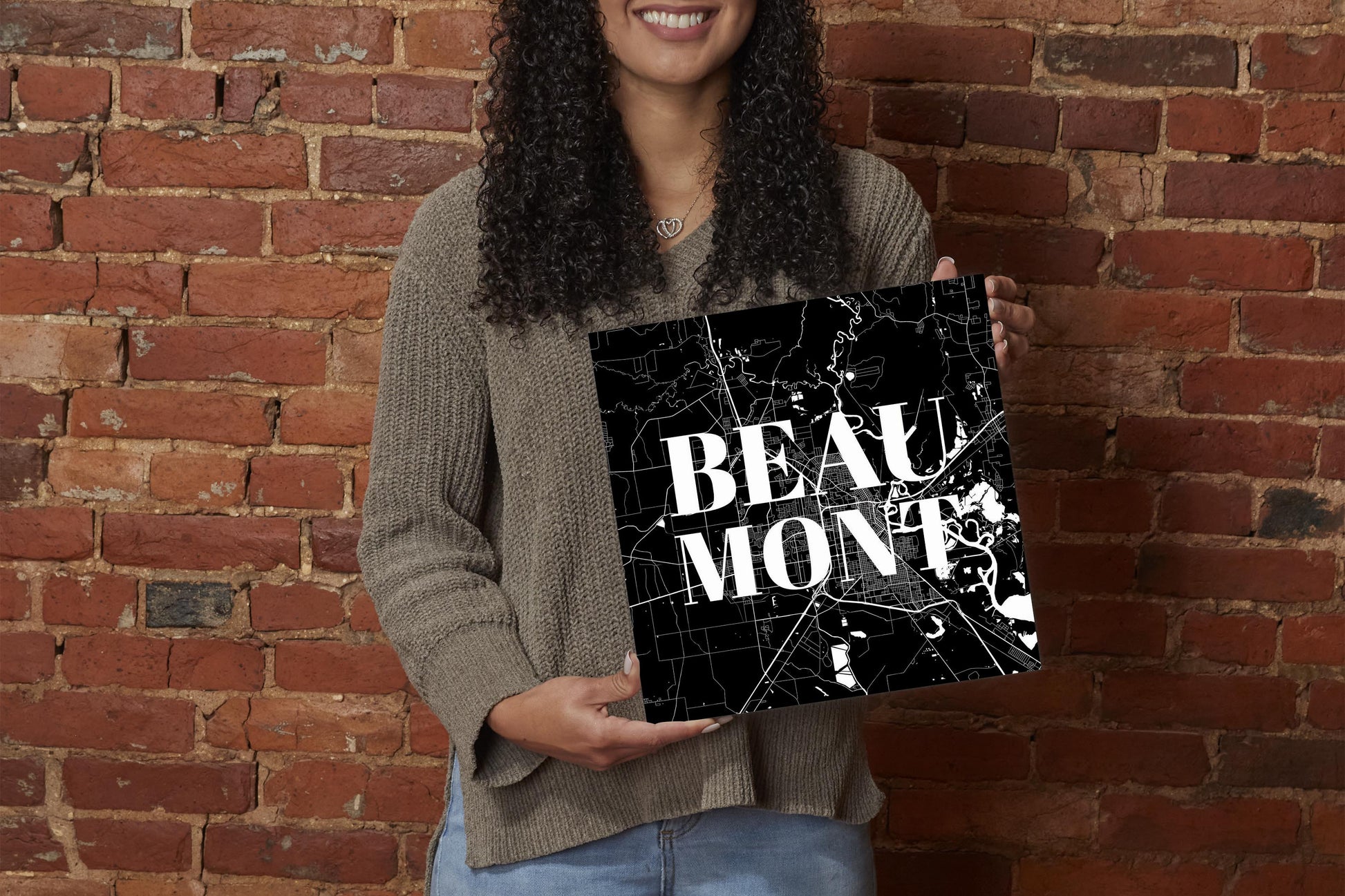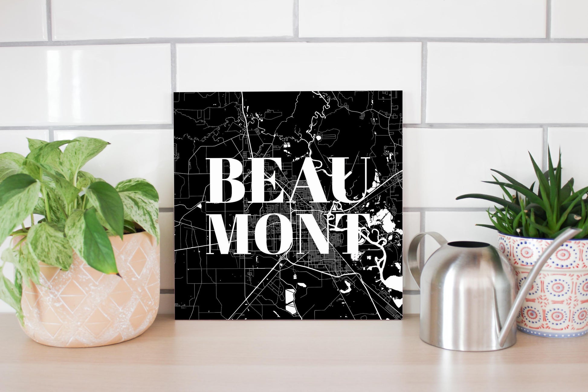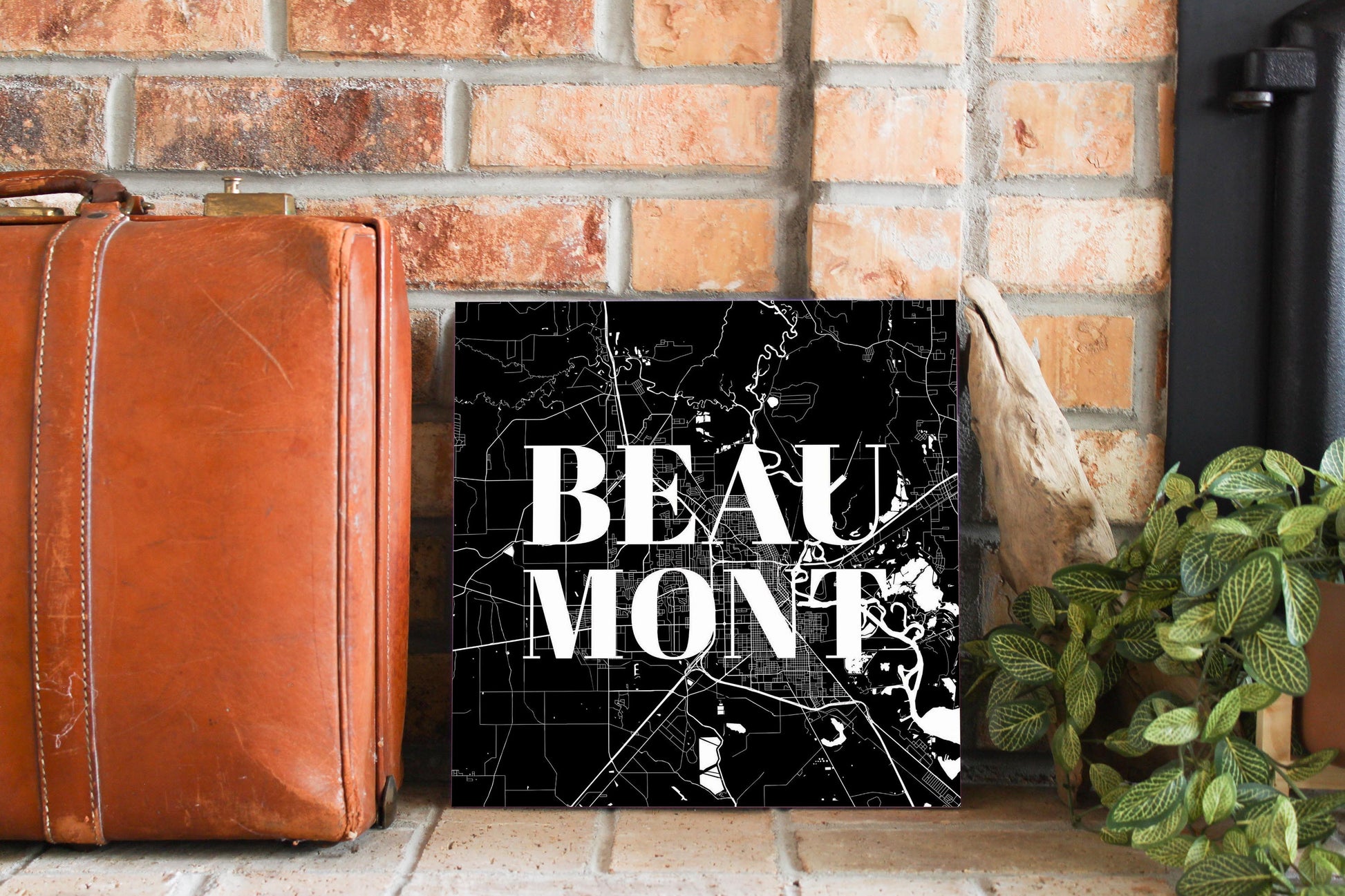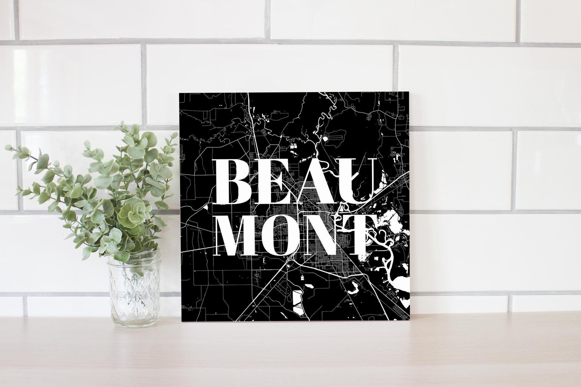 Minimalistic B&W Texas Beaumont Map | Wood Sign | Eaches | Min 2