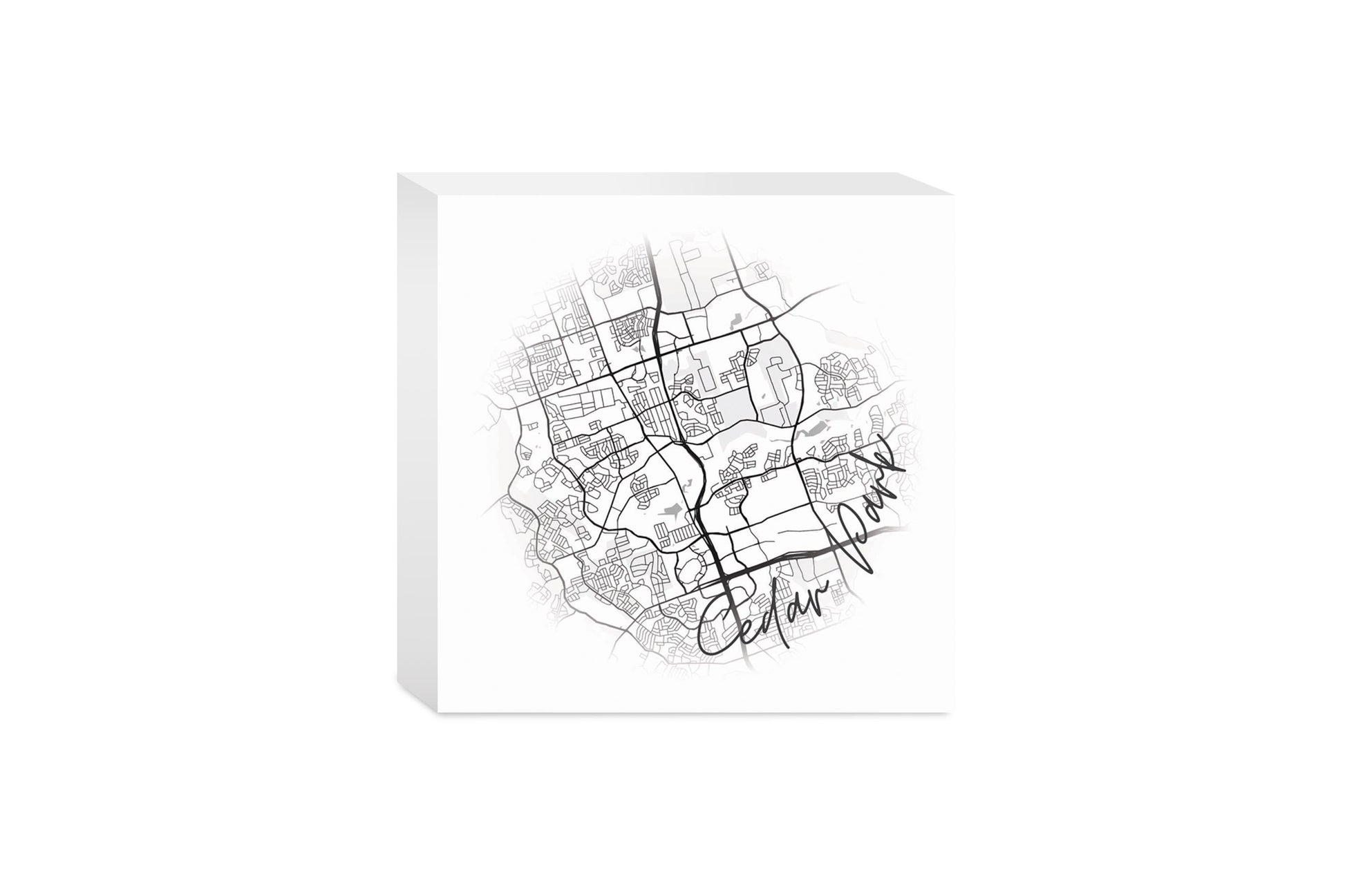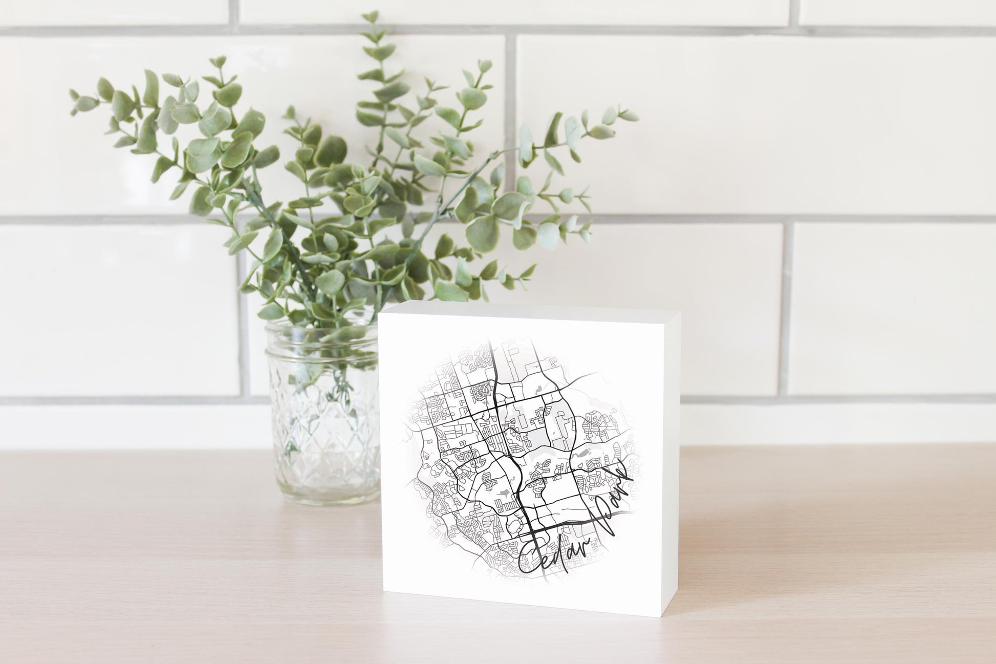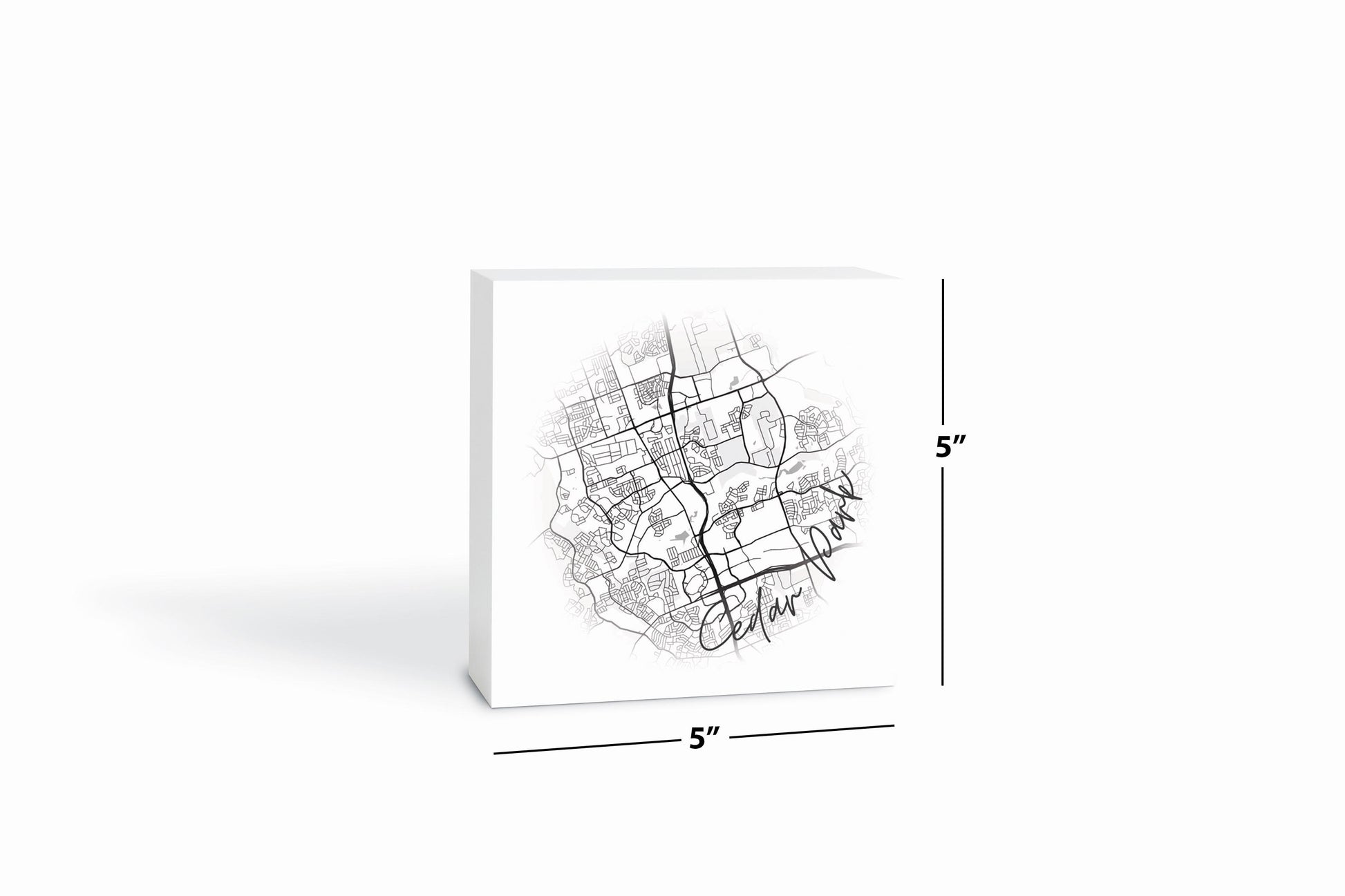 Minimalistic B&W Texas Cedar Park Circle Map | Wood Block | Eaches | Min 4