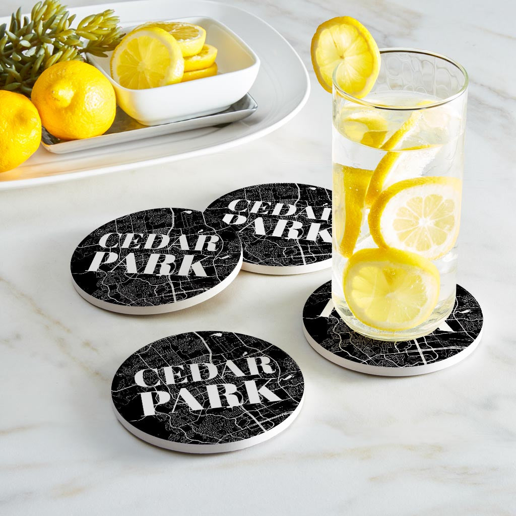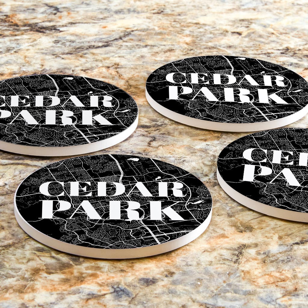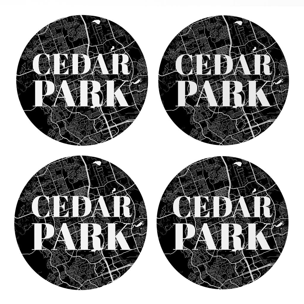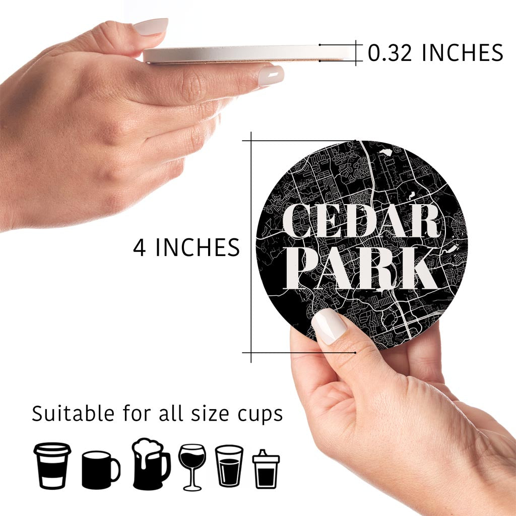Minimalistic B&W Texas Cedar Park Map | Absorbent Coasters | Set of 4 | Min 2