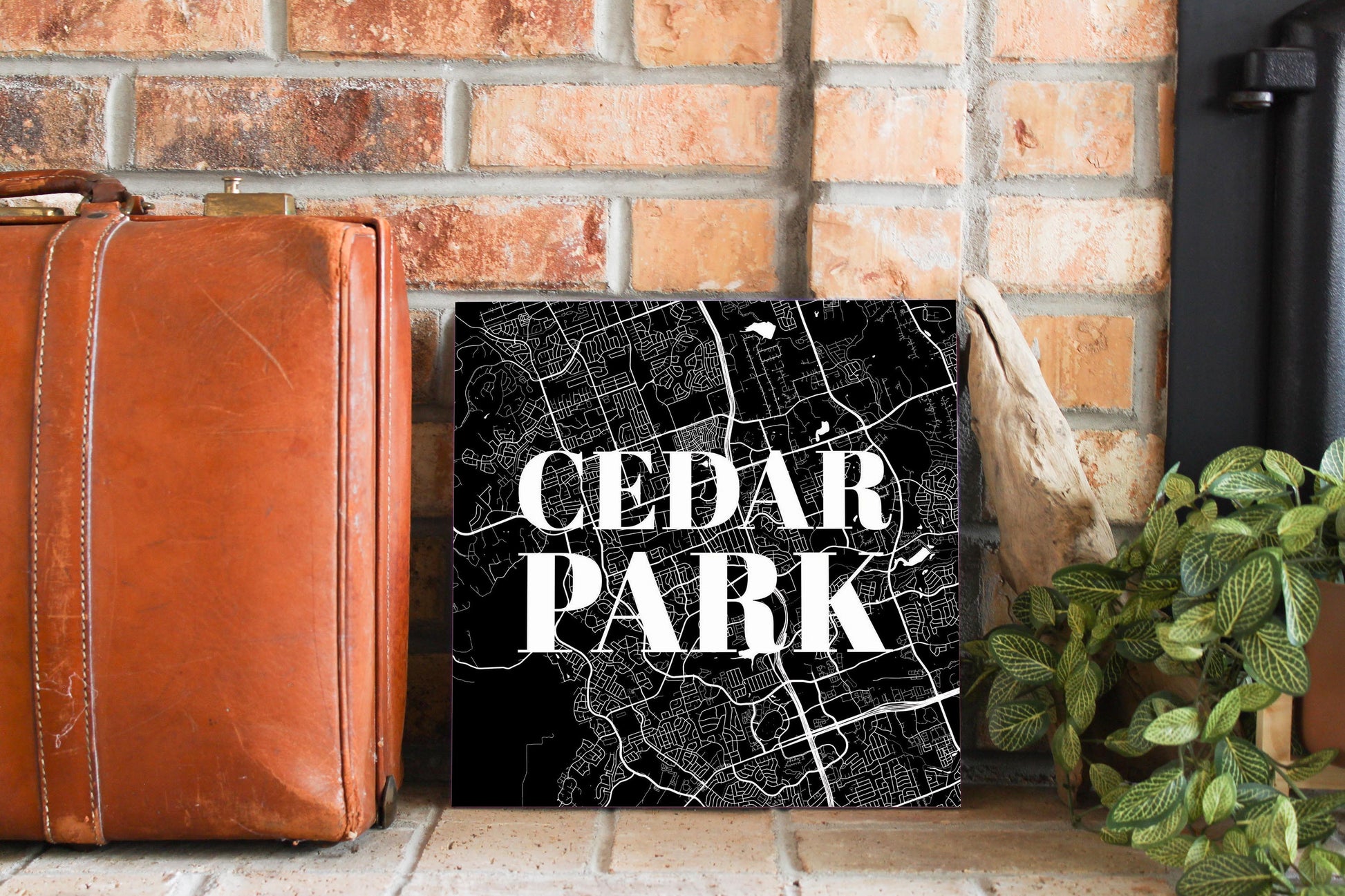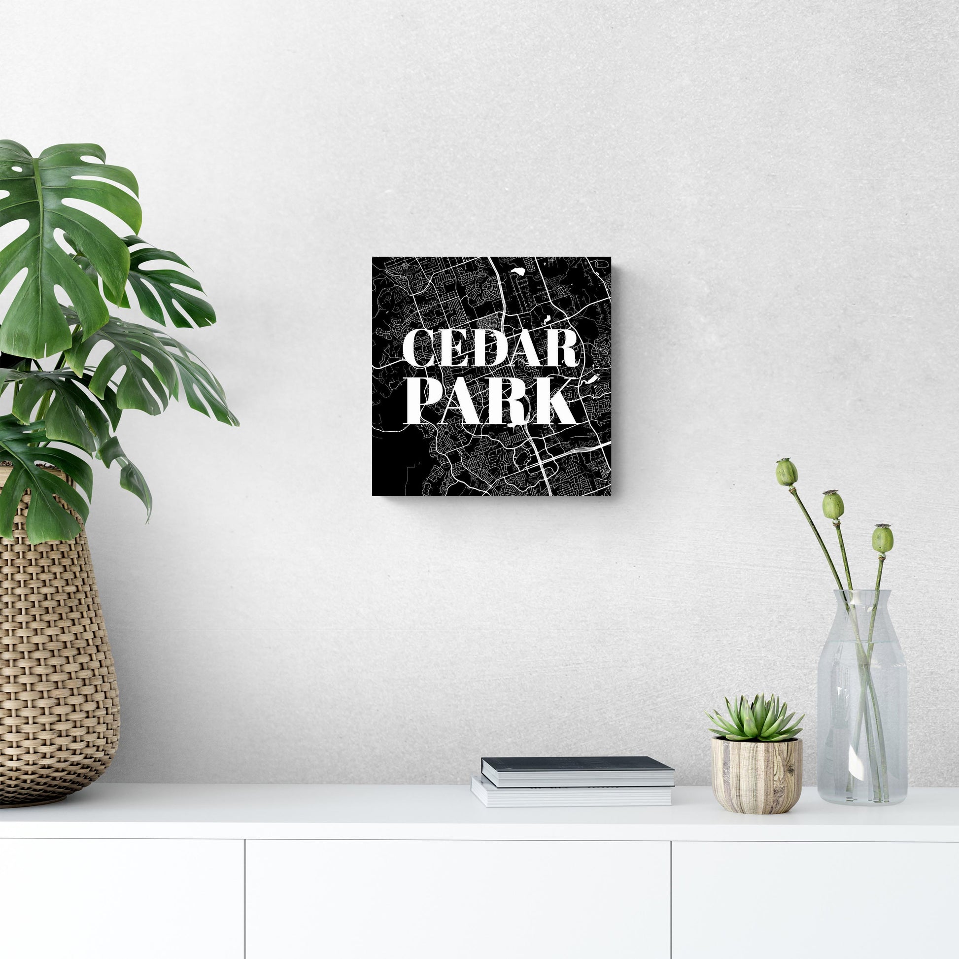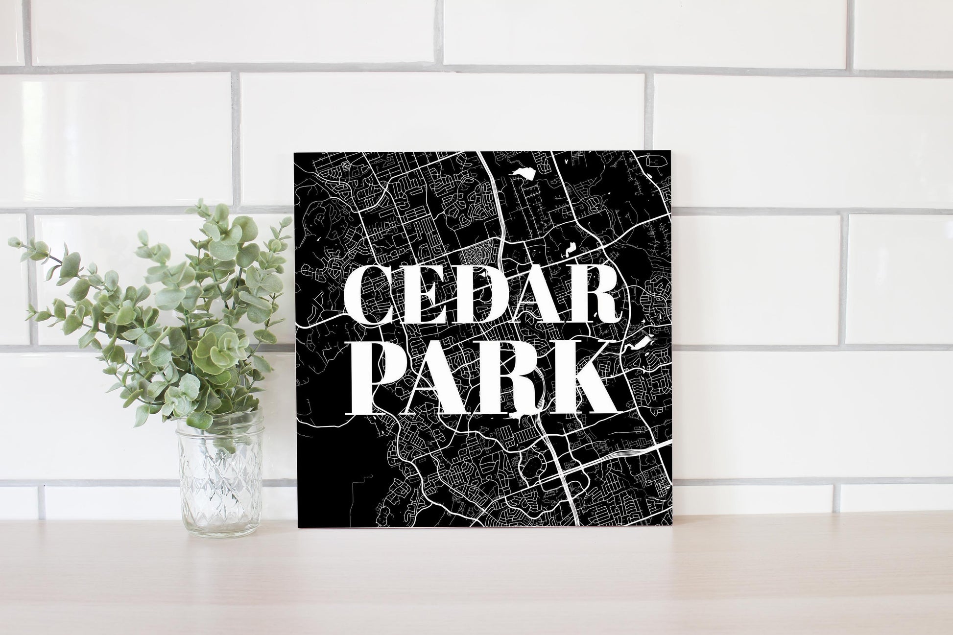 Minimalistic B&W Texas Cedar Park Map | Wood Sign | Eaches | Min 2