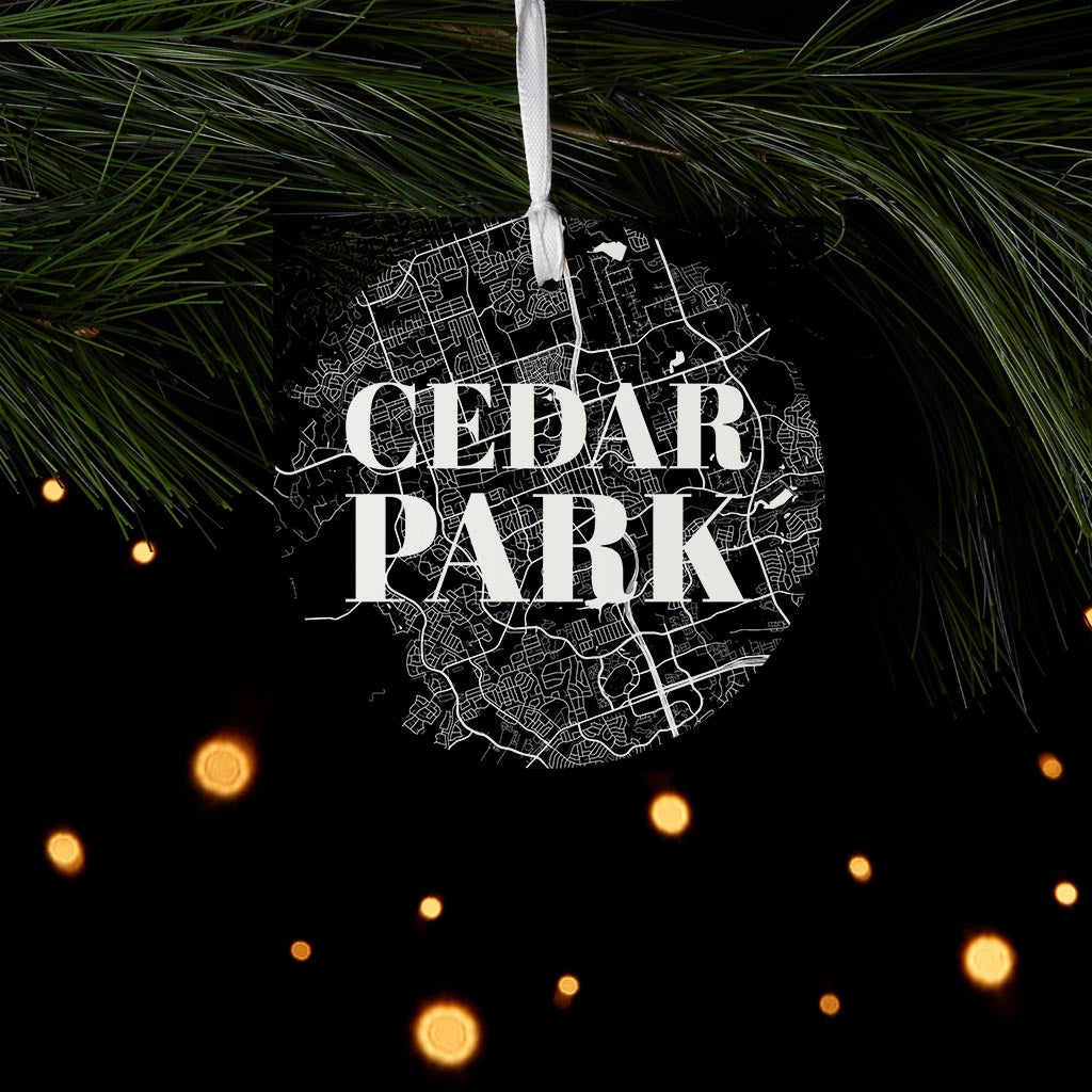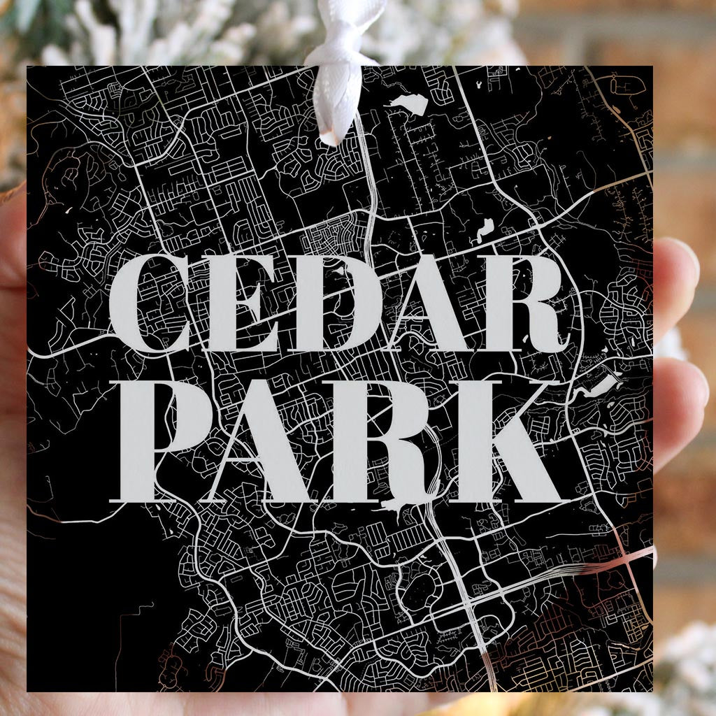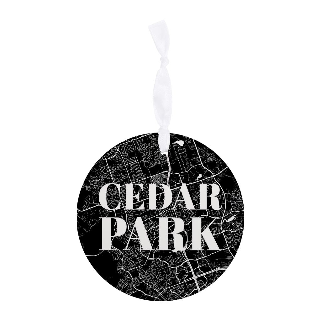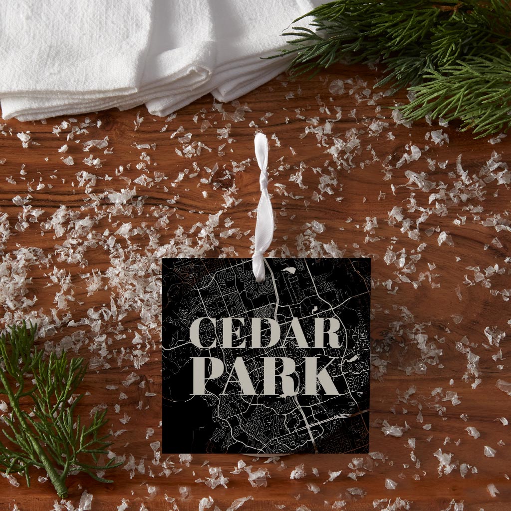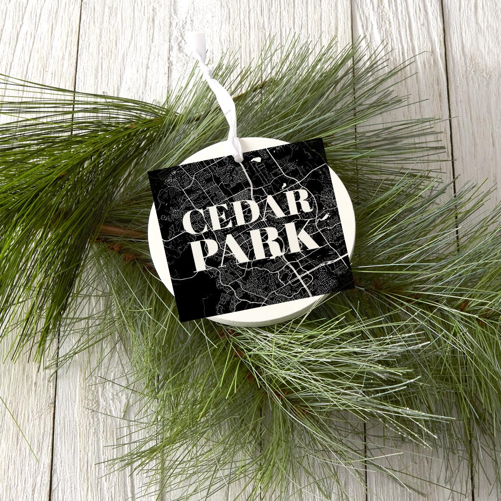 Minimalistic B&W Texas Cedar Park Map | Wood Ornament | Eaches | Min 6