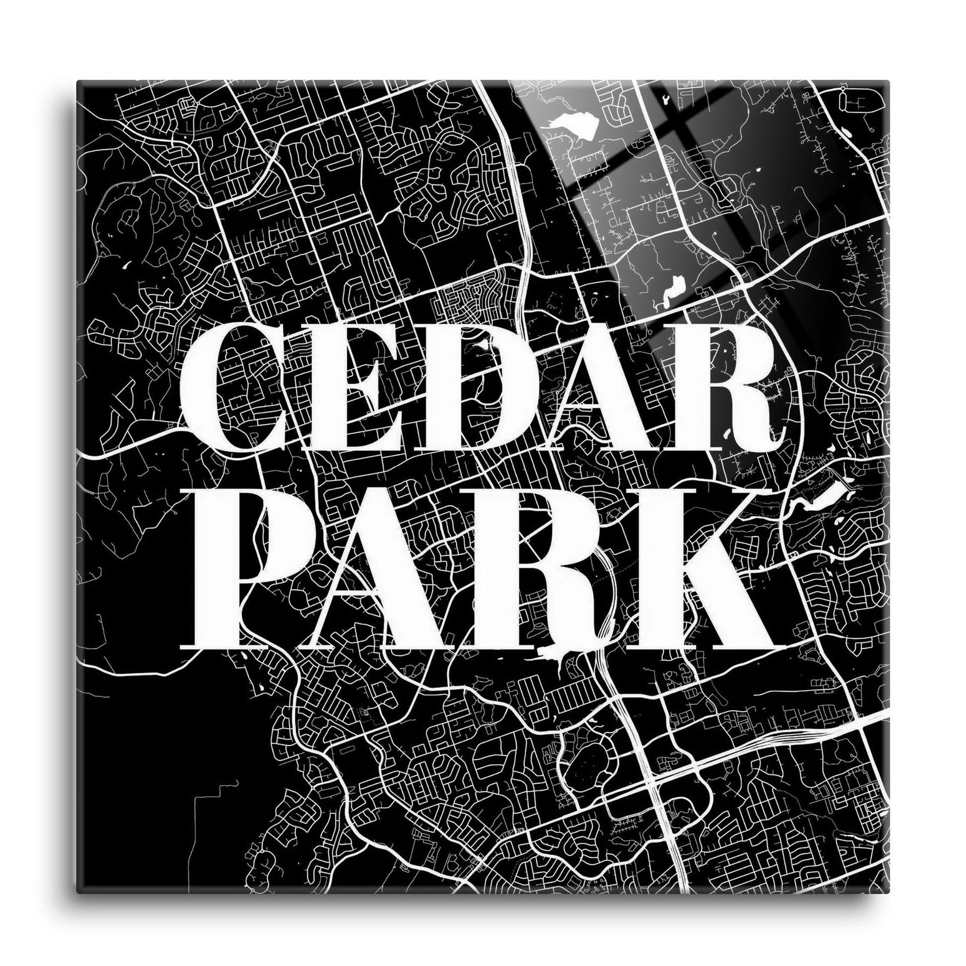 Minimalistic B&W Texas Cedar Park Map | Hi-Def Glass Art | Eaches | Min 1