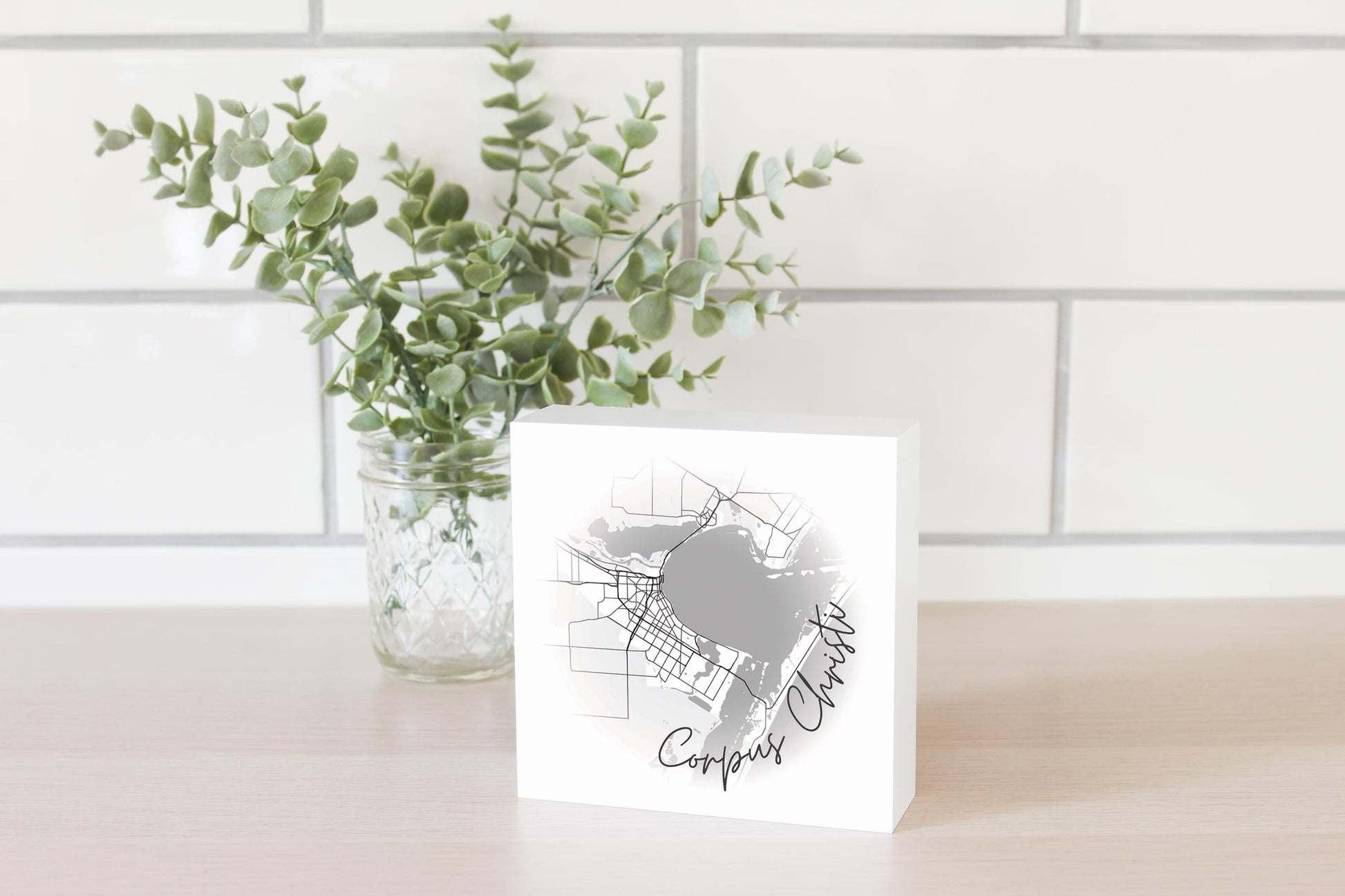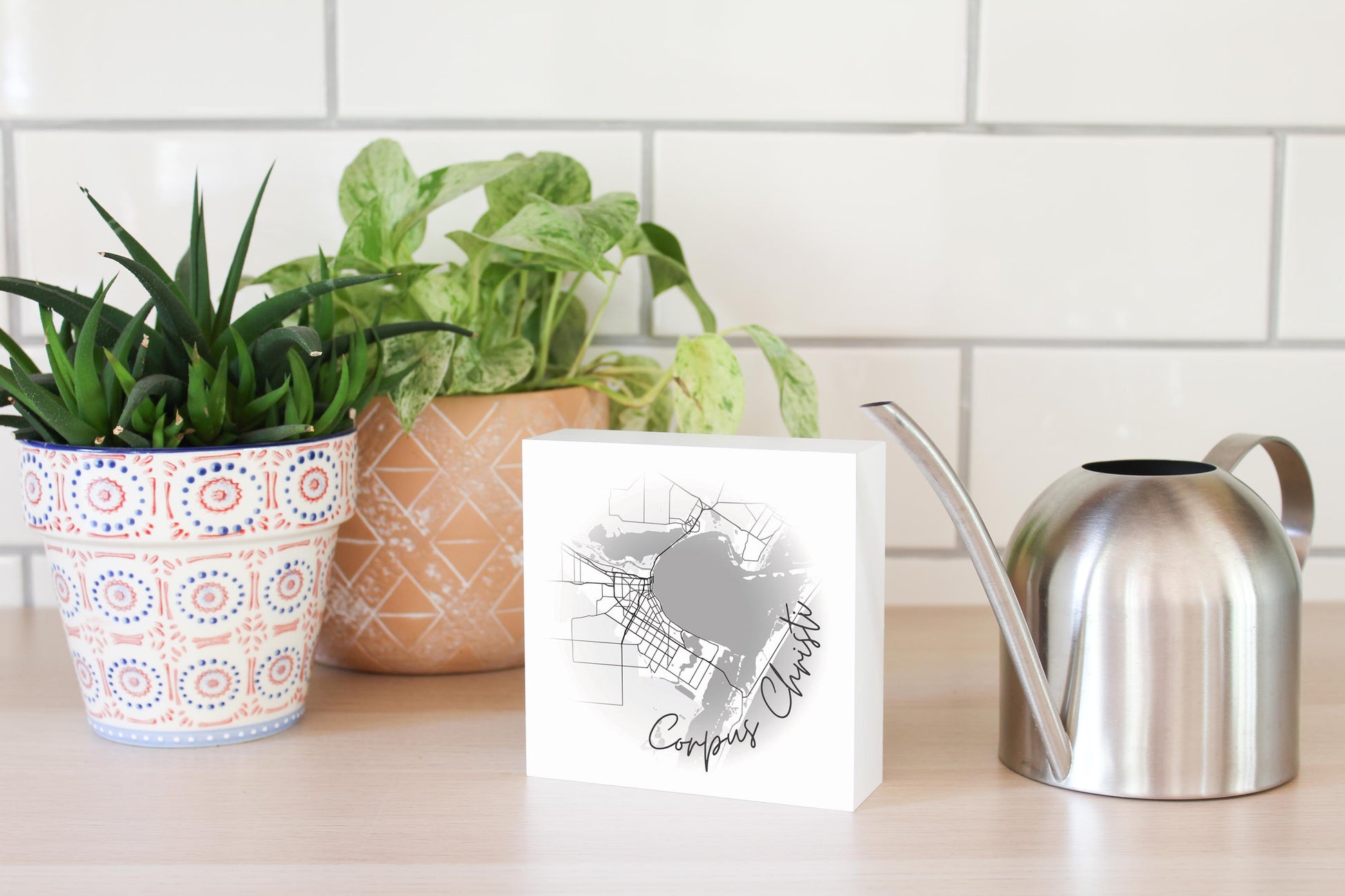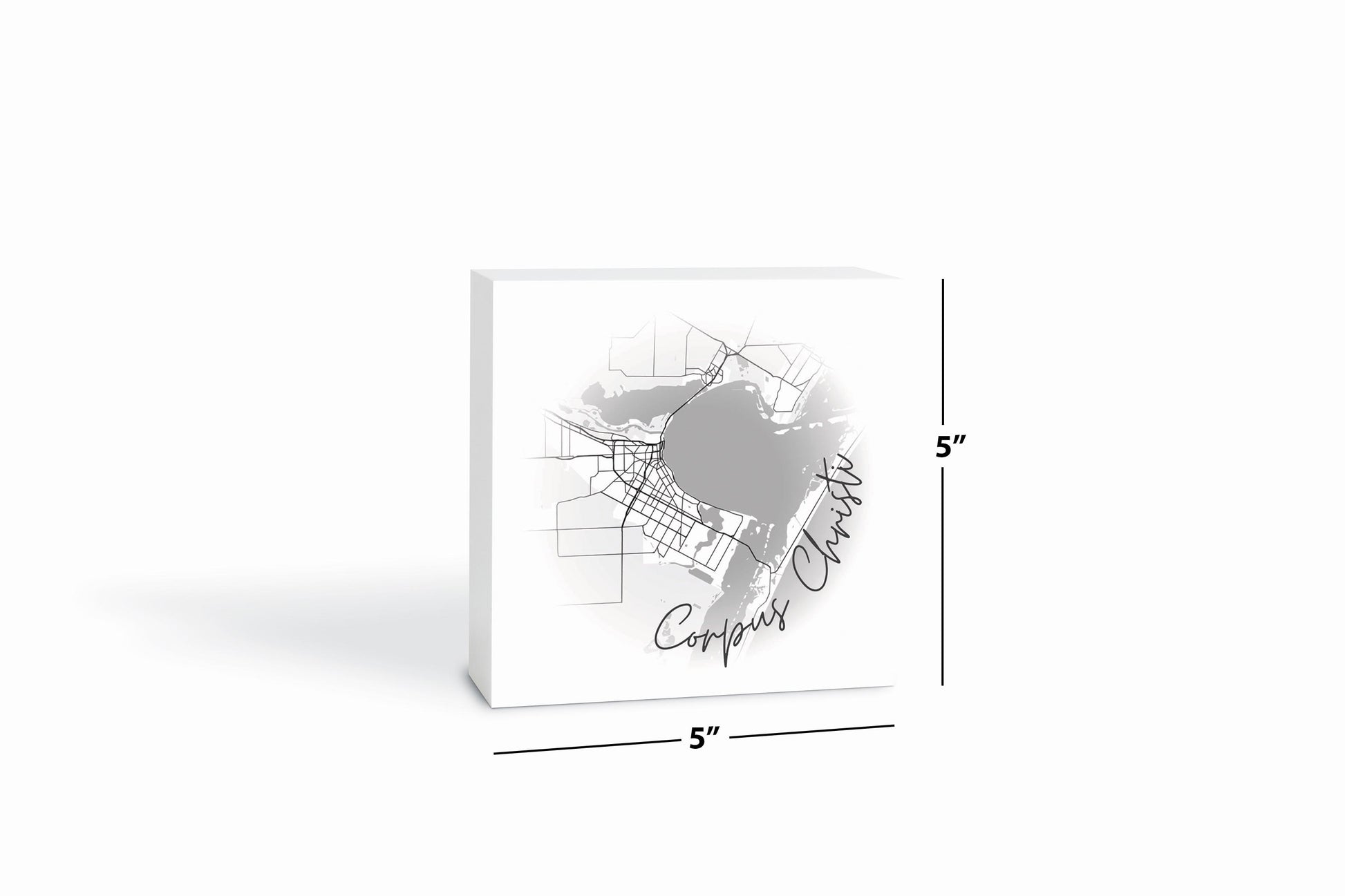 Minimalistic B&W Texas Corpus Christi Circle Map| Wood Block | Eaches | Min 4