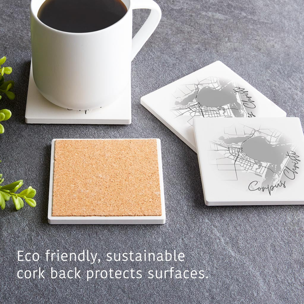 Minimalistic B&W Texas Corpus Christi Circle Map | Absorbent Coasters | Set of 4 | Min 2