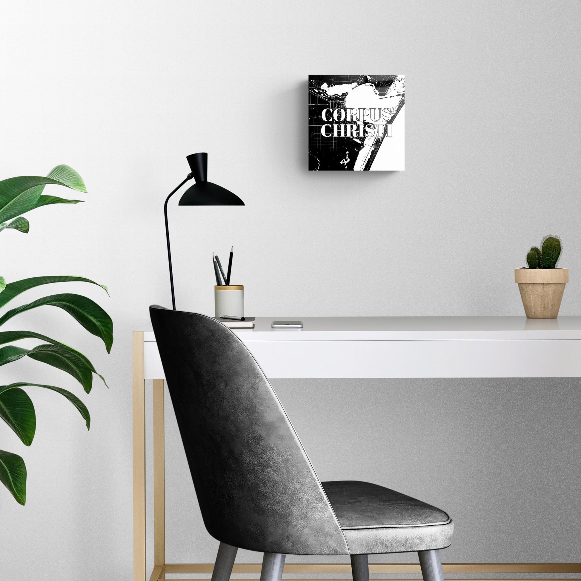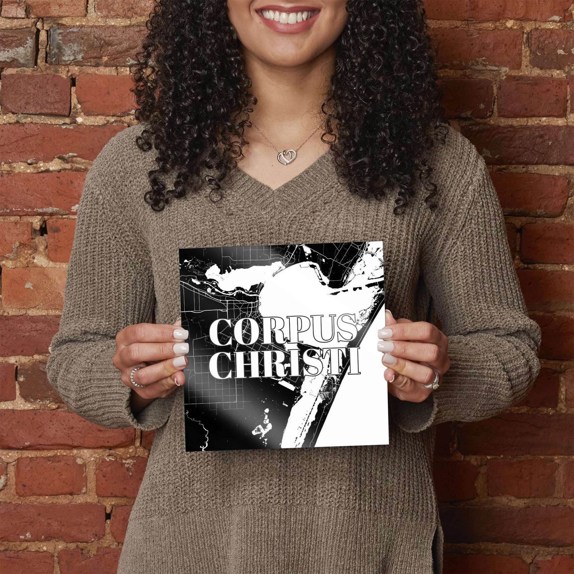 Minimalistic B&W Texas Corpus Christi Map | Hi-Def Glass Art | Eaches | Min 2