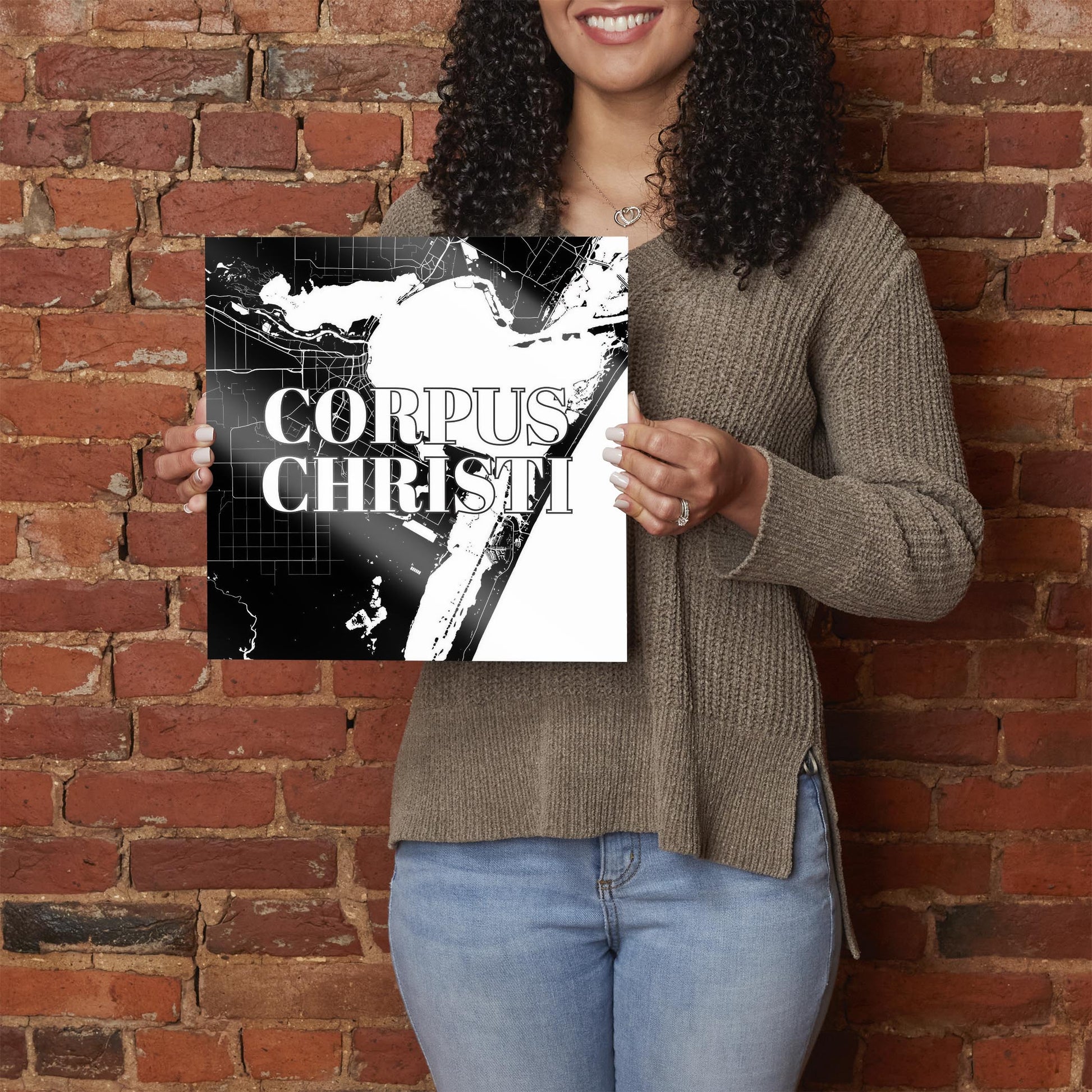 Minimalistic B&W Texas Corpus Christi Map | Hi-Def Glass Art | Eaches | Min 1