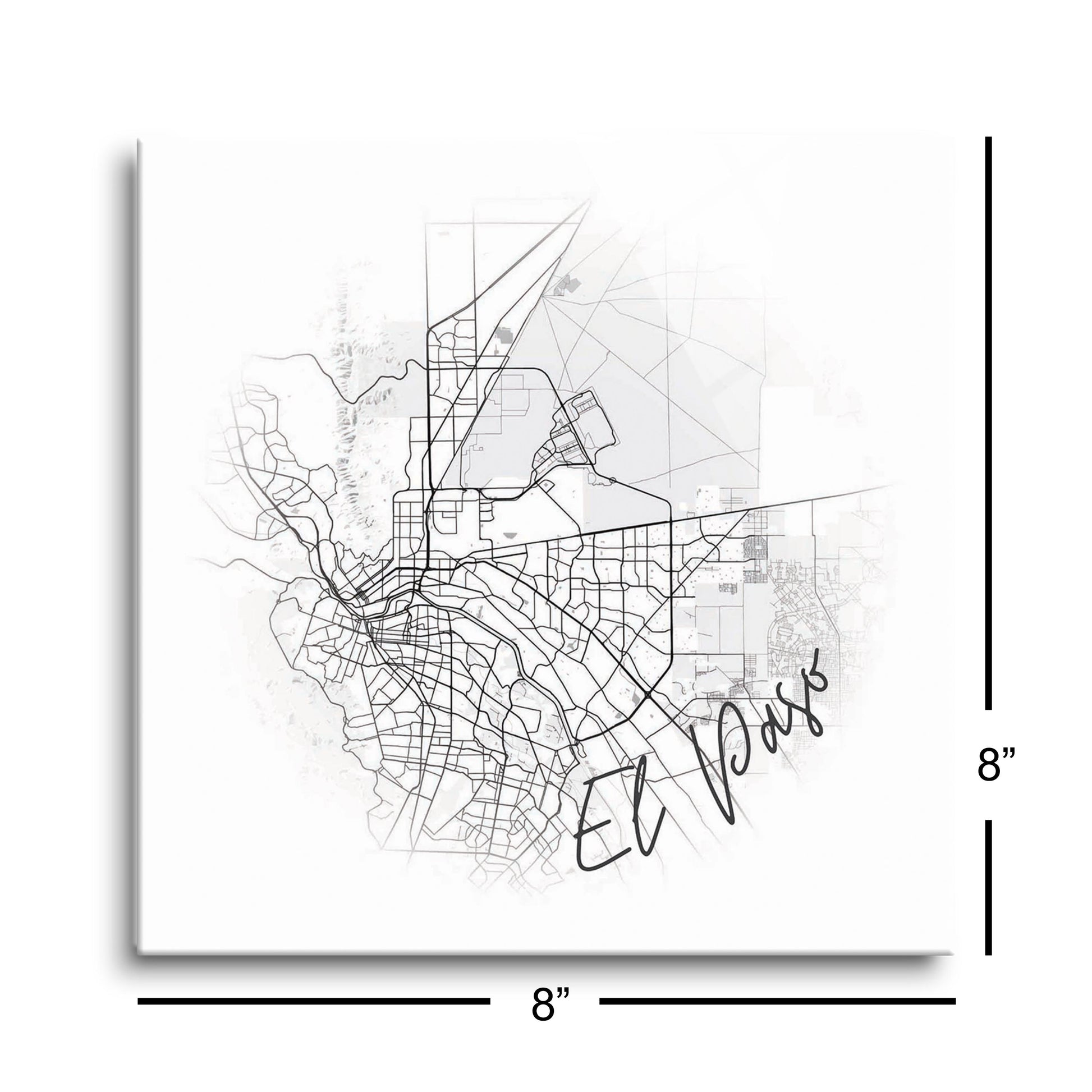 Minimalistic B&W Texas El Paso Circle Map | Hi-Def Glass Art | Eaches | Min 2