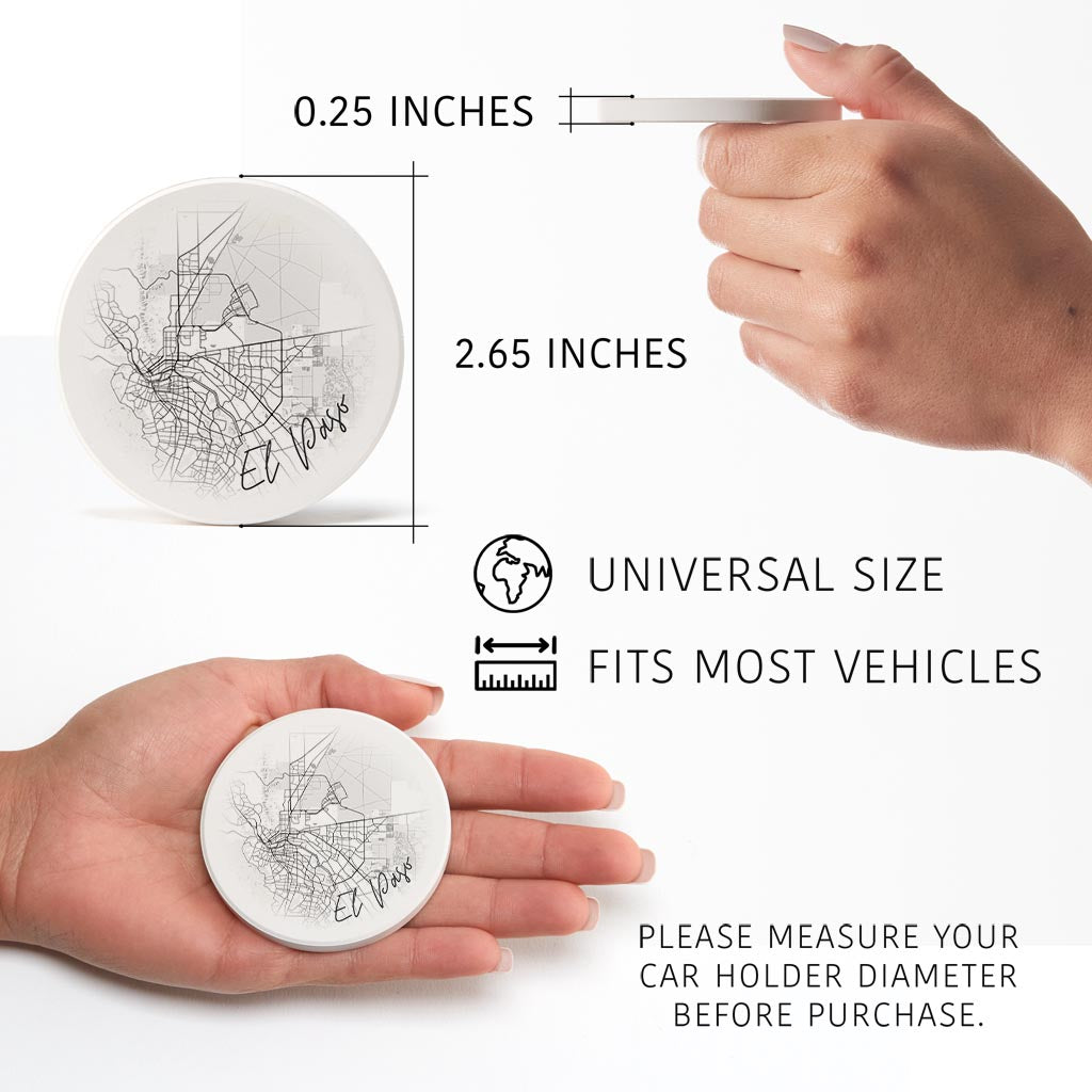 Minimalistic B&W Texas El Paso Circle Map | Absorbent Car Coasters | Set of 2 | Min 4