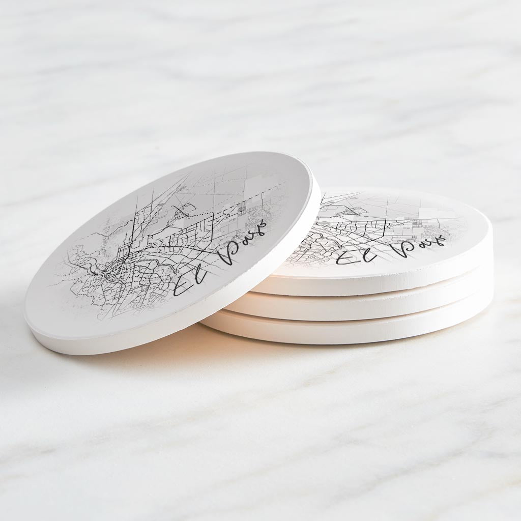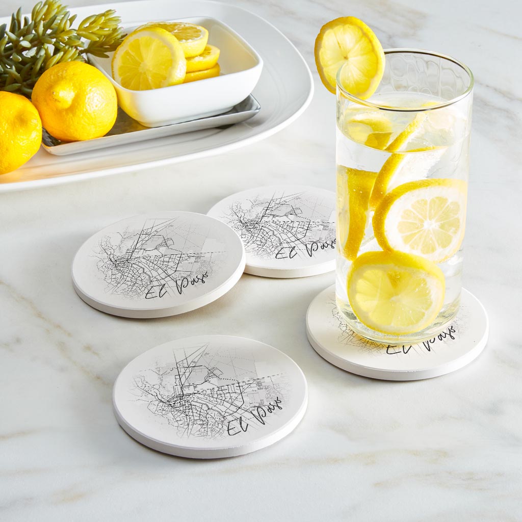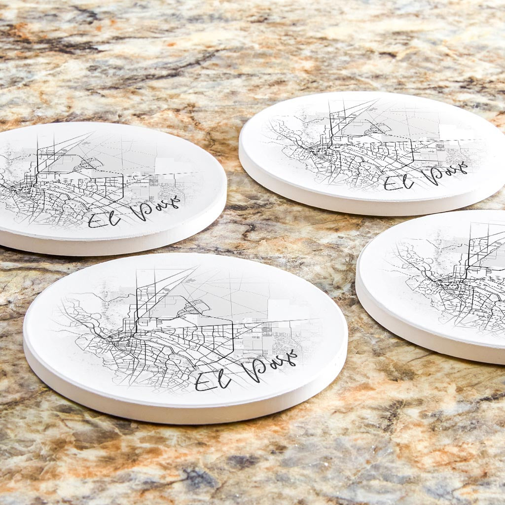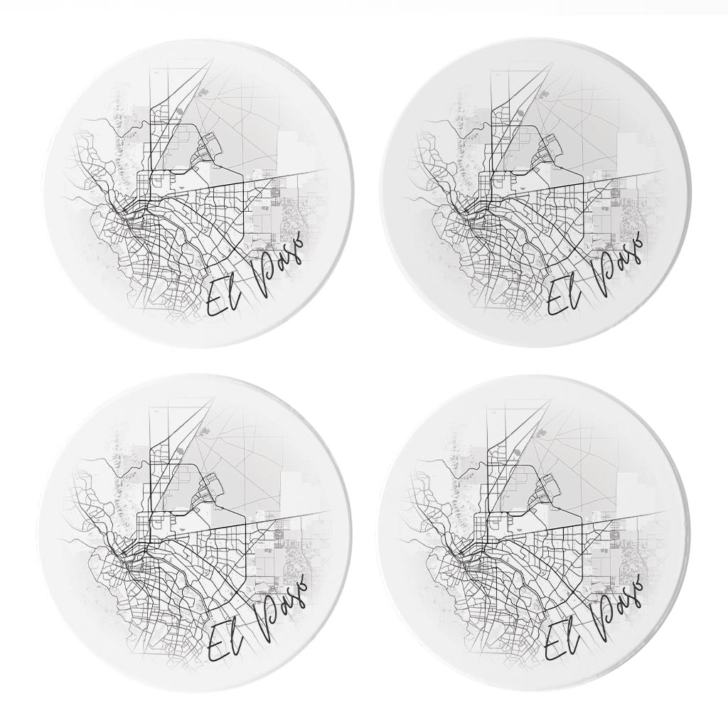 Minimalistic B&W Texas El Paso Circle Map | Absorbent Coasters | Set of 4 | Min 2