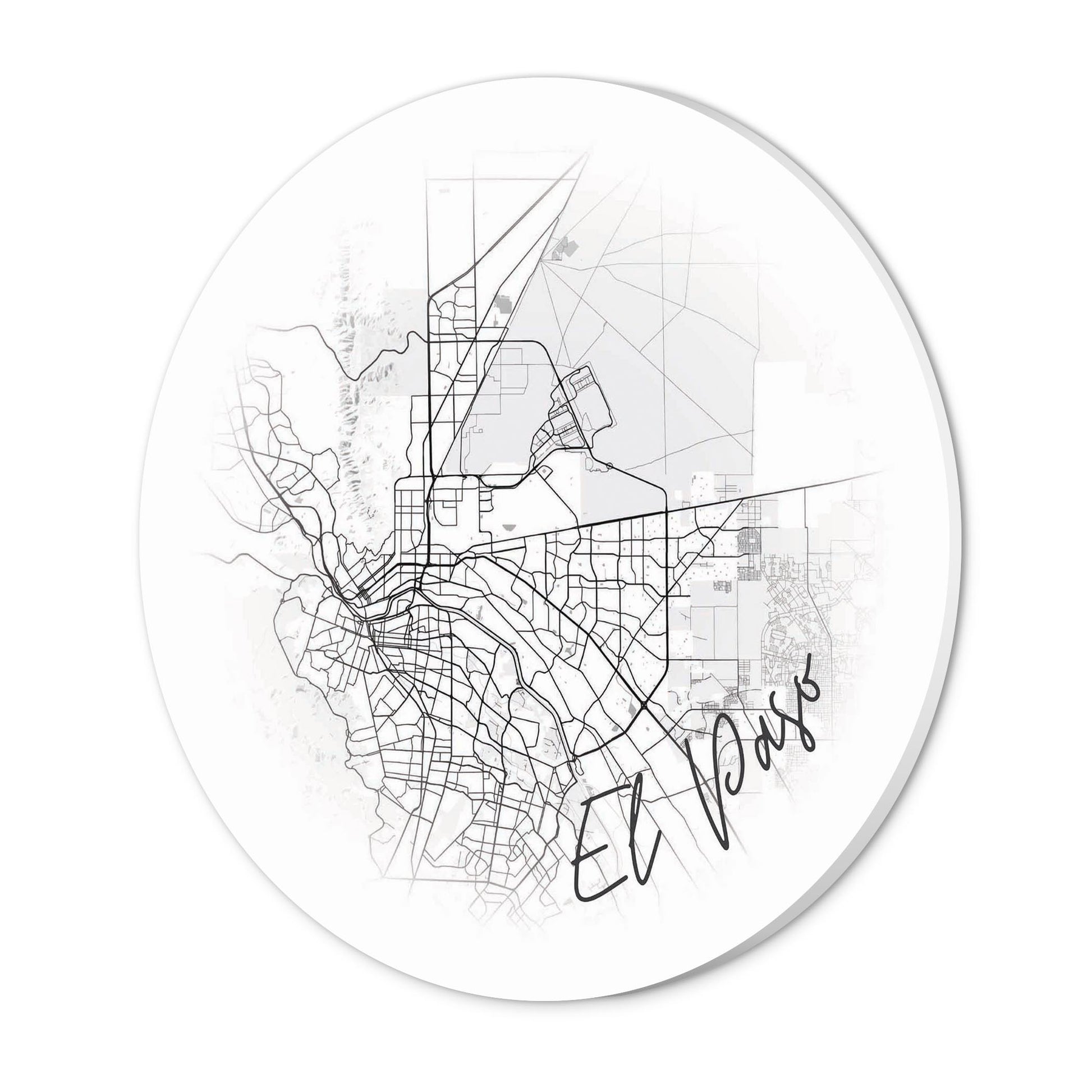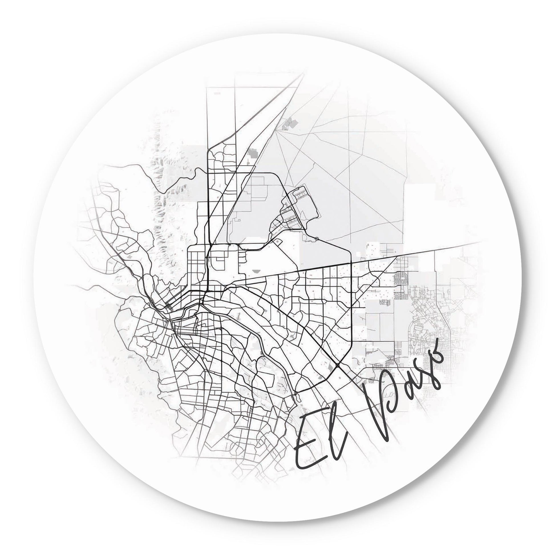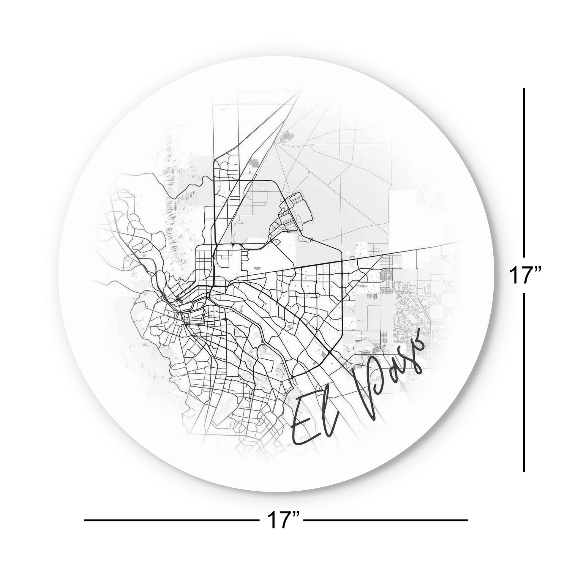 Minimalistic B&W Texas El Paso Circle Map | Wood Sign | Eaches | Min 1