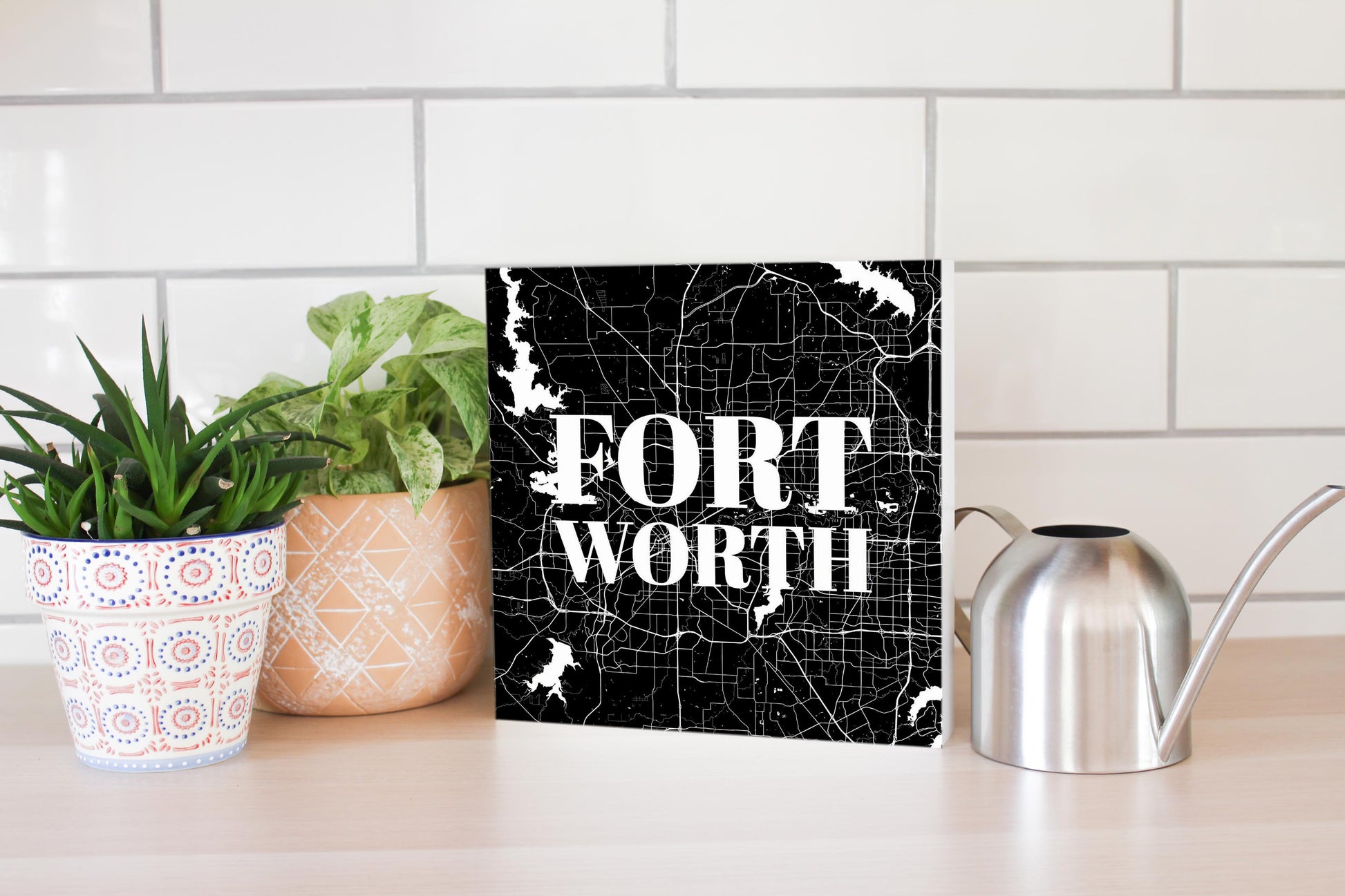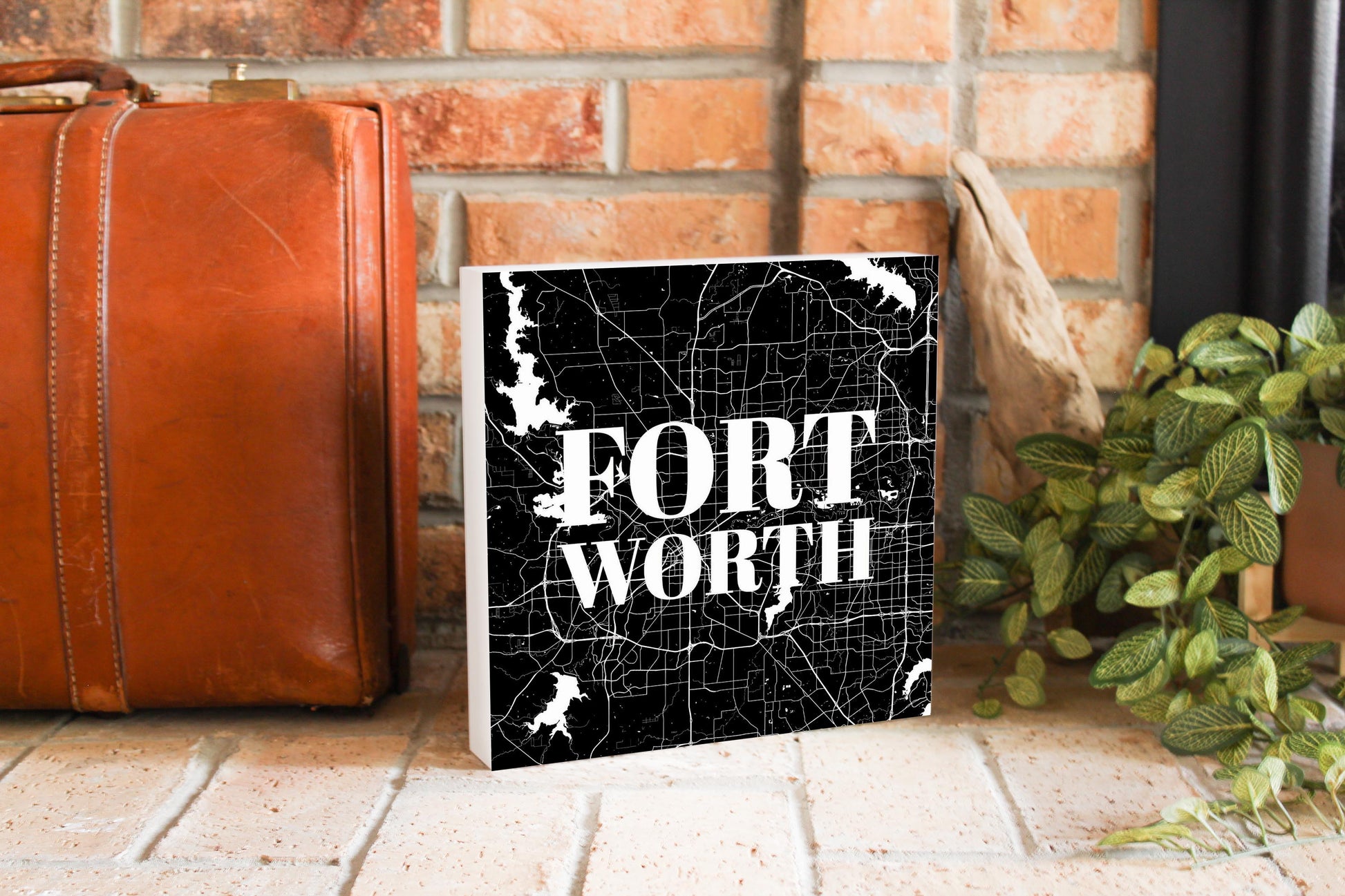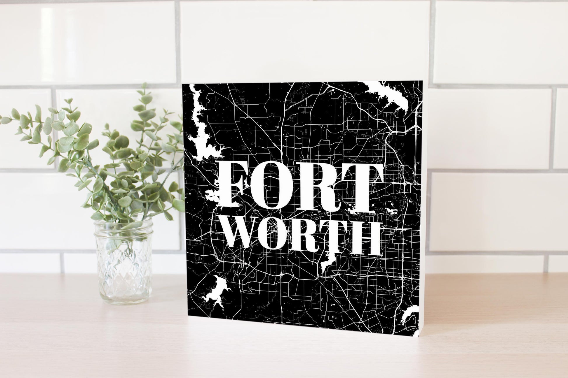 Minimalistic B&W Texas Fort Worth Map | Wood Block | Eaches | Min 2