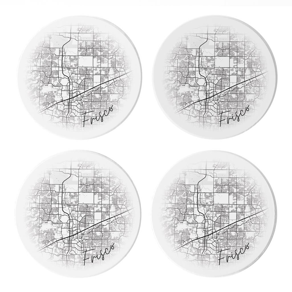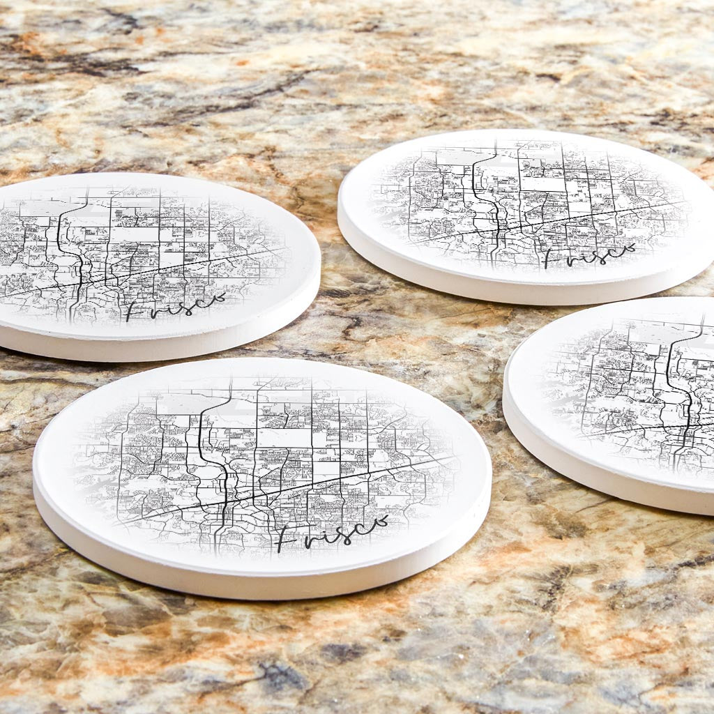 Minimalistic B&W Texas Frisco Circle Map | Absorbent Coasters | Set of 4 | Min 2